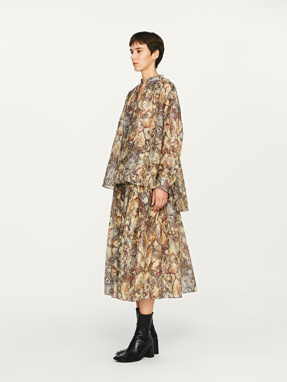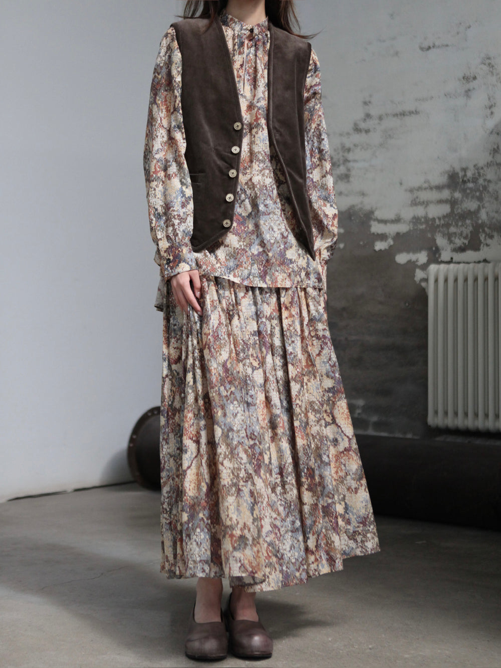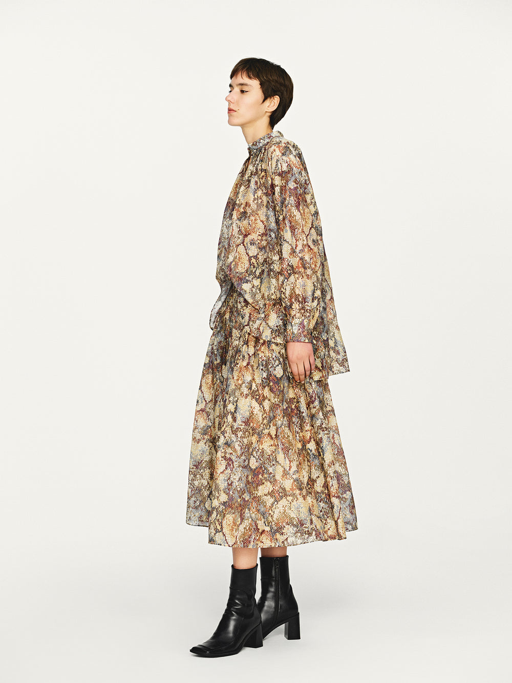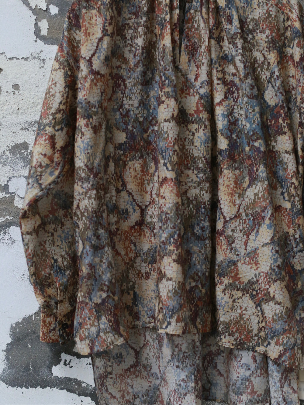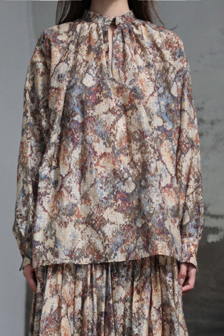 INTO THE EAST 2025 Autumn/Winter Mosaic Print Silk-Cotton Top / Wide Waist Pleated Silk-Cotton Skirt ITE-E1DGAW079NCC21TP-HUA Top