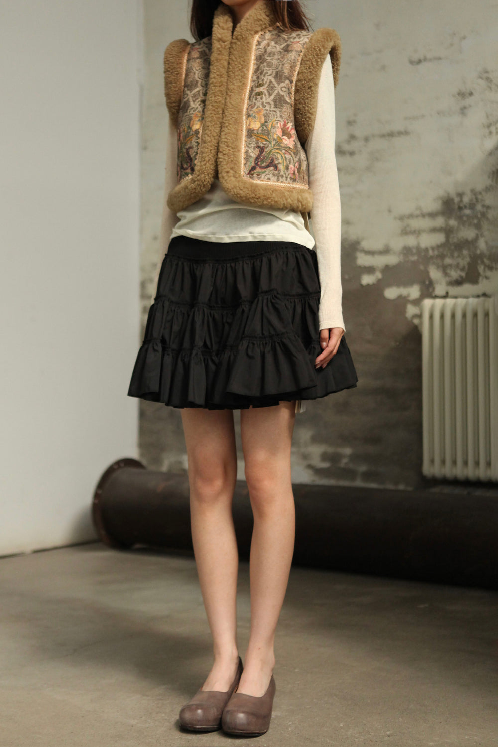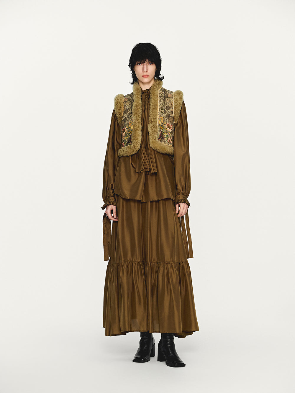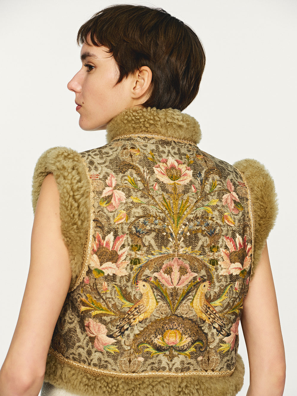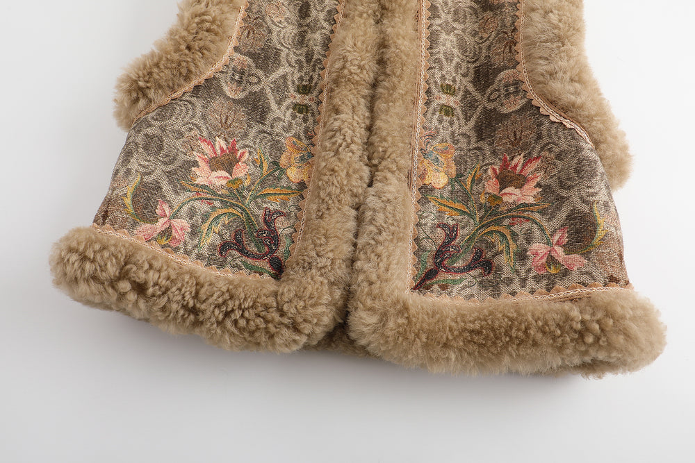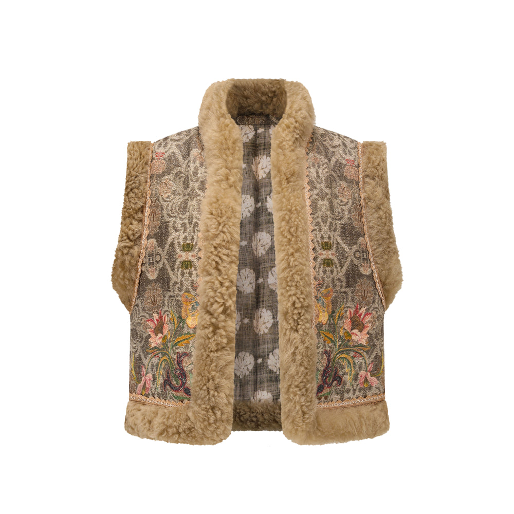 INTO THE EAST 25 Autumn/Winter Sheepskin and Tussah Silk Printed Vest ITE-E1DGAW012GR21VE-LV Green