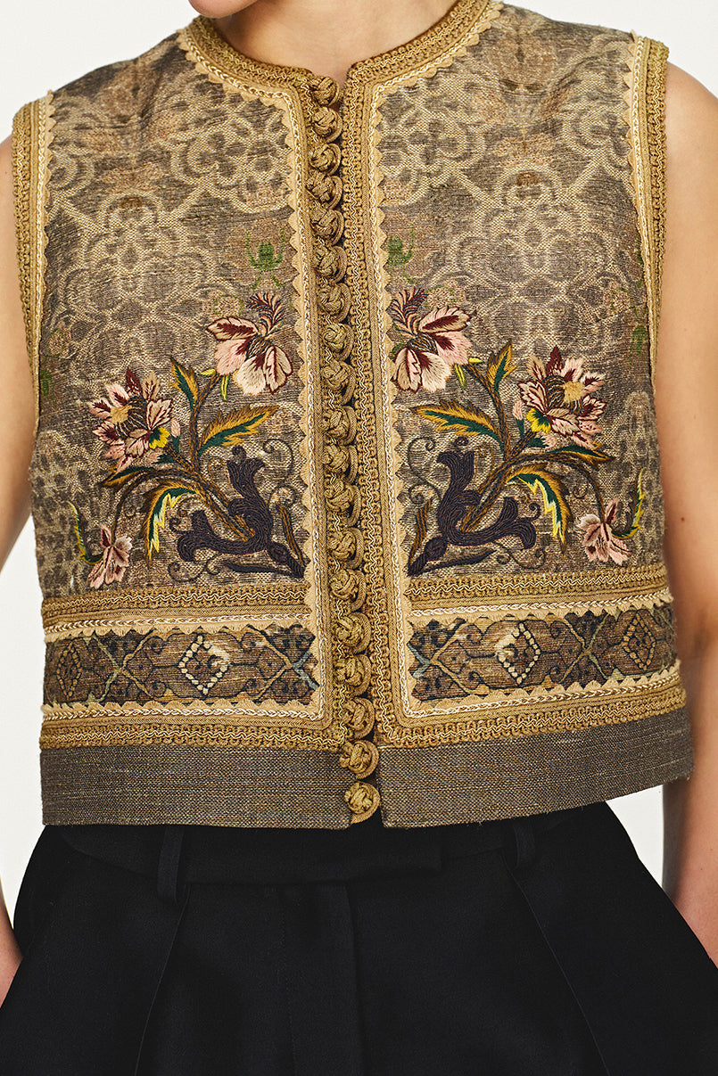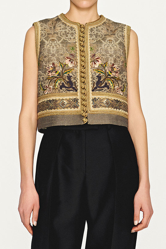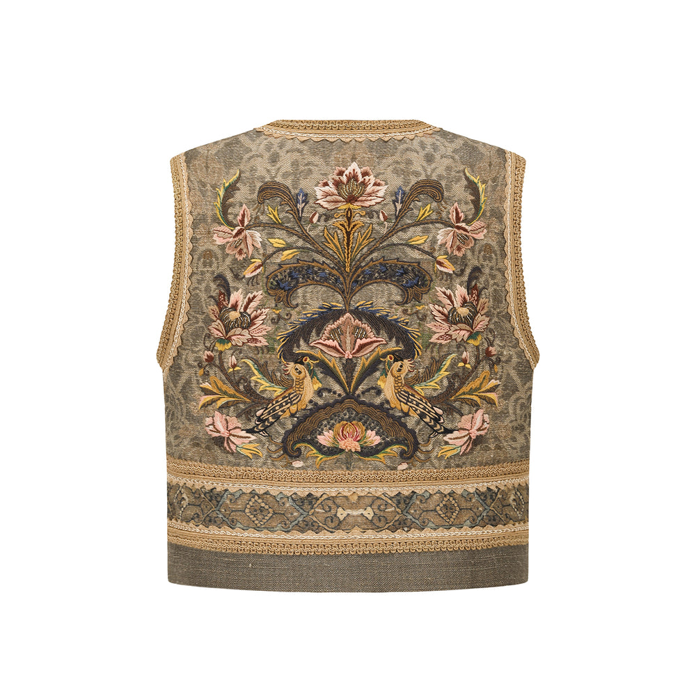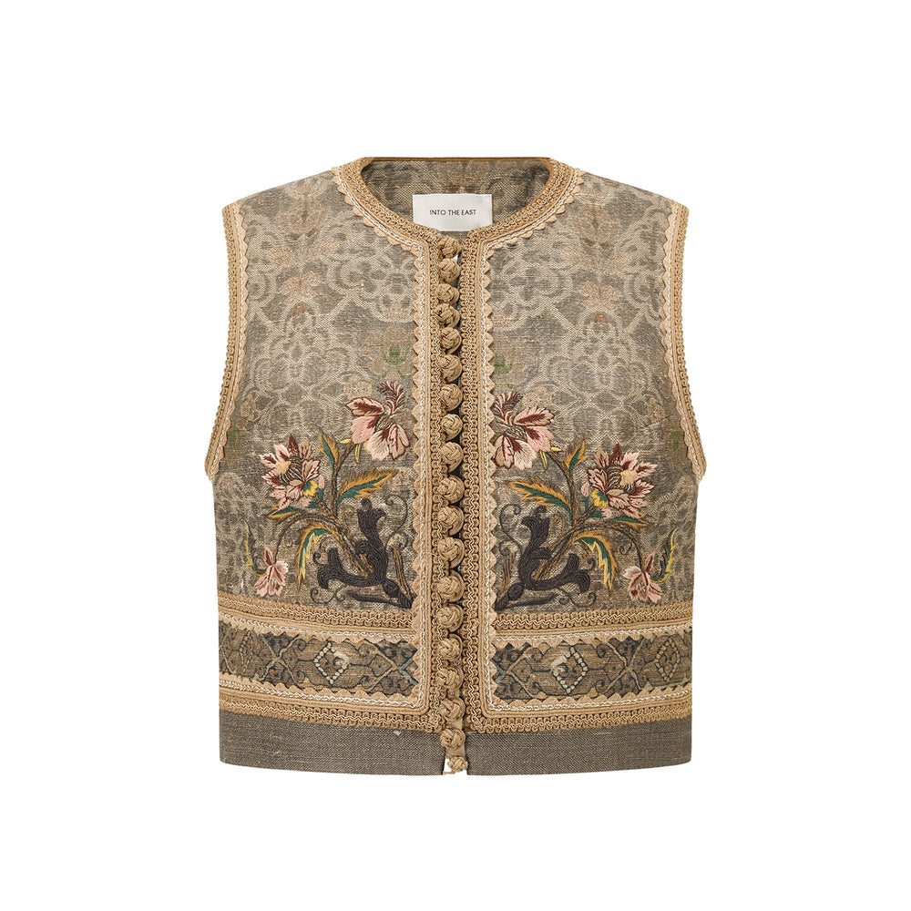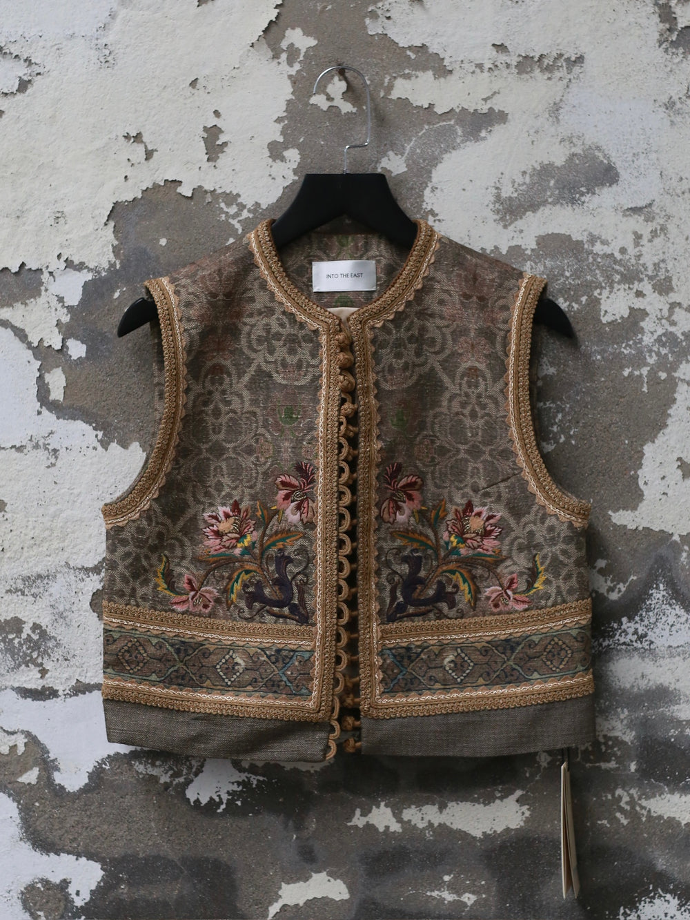 INTO THE EAST Tussah Silk Silver Lotus Button Vest ITE-E1DGAW010GR22VE-LV Green