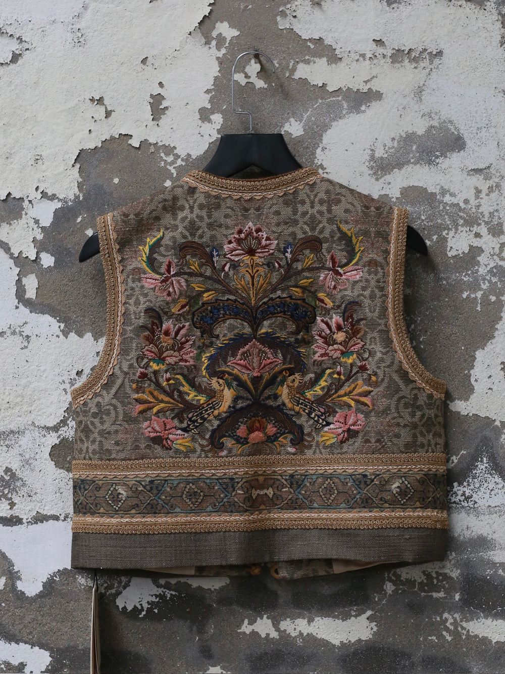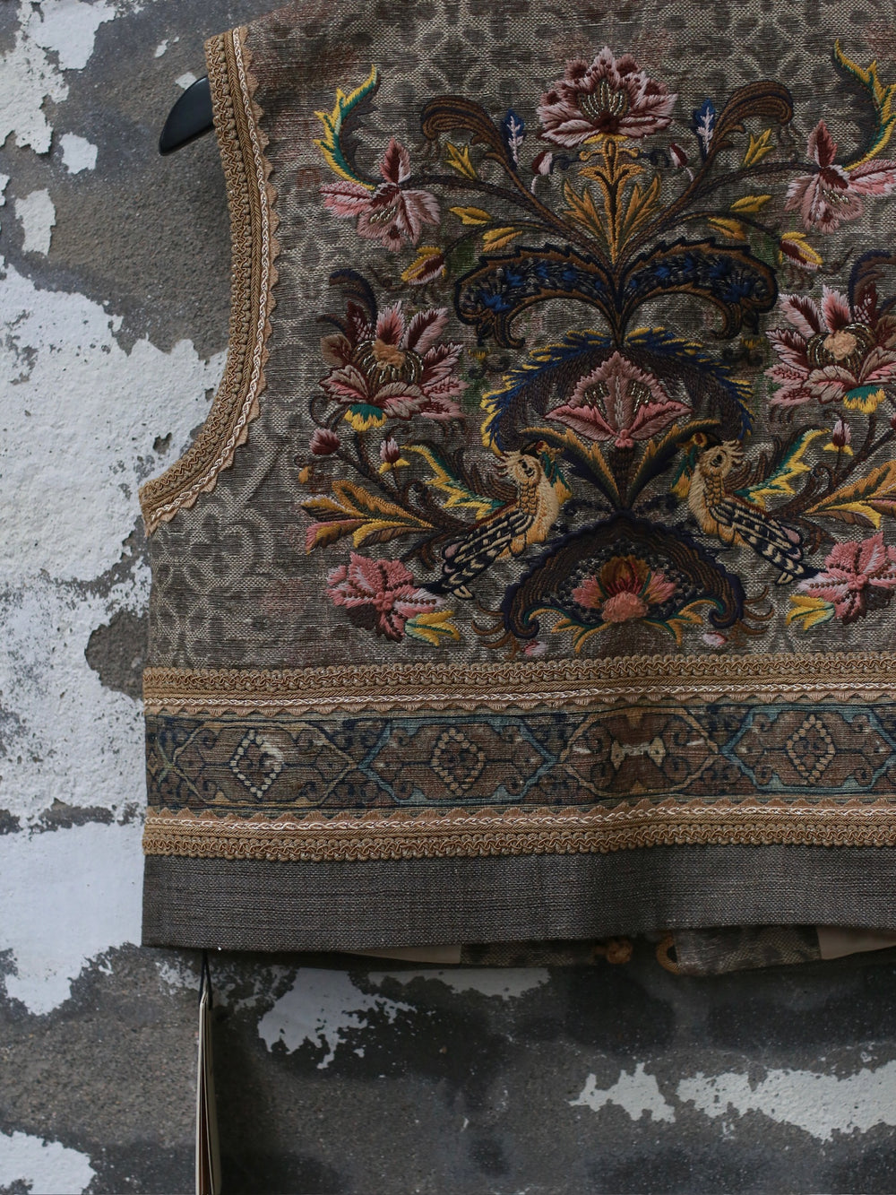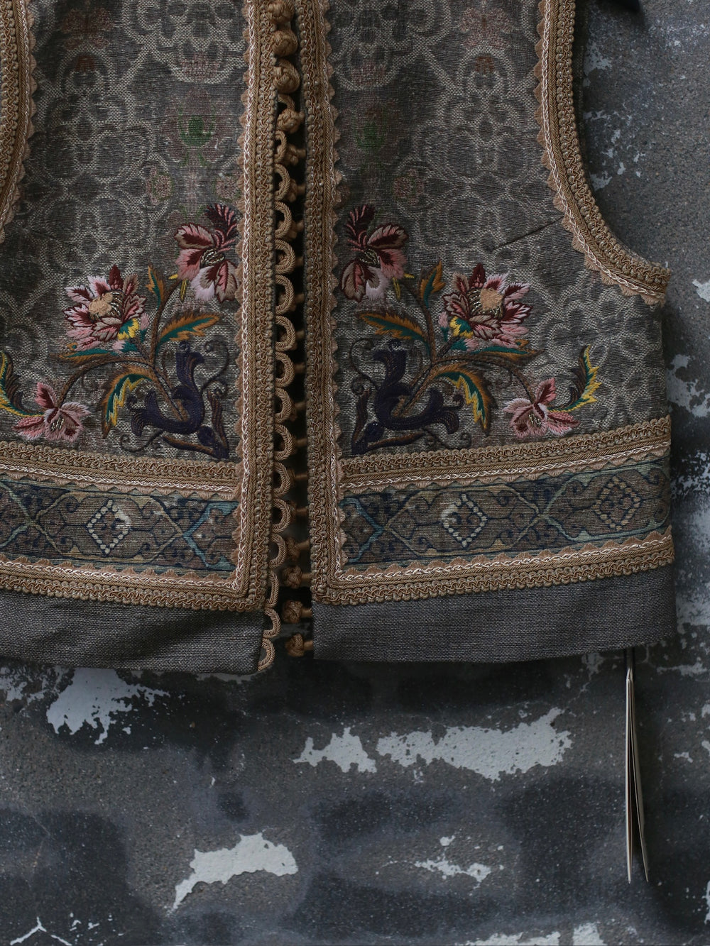 INTO THE EAST Tussah Silk Silver Lotus Button Vest ITE-E1DGAW010GR22VE-LV Green