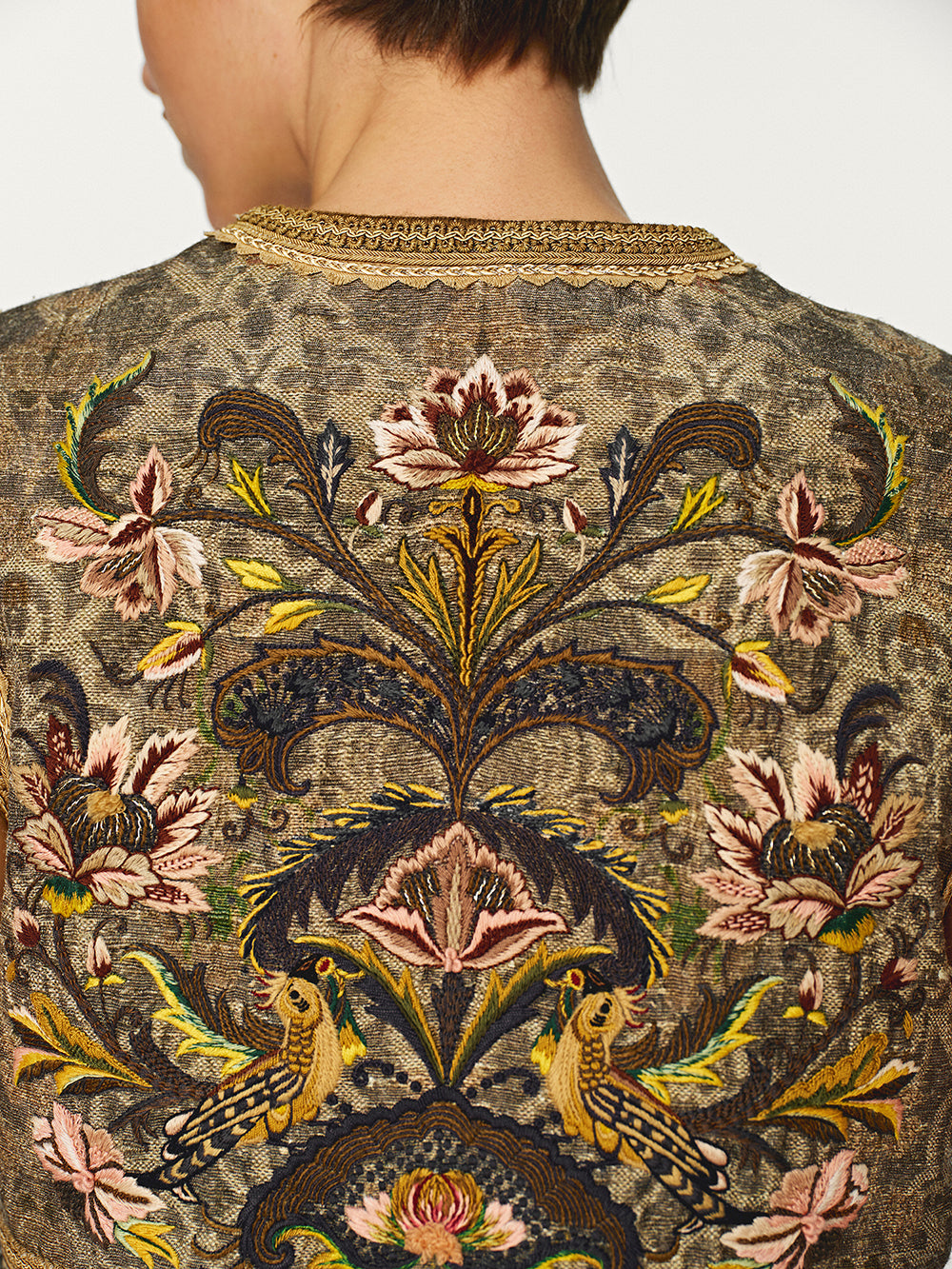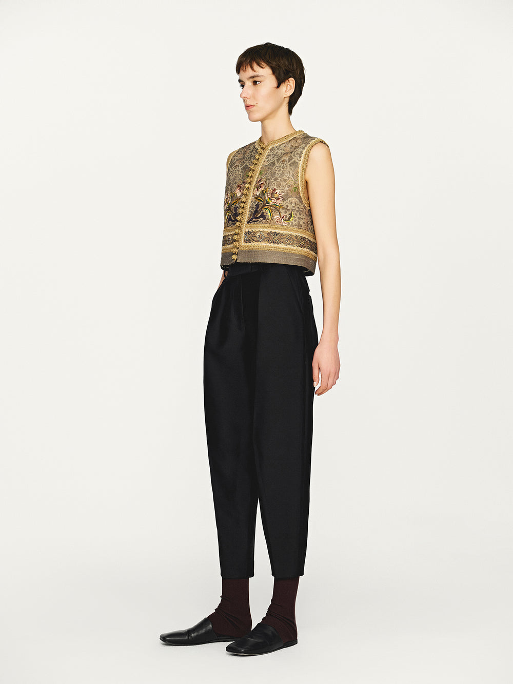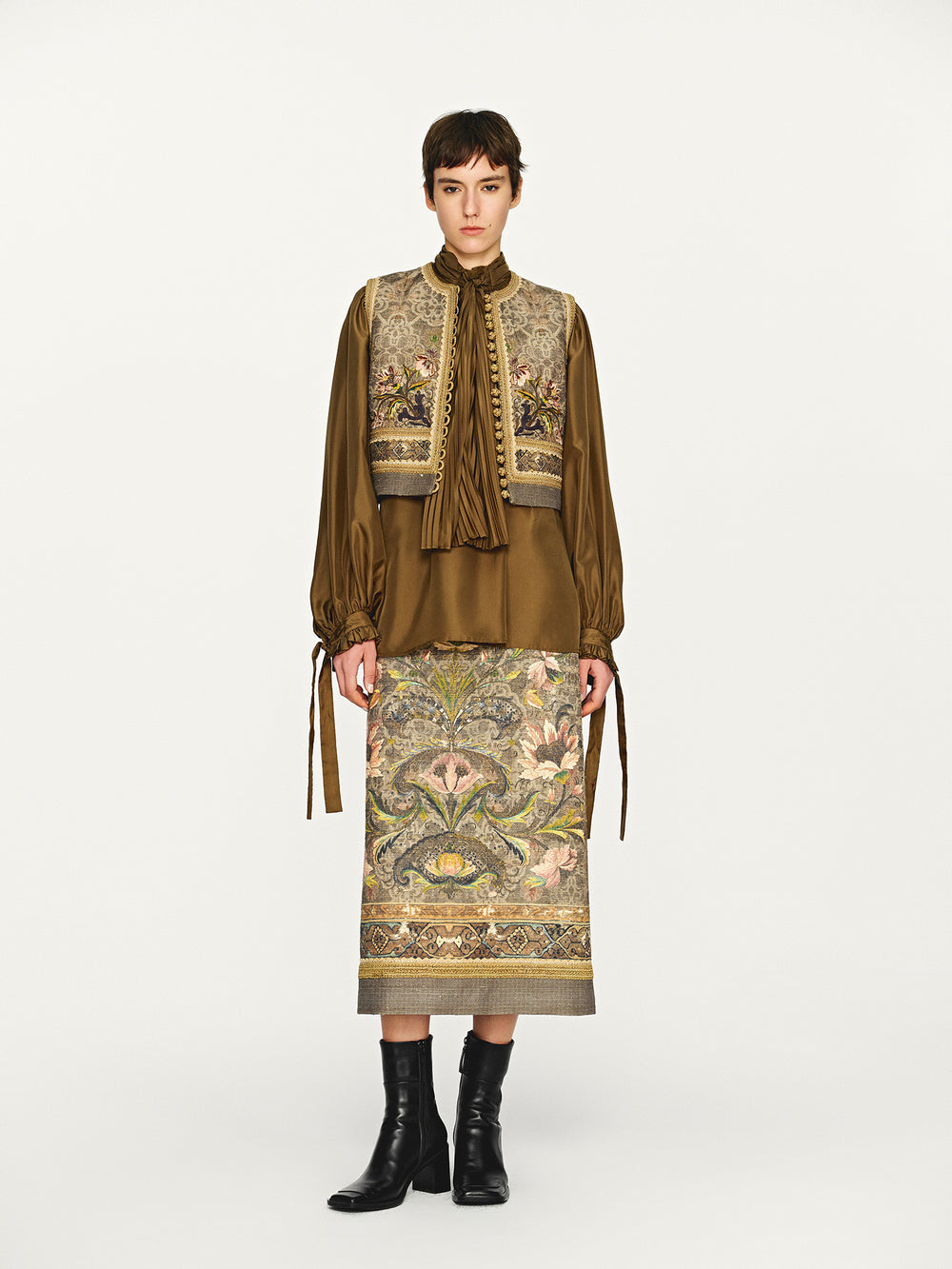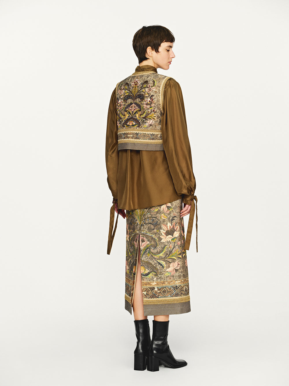 INTO THE EAST Tussah Silk Silver Lotus Button Vest ITE-E1DGAW010GR22VE-LV Green