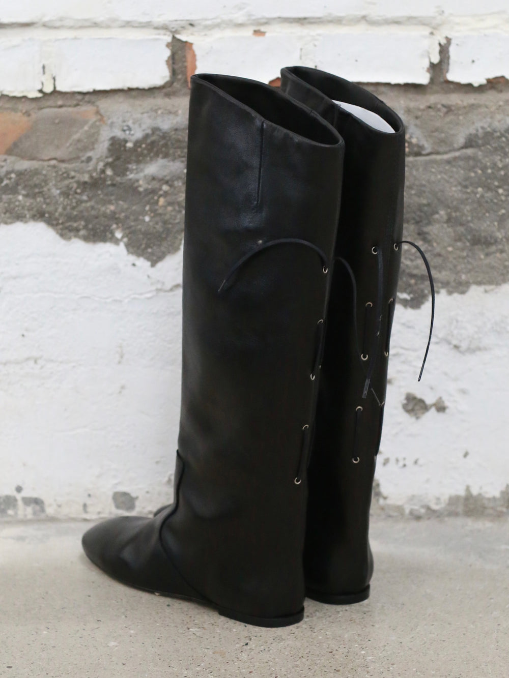 Miista Fall/Winter 2025 Black Lace-up Round Toe High Boots (Spain) MST-MI_5781-HEI Black