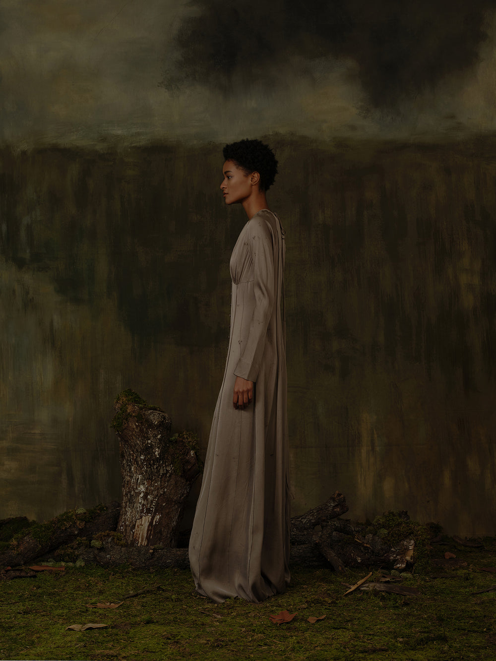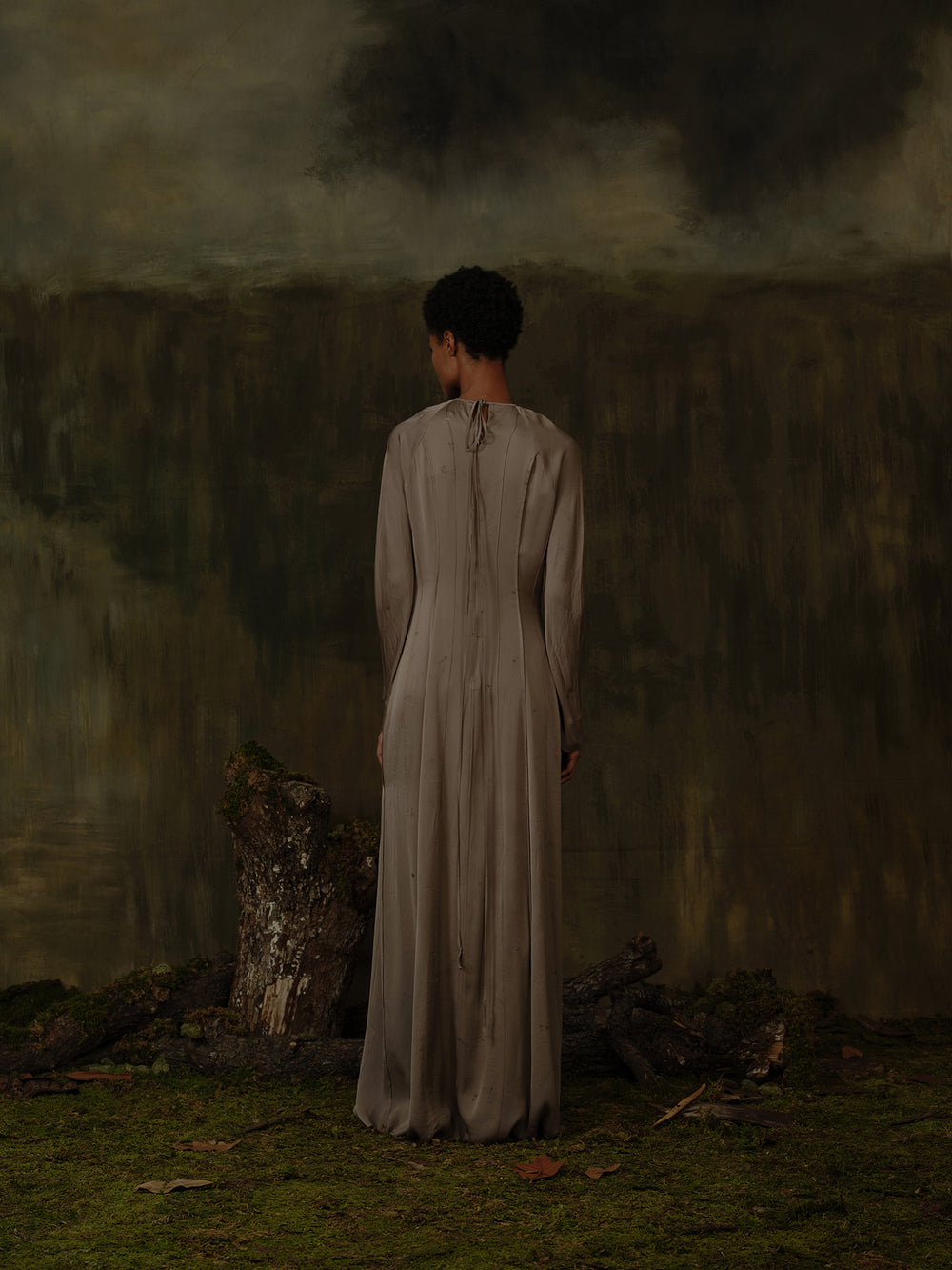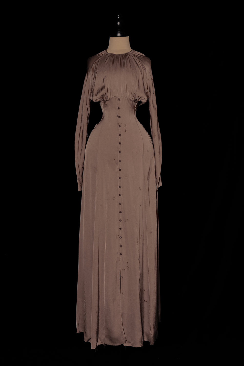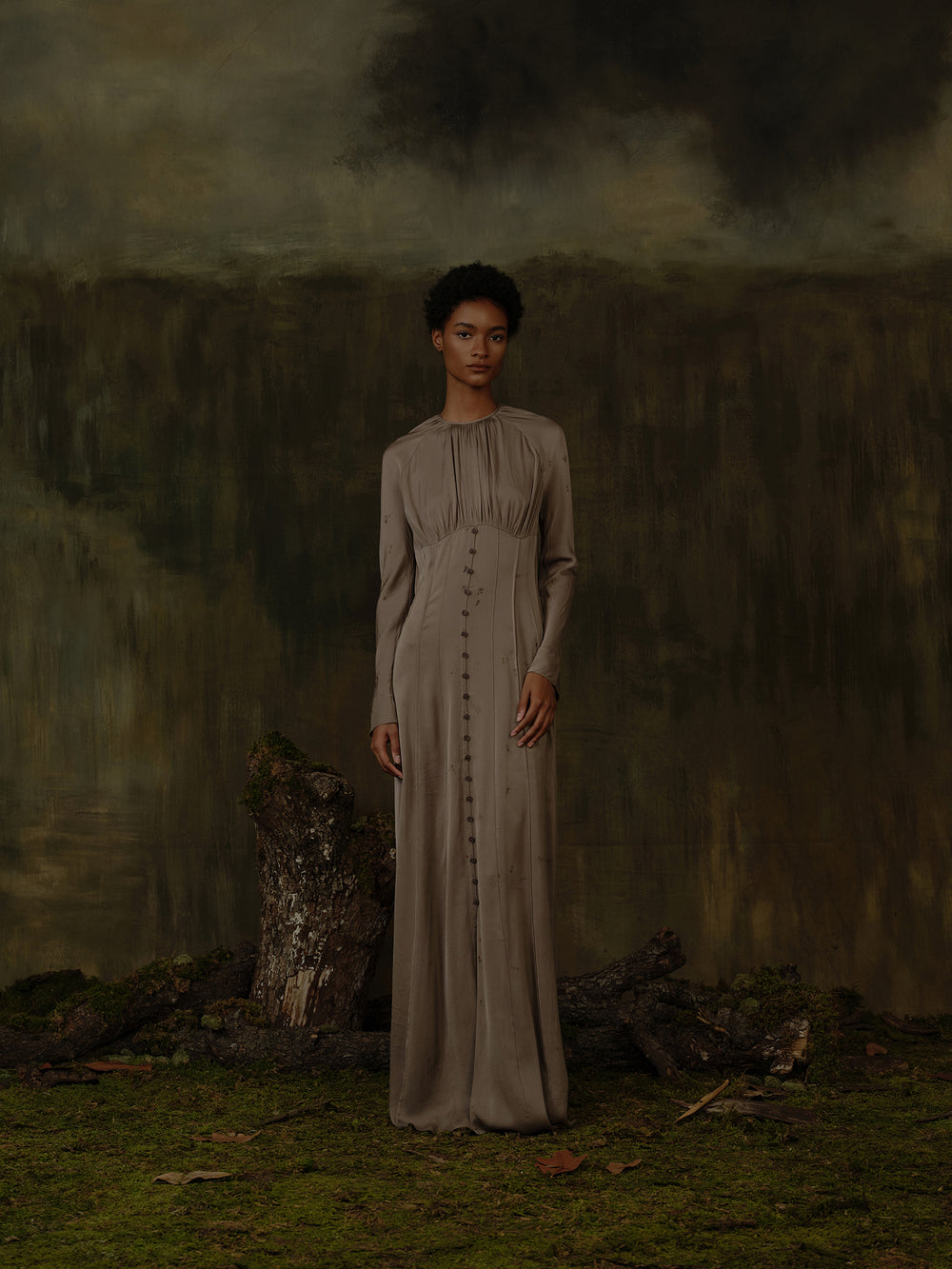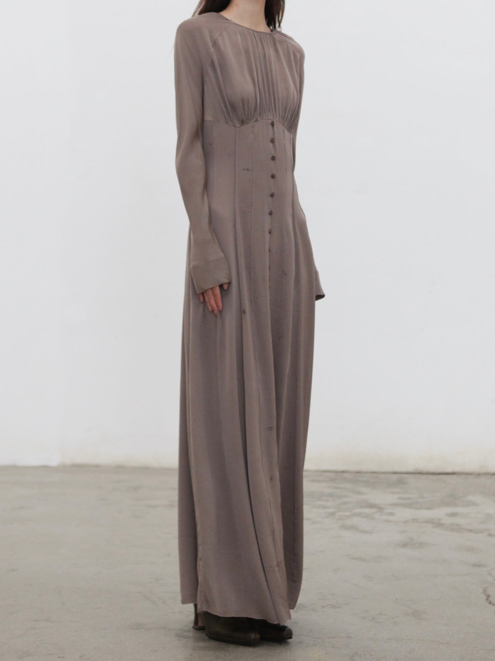 Mutedance 25 Autumn and Winter Round Neck Long Sleeve Waist Dress Flower Dye MD-MD25FW99-sand (MD25FW98)