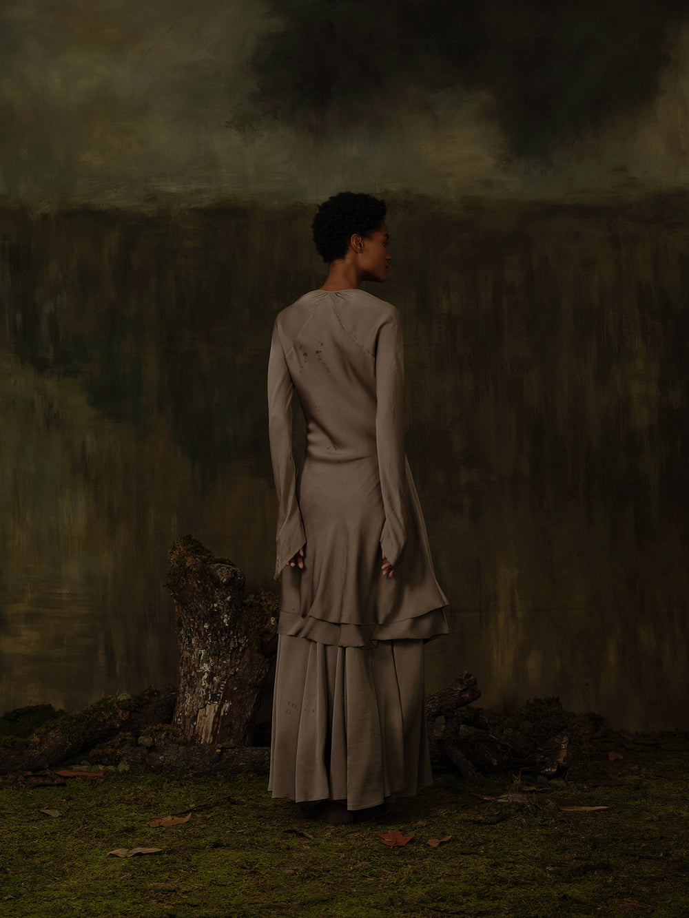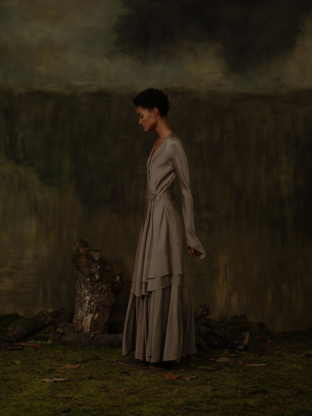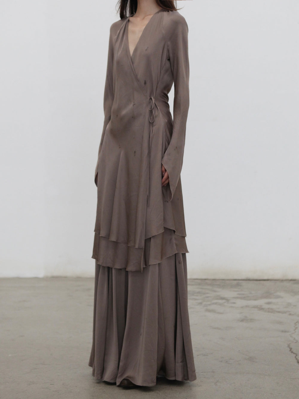 Mutedance 25 Autumn and Winter V-neck tie dress MD-MD25FW34-purple