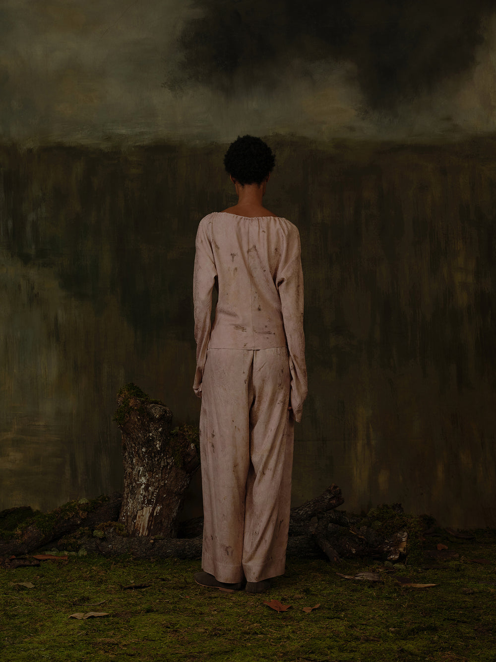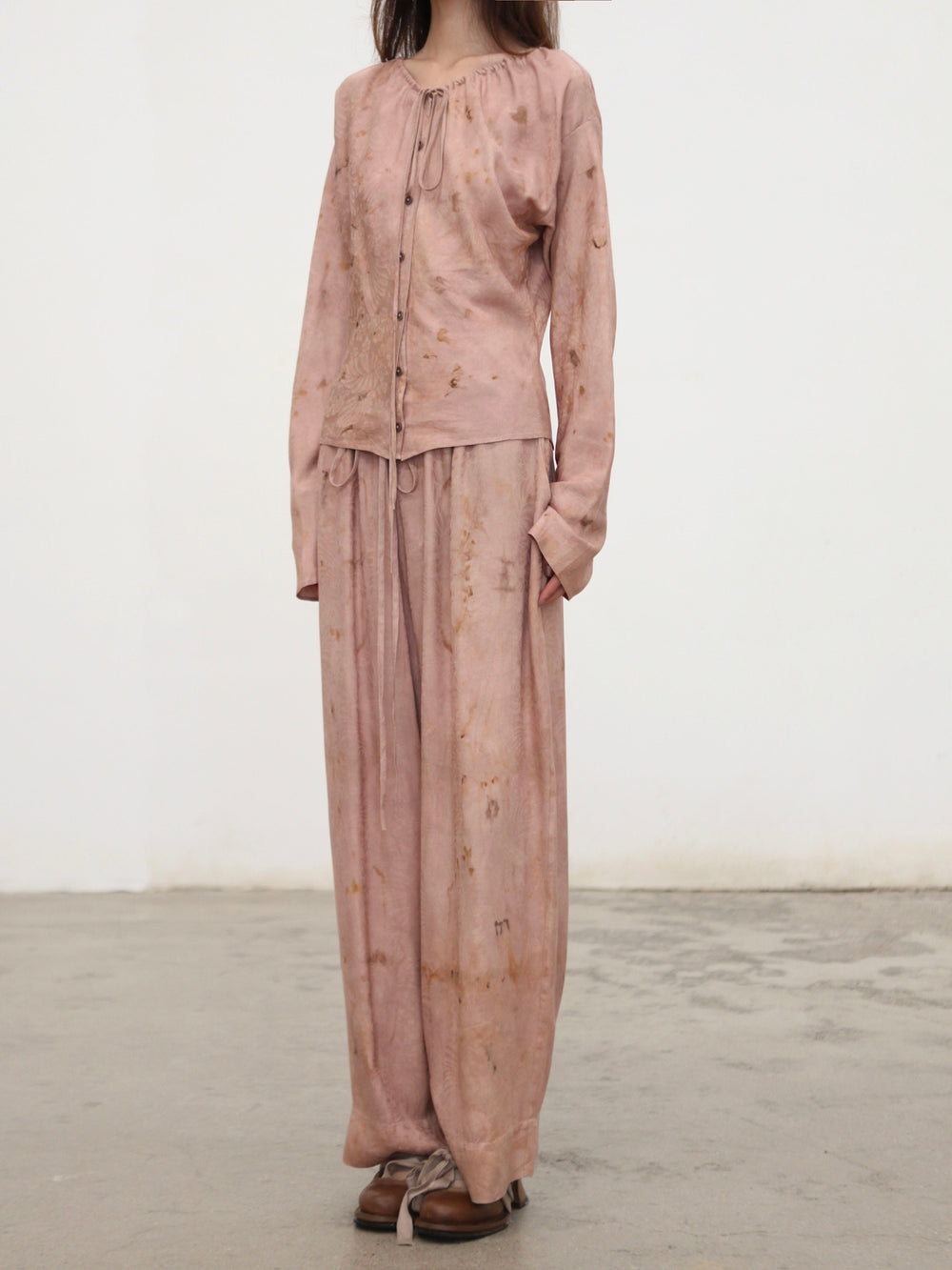 Mutedance 25 Autumn/Winter Elastic Wide Waist Drawstring Casual Pants Series Floral Dye MD-MD25FW73-rose (MD25FW71)