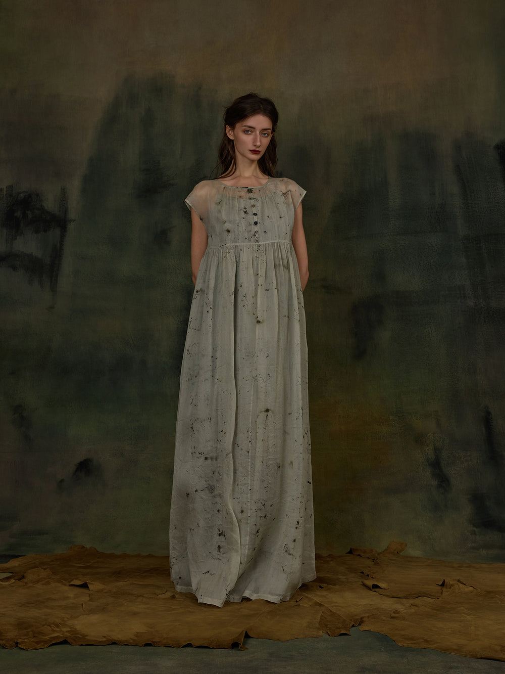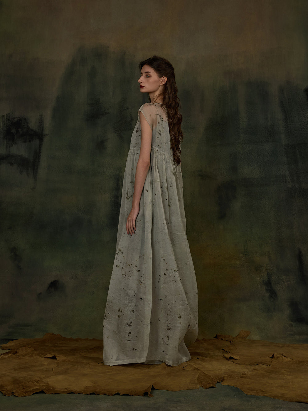 Mutedance Spring/Summer 2026 Floral Dyed Silk Sheer Round Neck Long Dress MD-MD26SS26 (MD26SS25)