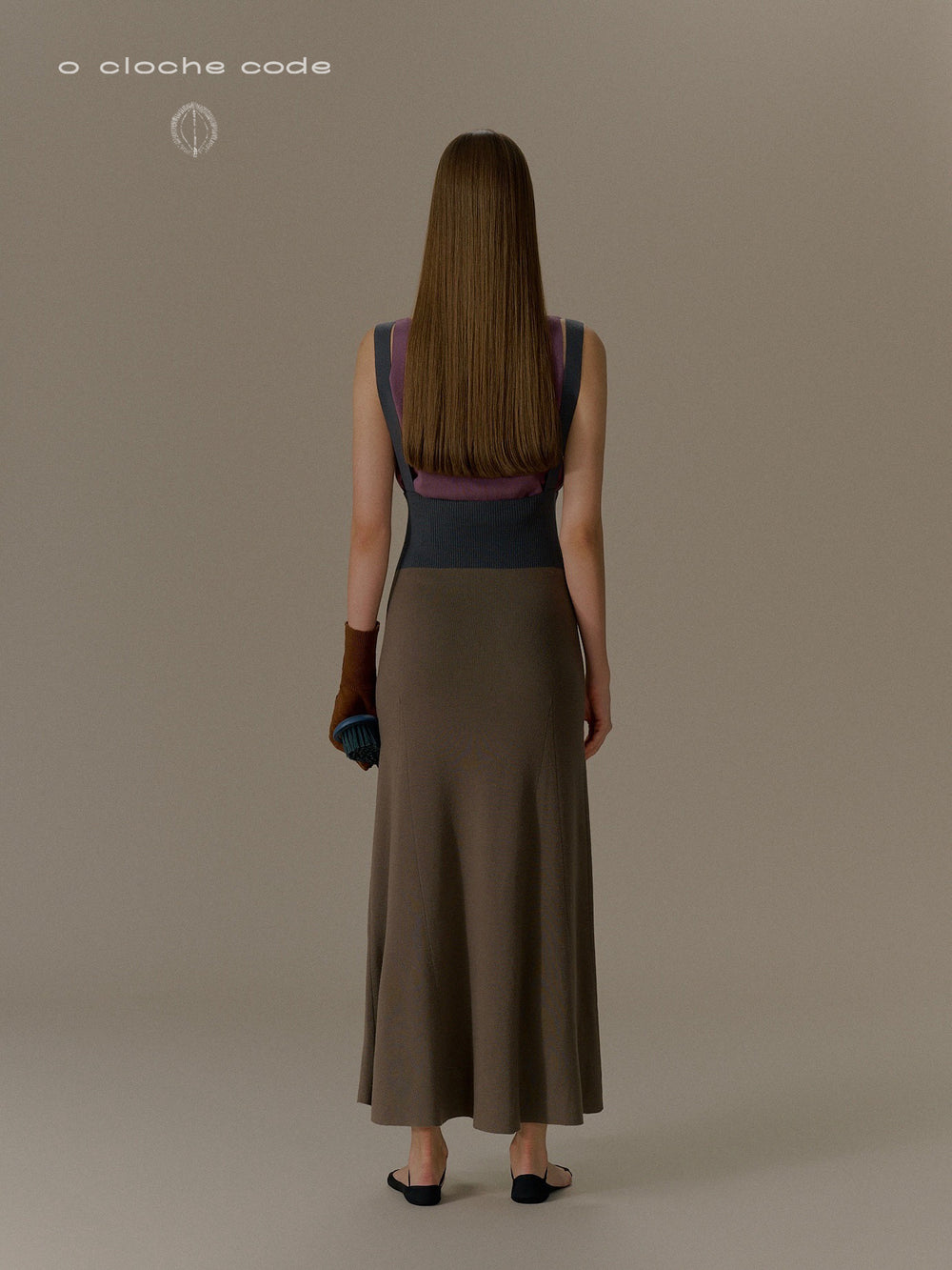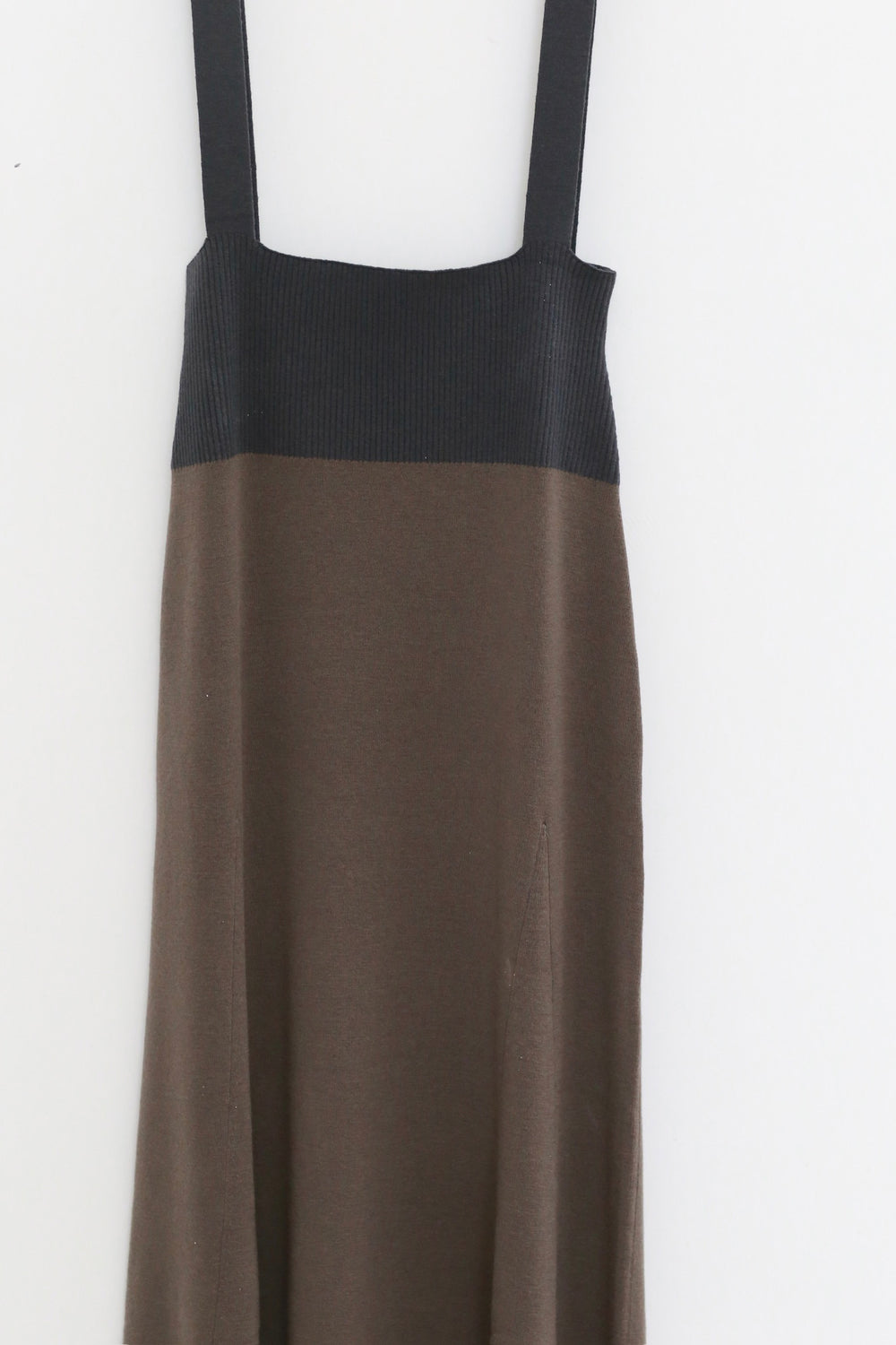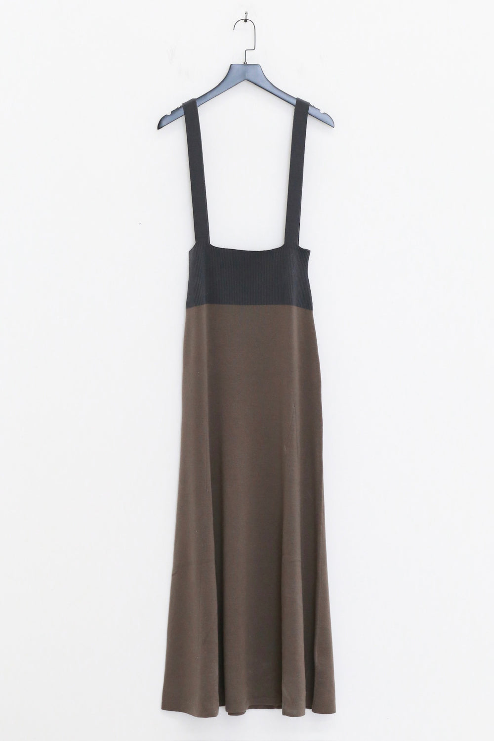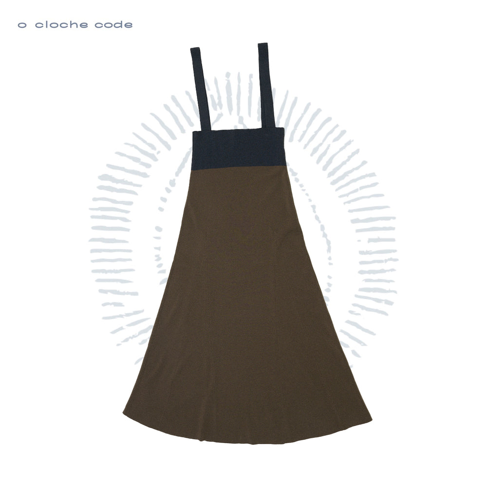 o cloche code 25 Fall/Winter Double Shoulder Suspender Maxi Dress Merino Wool Knit OCC-OH01Q857-WMHHH Ebony Black/Taupe
