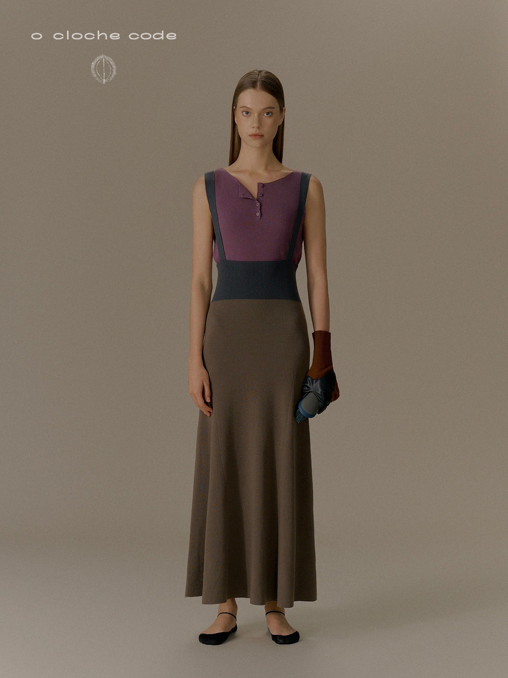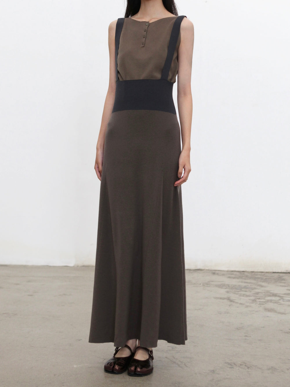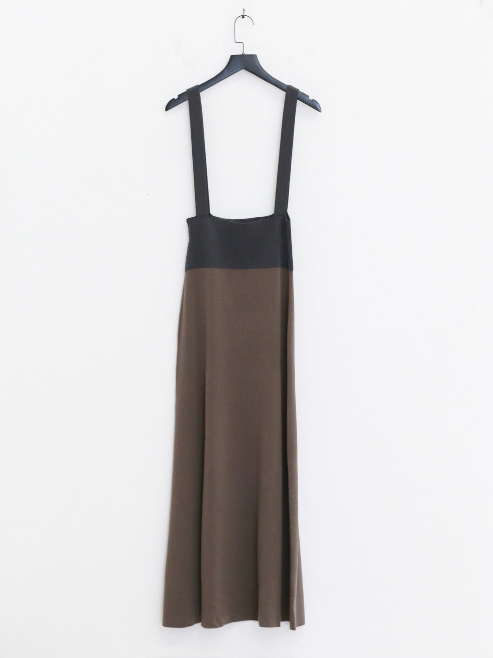 o cloche code 25 Fall/Winter Double Shoulder Suspender Maxi Dress Merino Wool Knit OCC-OH01Q857-WMHHH Ebony Black/Taupe
