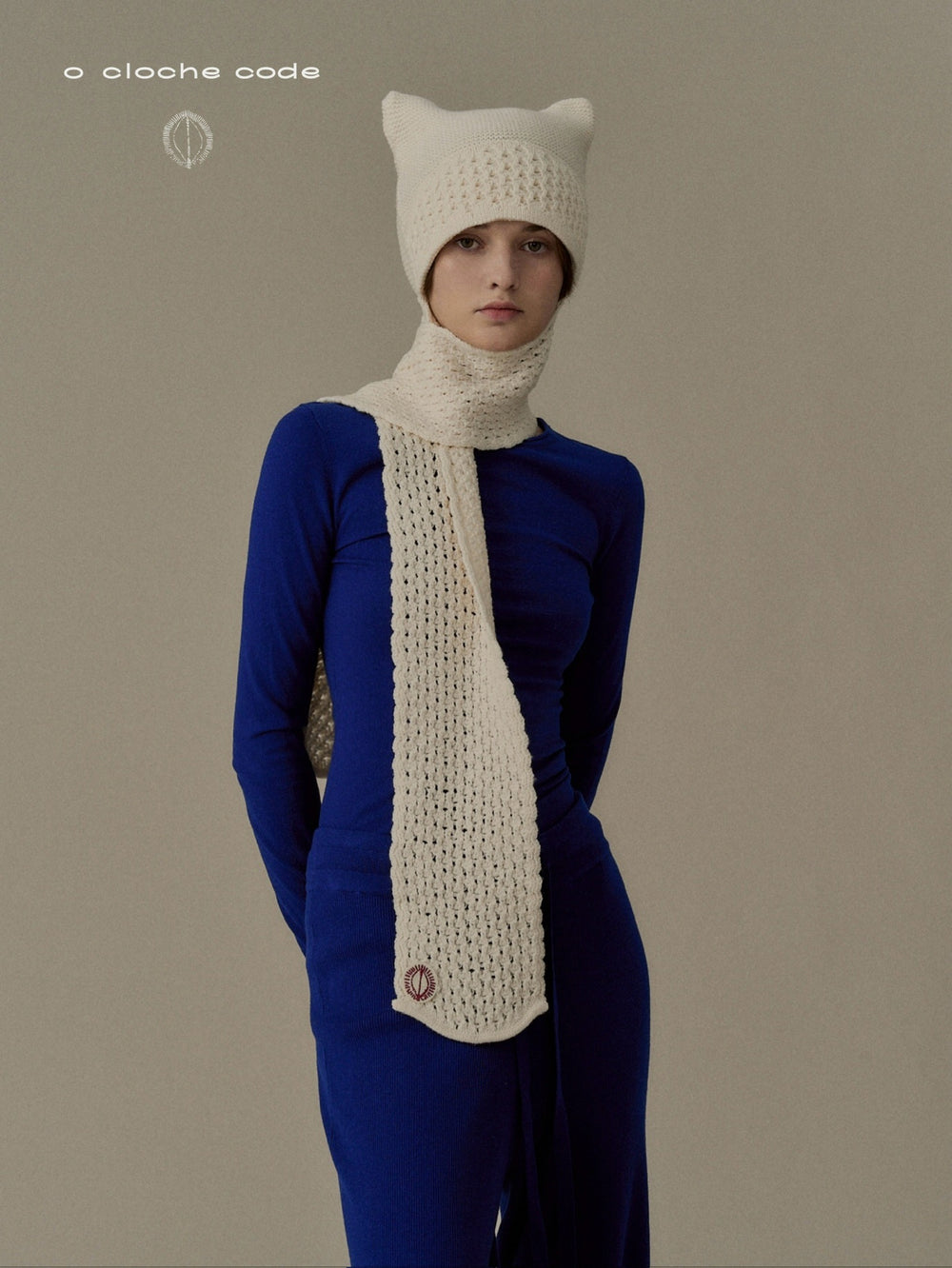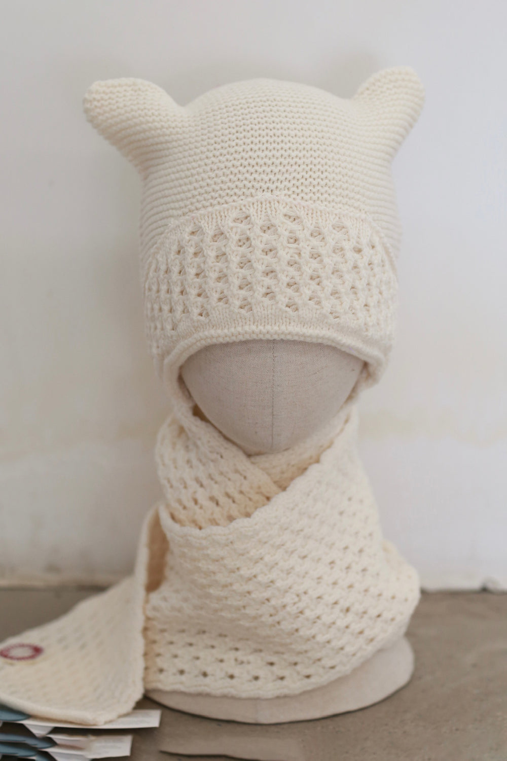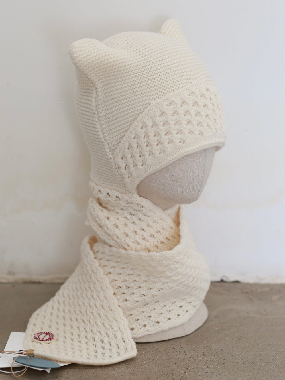 o cloche code wool ear flap scarf hat OCC-OH01S823W-RWB soft white