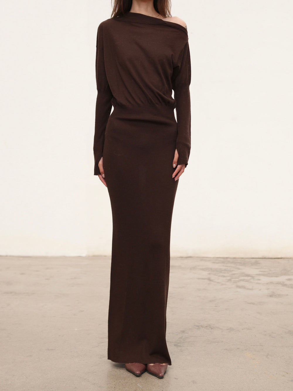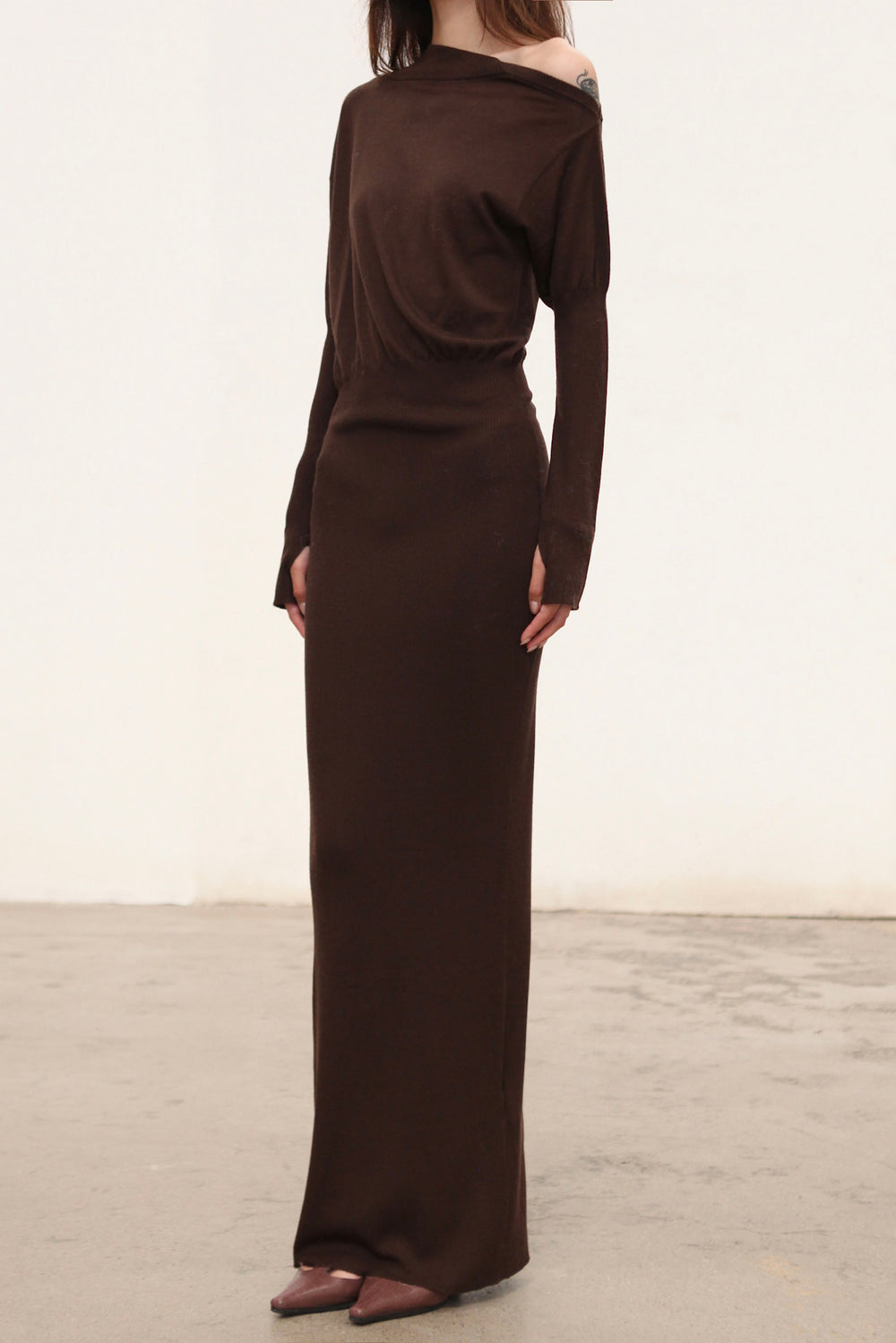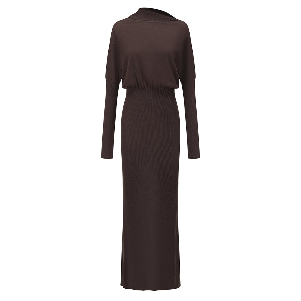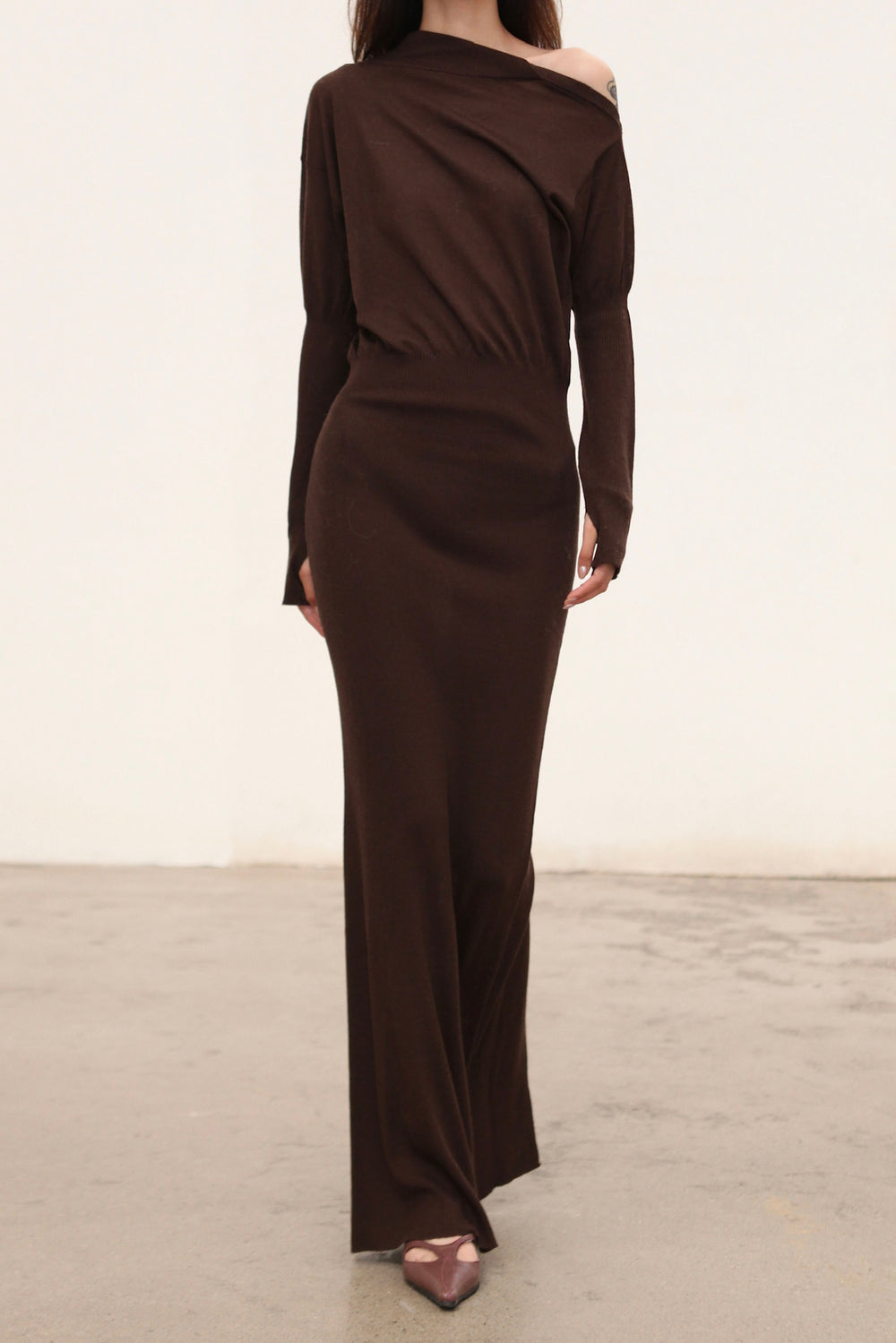 OUDE WAAG 25 Fall/Winter Asymmetrical Neck Wool Knit Dress OW-OW-25AW-KD05W1BR440-KF Coffee