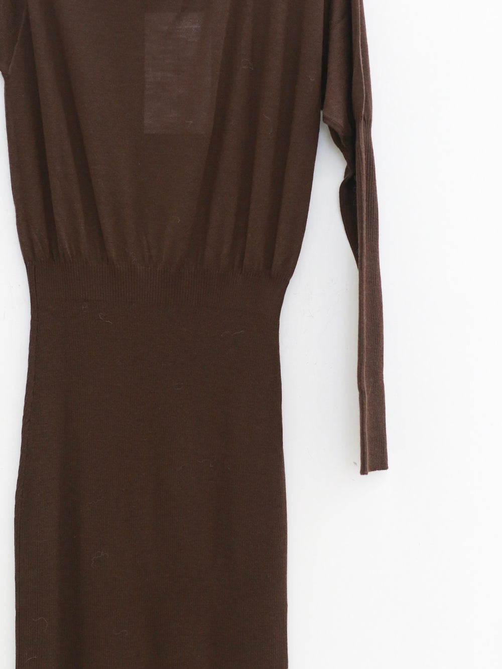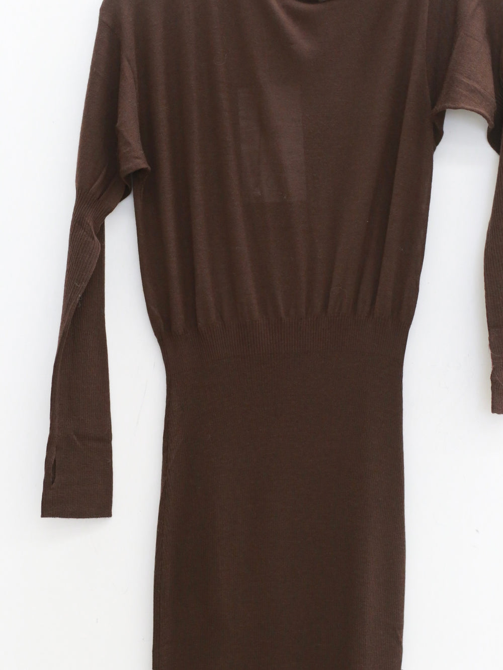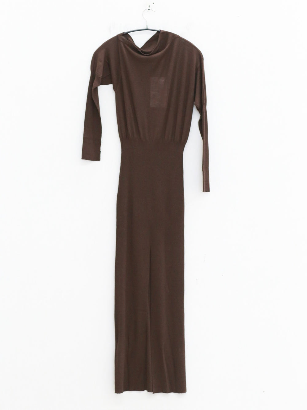 OUDE WAAG 25 Fall/Winter Asymmetrical Neck Wool Knit Dress OW-OW-25AW-KD05W1BR440-KF Coffee