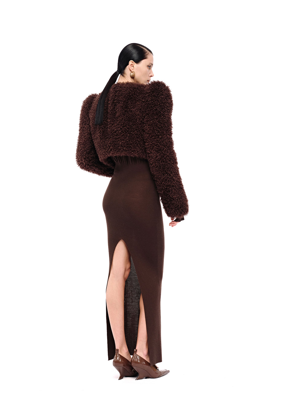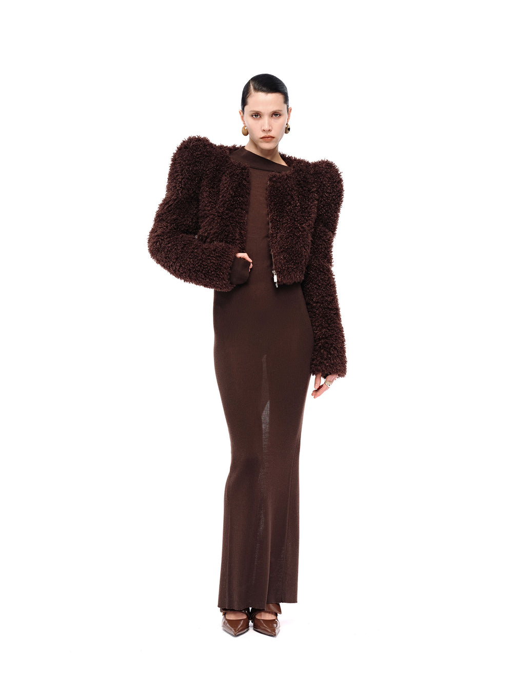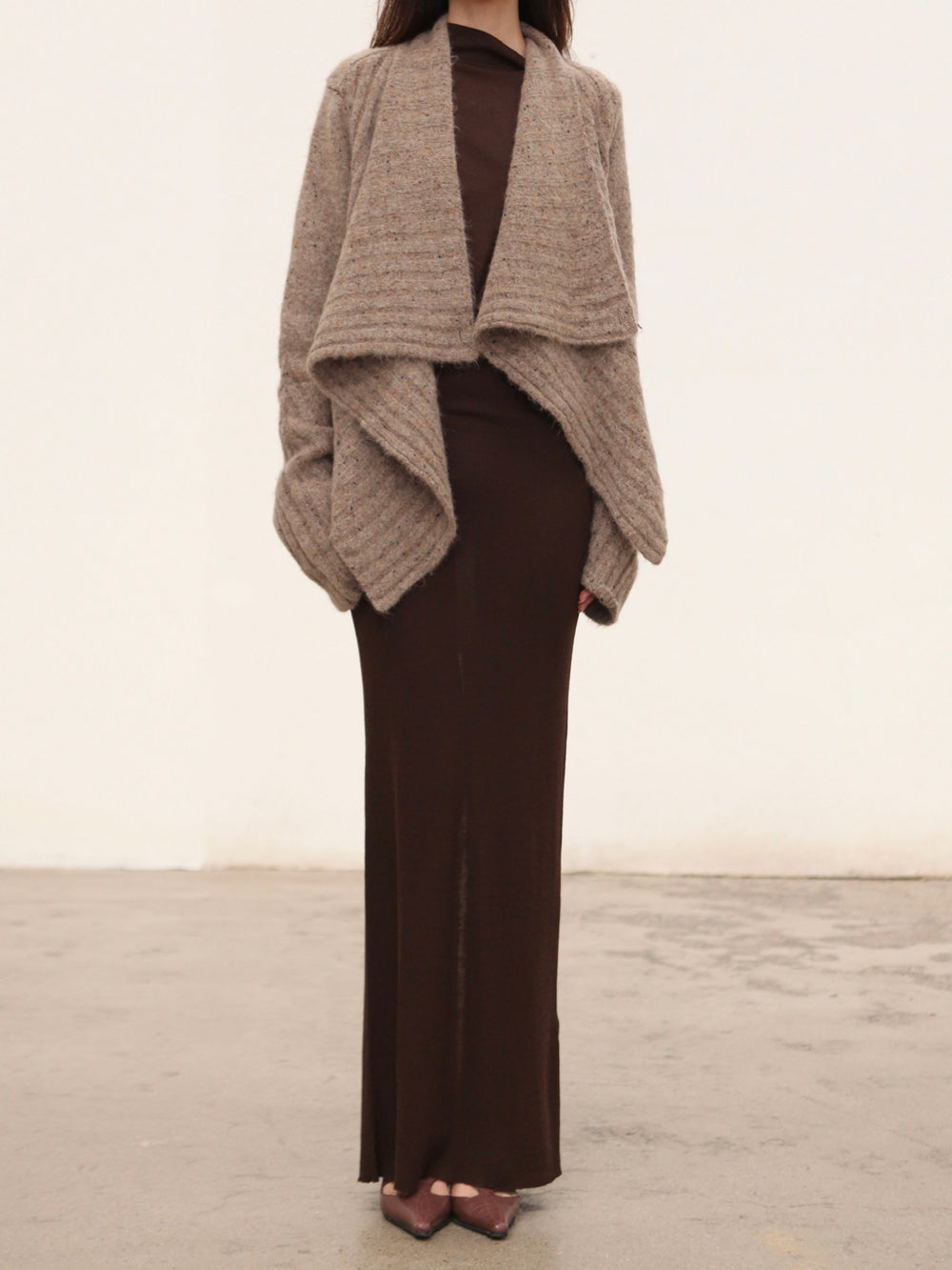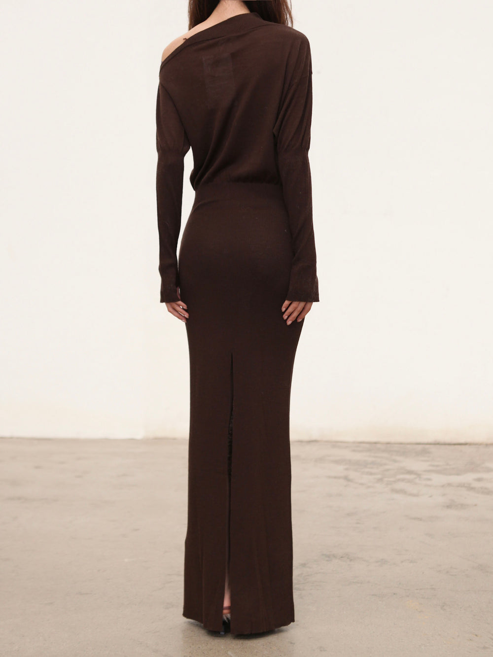 OUDE WAAG 25 Fall/Winter Asymmetrical Neck Wool Knit Dress OW-OW-25AW-KD05W1BR440-KF Coffee