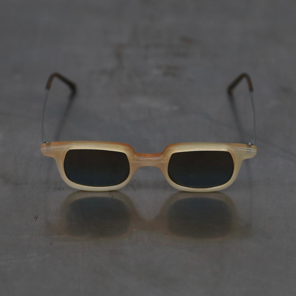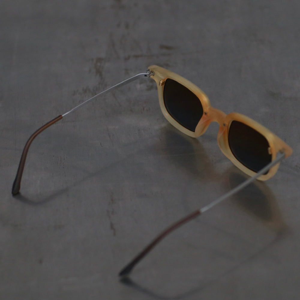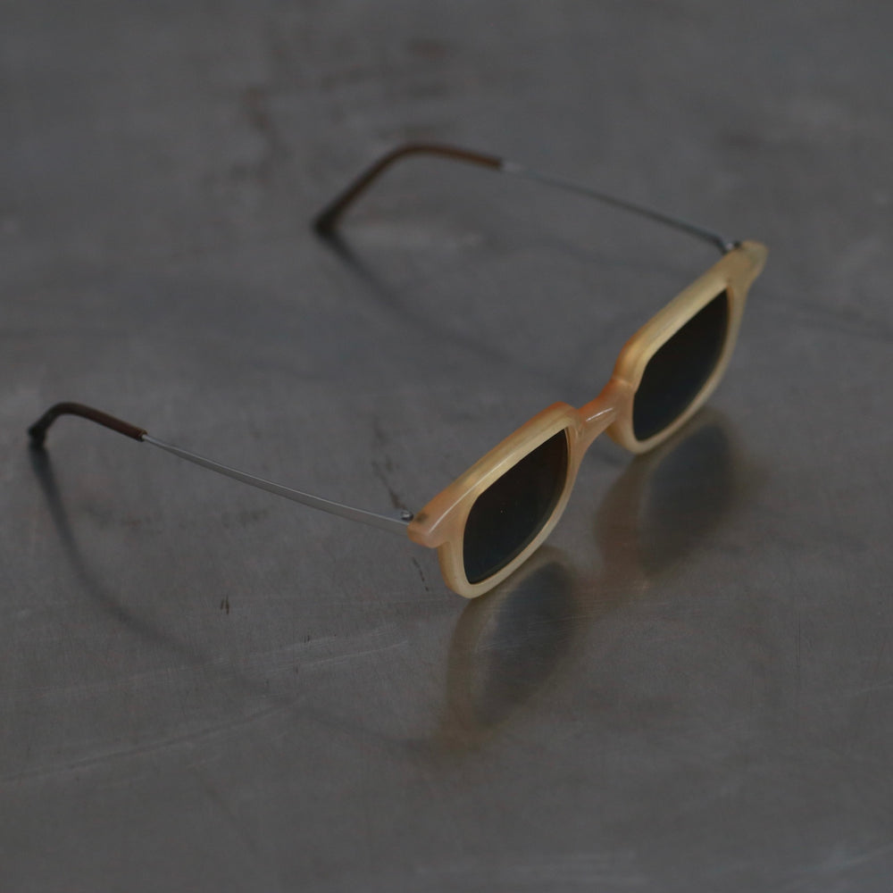Rigards RG1065 Series Rectangular Buffalo Horn Glasses RG-RG1065-HPKQTL Amber Frame with Gunmetal Blue Lenses