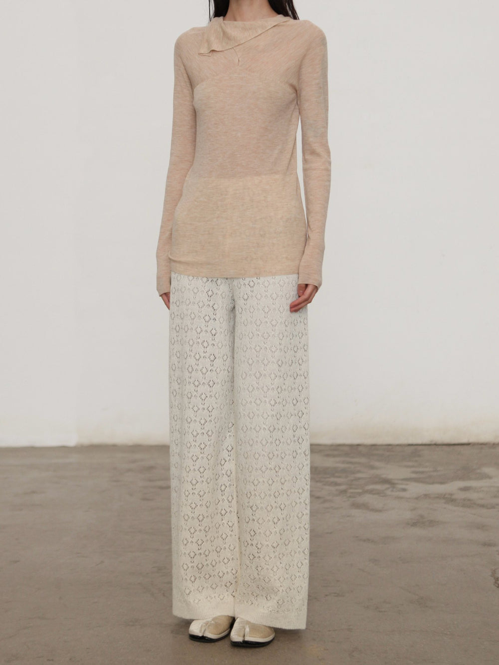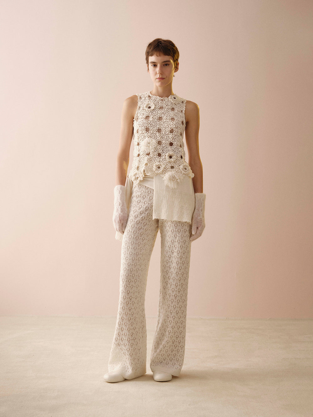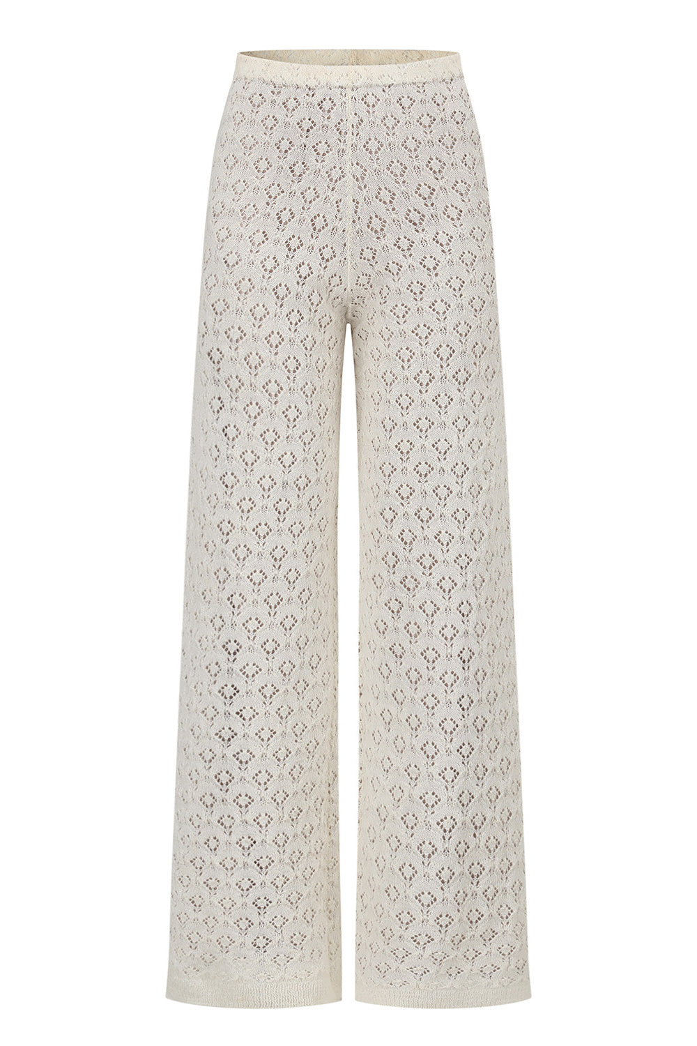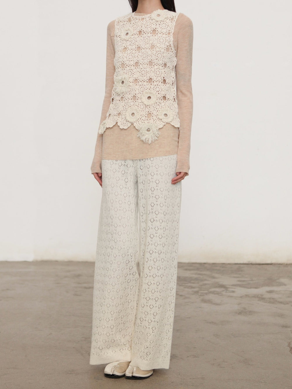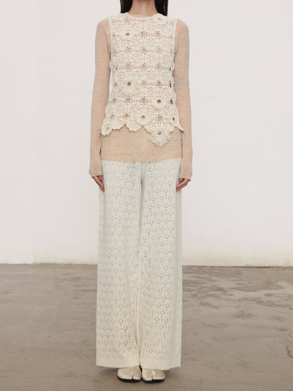 SWAYING 26 Early Spring Openwork Floral Knit Trousers SW-SW26PS3B11C1-BAI White