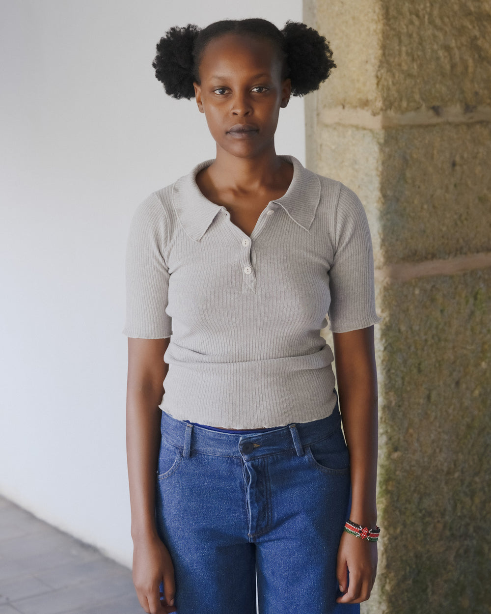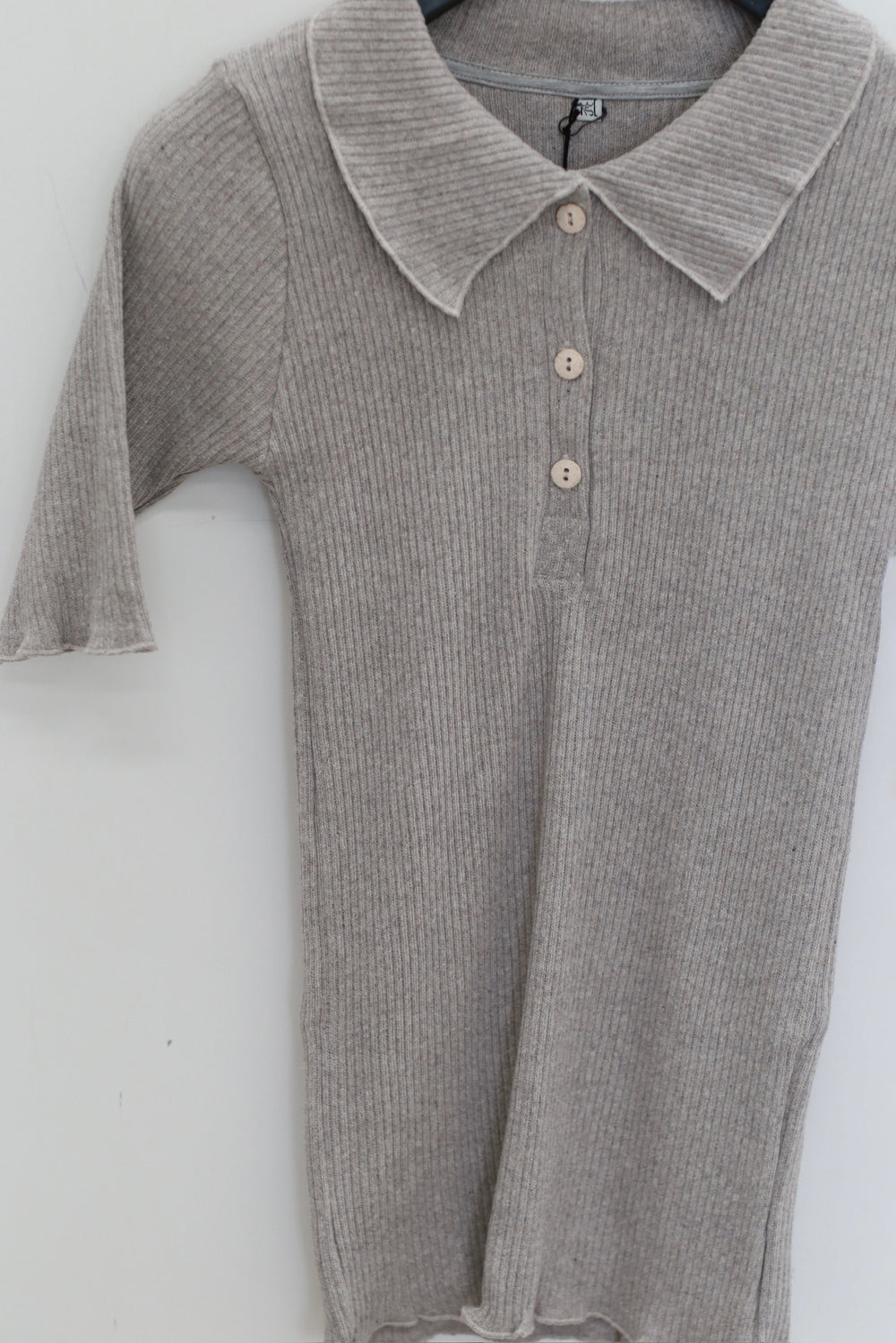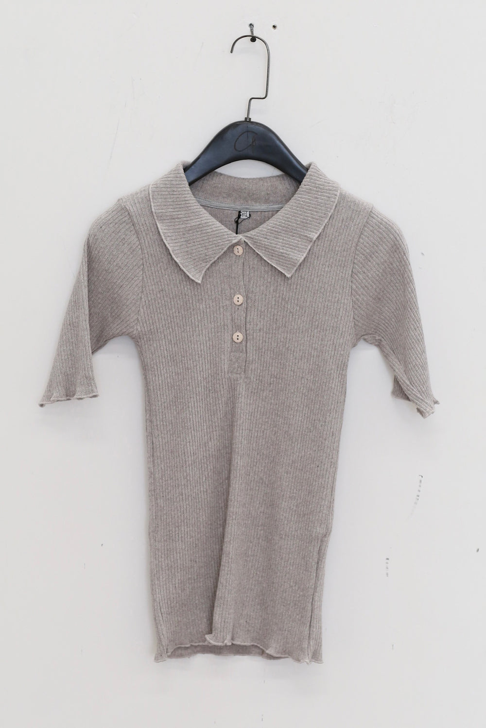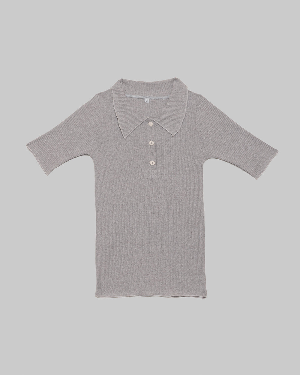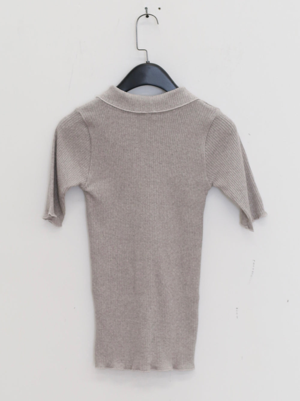 BASERANGE Fall/Winter 2025 Collared Short-Sleeve T-Shirt, France. BAS-TTDP-RCR-WI25-Grey Melange