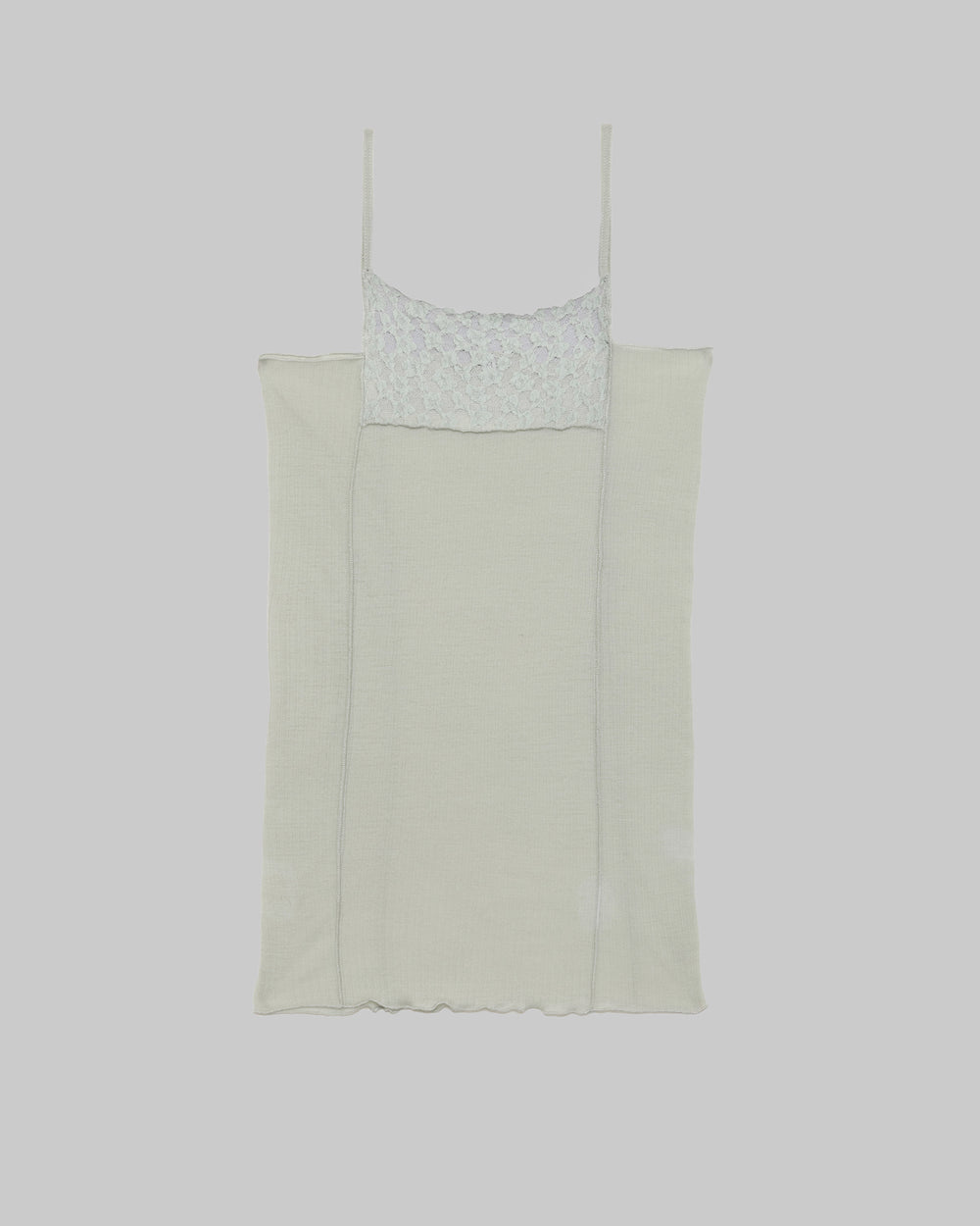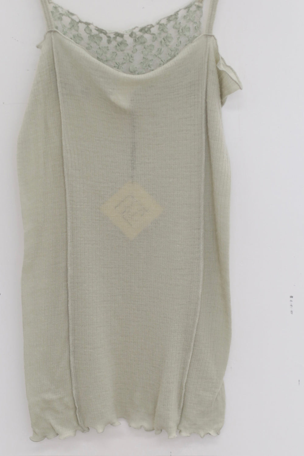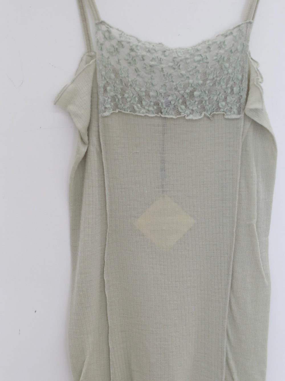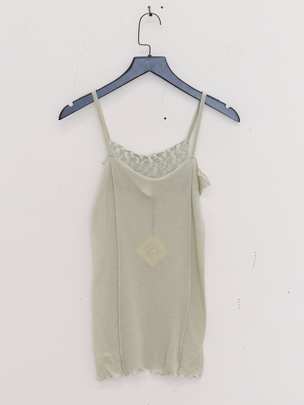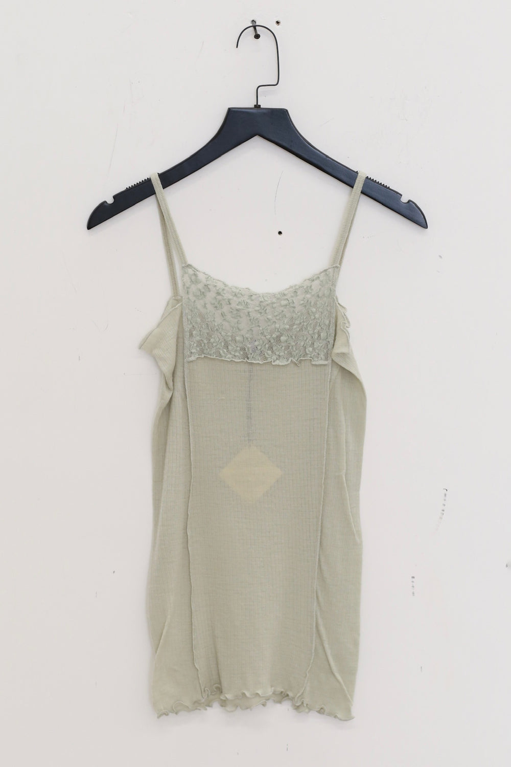 BASERANGE Fall/Winter 2025 Patchwork Lace Camisole Top, France BAS-TTOMK-WR-WI25-BRUN GREEN
