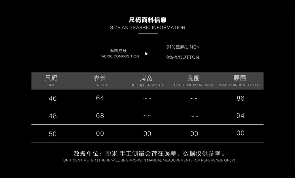 腰部冷杉 (CM) | 71 | 76 | 81 | 86 | 91.5 | 96.5 | 101.5 |