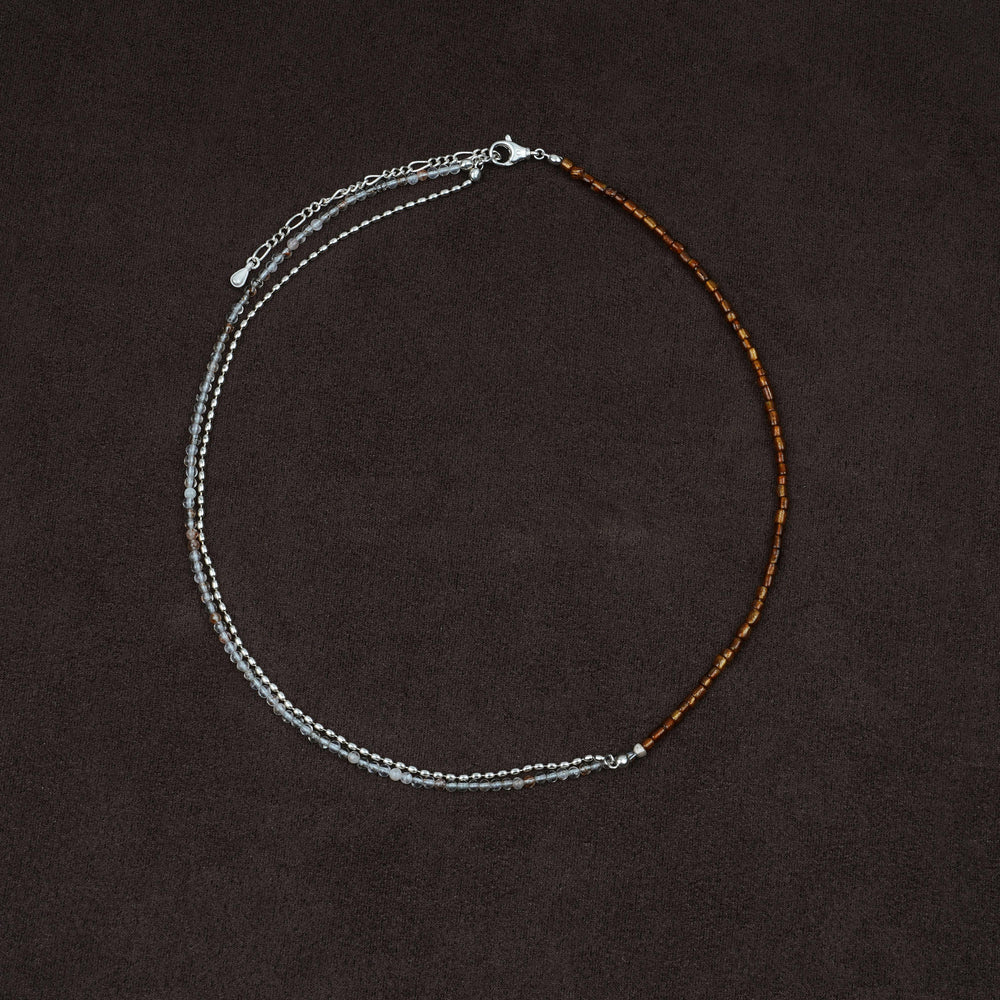 OLIO E ACETO Crystal Sterling Silver Double-Layer Beaded Necklace OLIO-OA14N25-YZ Silver/Brown