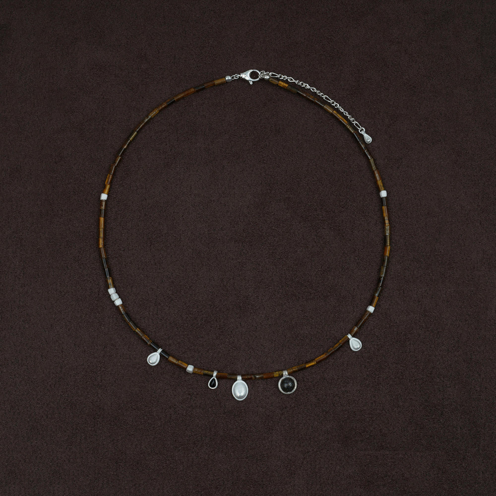 OLIO E ACETO Sterling Silver Tiger's Eye Beaded Pendant Necklace OLIO-OA14N26-YZHSZ Silver/Brown/Black/Dark Brown