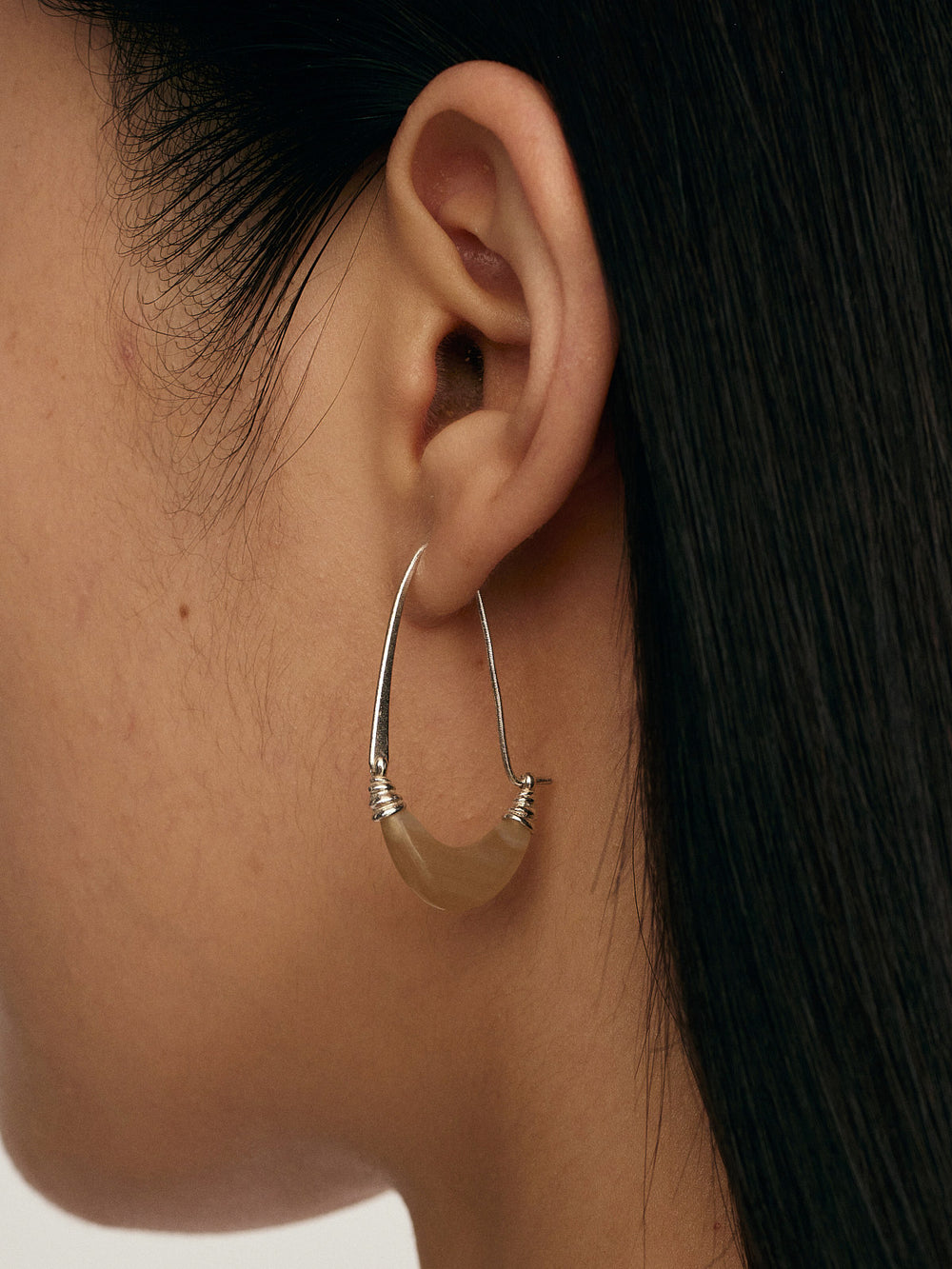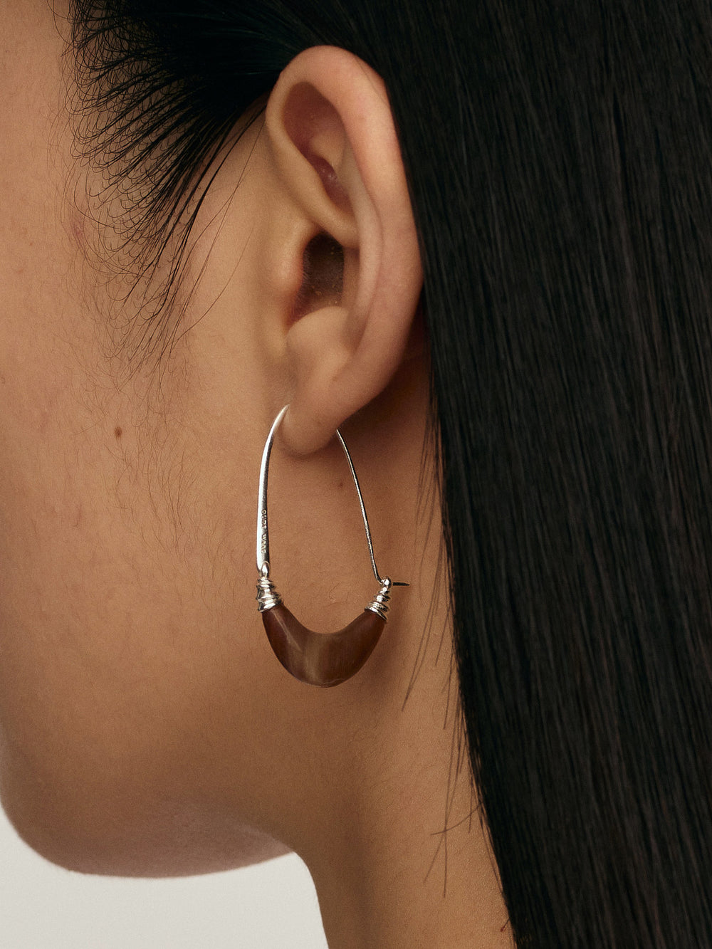OLIO E ACETO Sterling Silver White Ox Horn Crescent Earrings OLIO-OO-26SS-JE01H1YE450-QC (YE450 Light Brown)