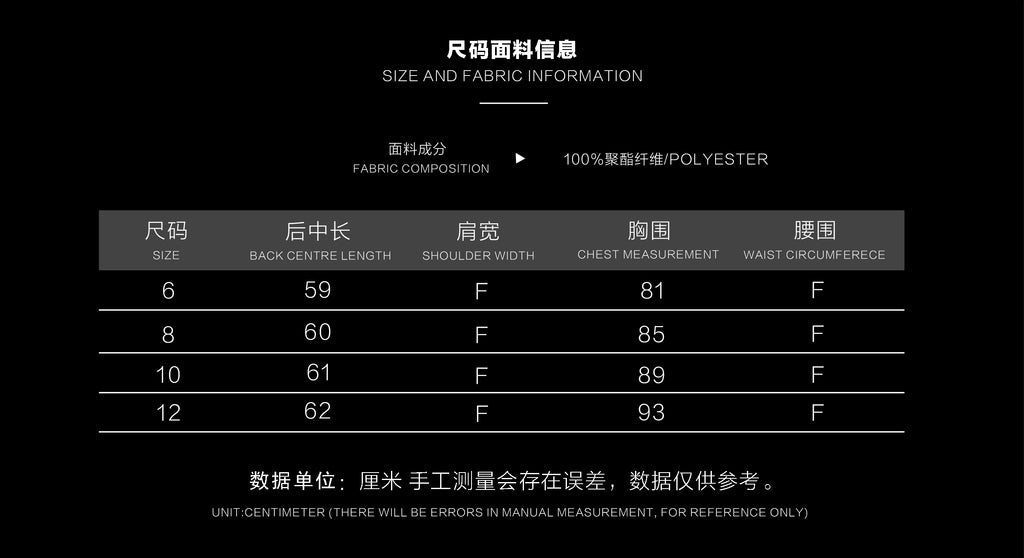 | 胸部适合(CM) | 84-89 | 91-97 | 88-104 | 107-112 | 114-119 | 122-127 | 129-134 |
