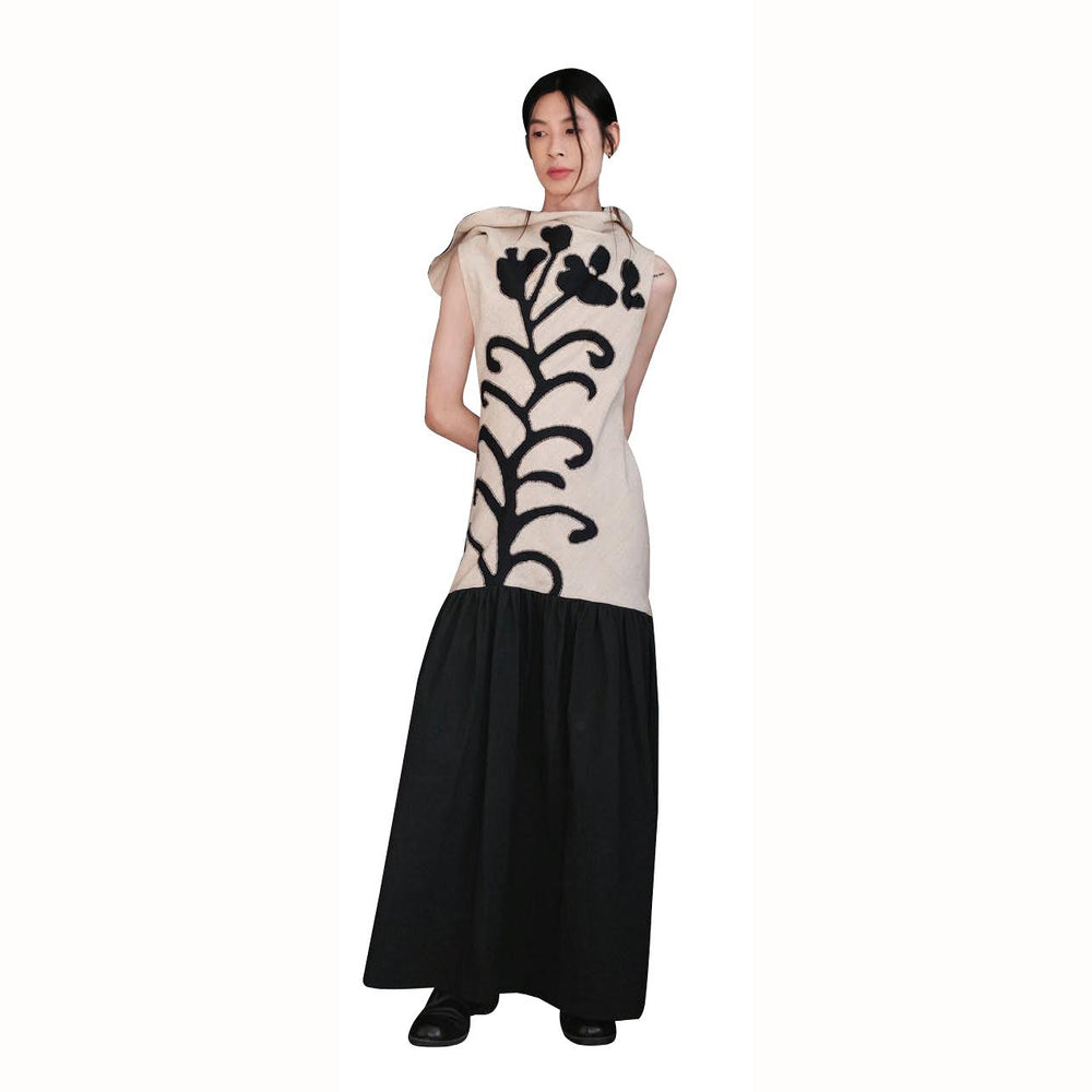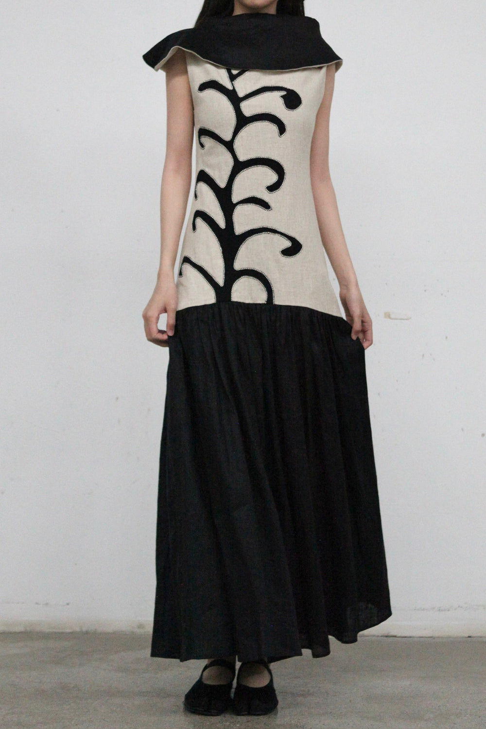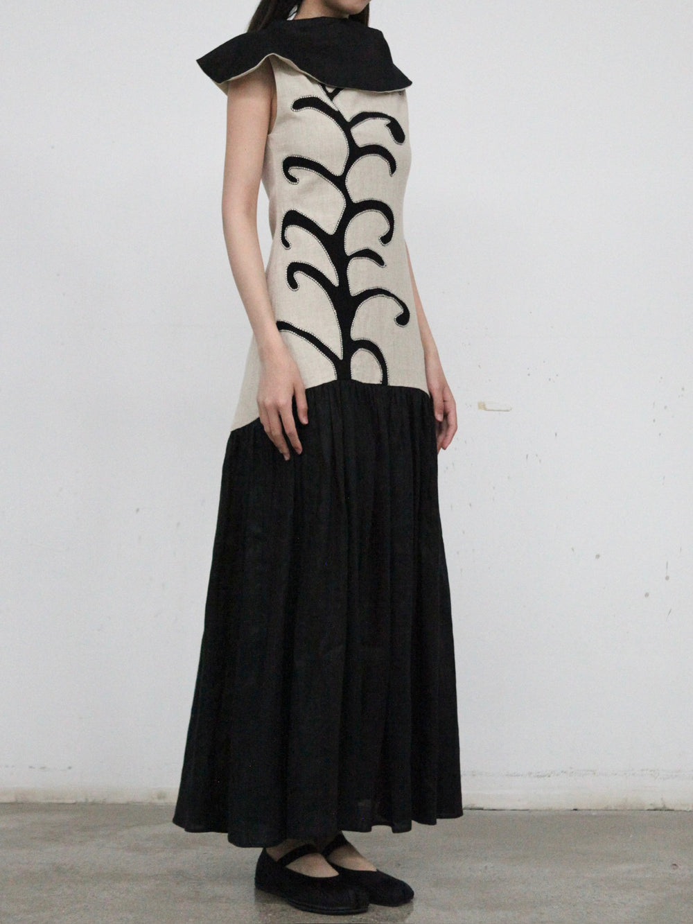 KINYAN LAM 25 Spring/Summer Hand-embroidered Wide Collar Dress KYL-V2DRS01B-HB Black and White