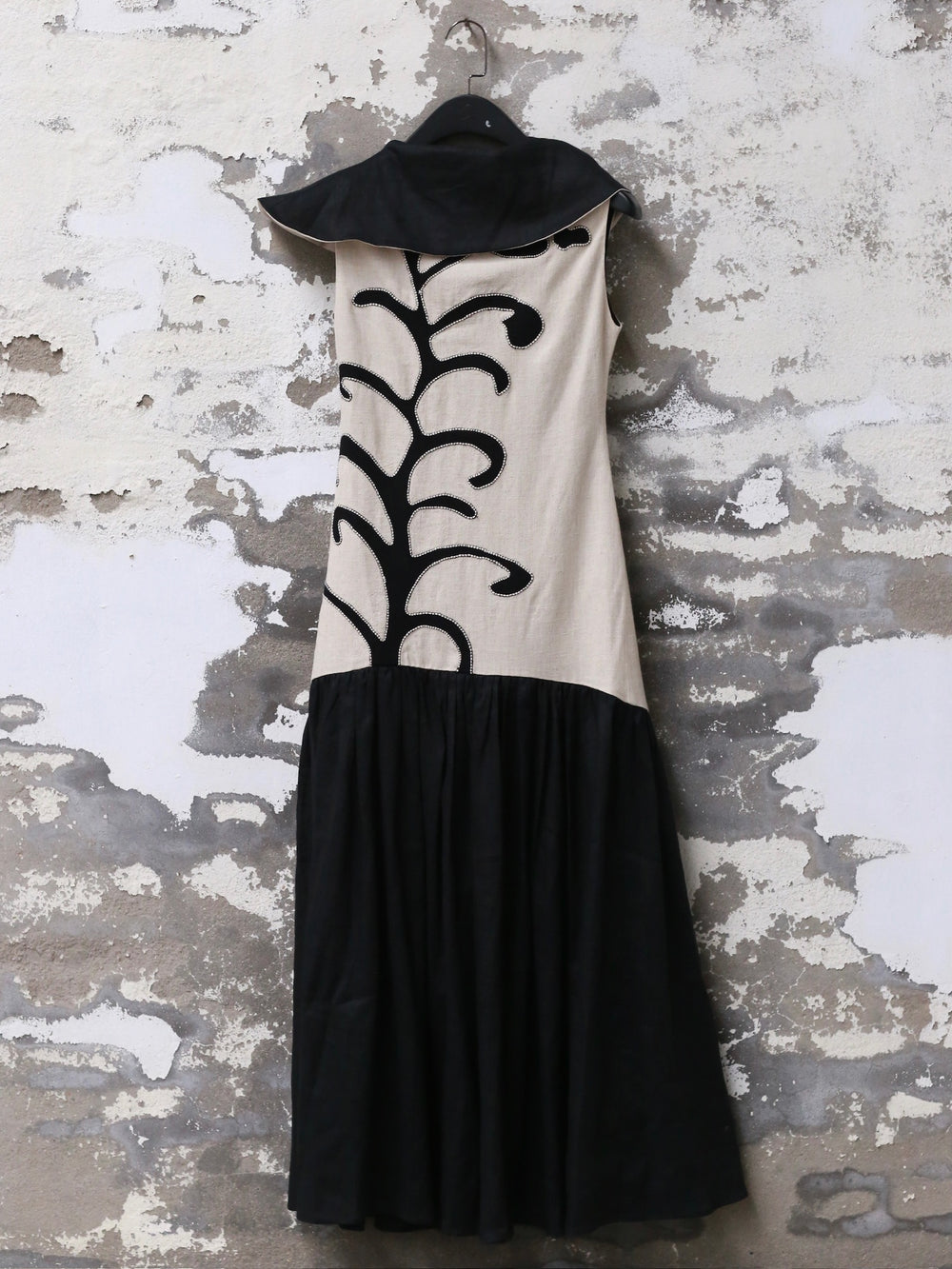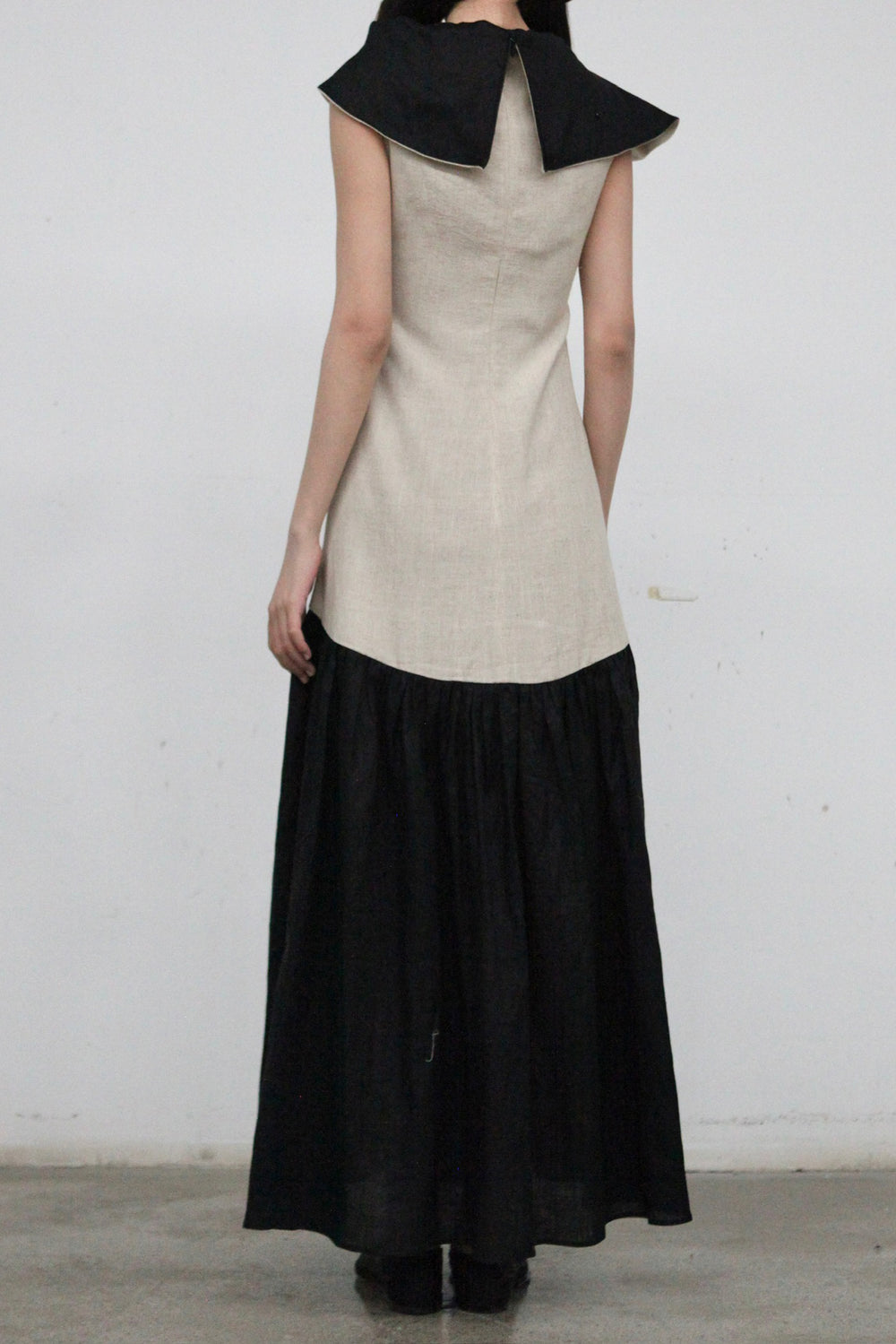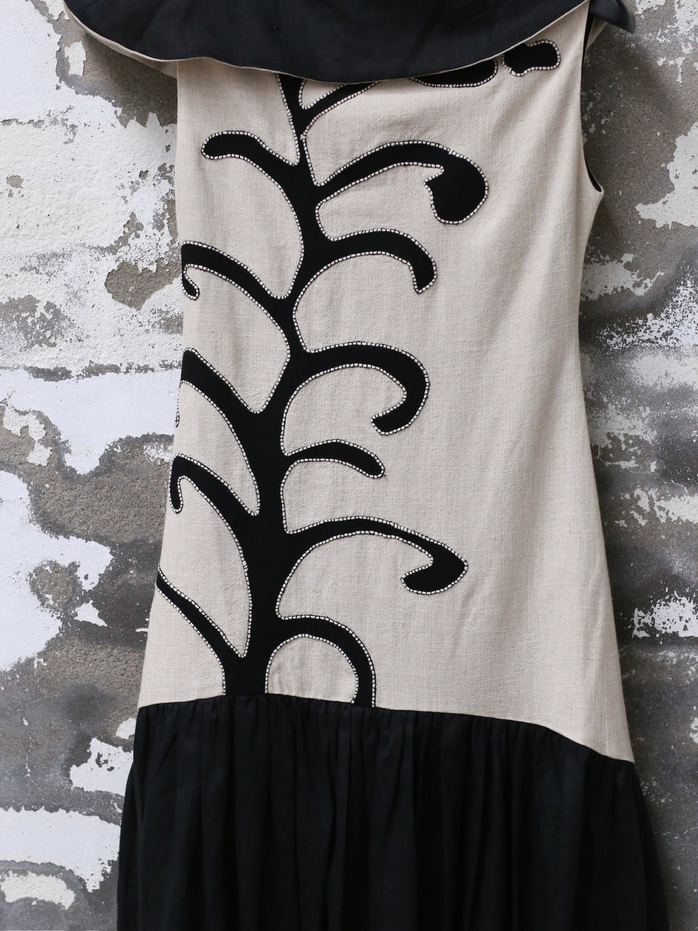 KINYAN LAM 25 Spring/Summer Hand-embroidered Wide Collar Dress KYL-V2DRS01B-HB Black and White