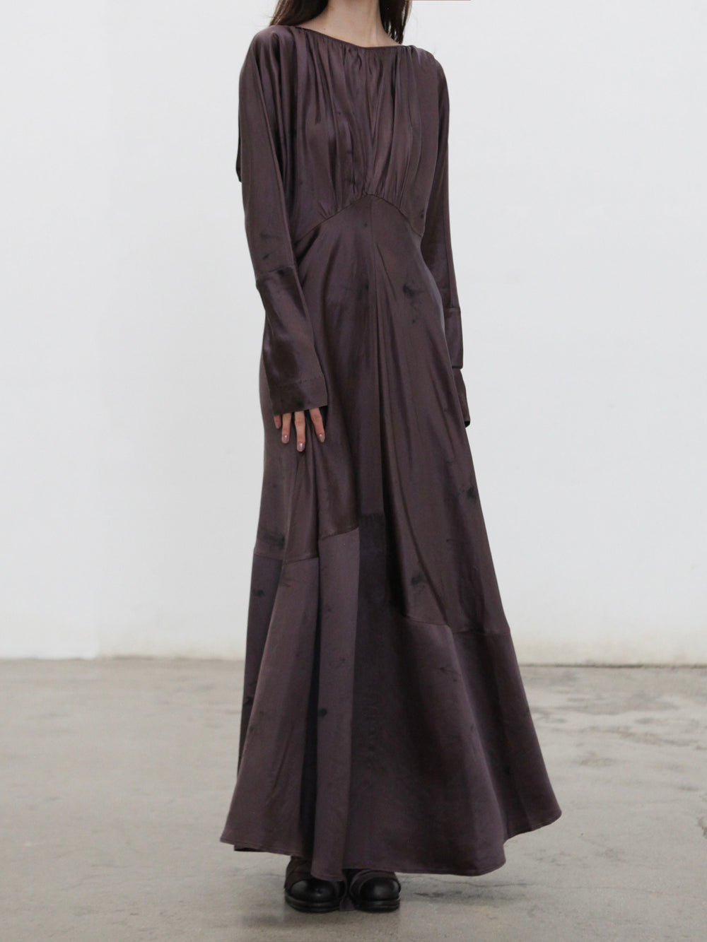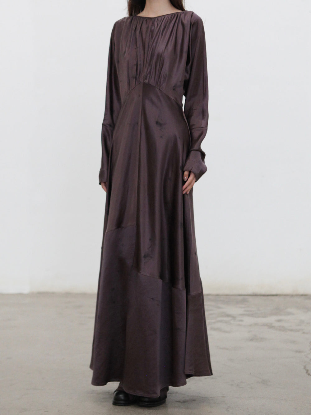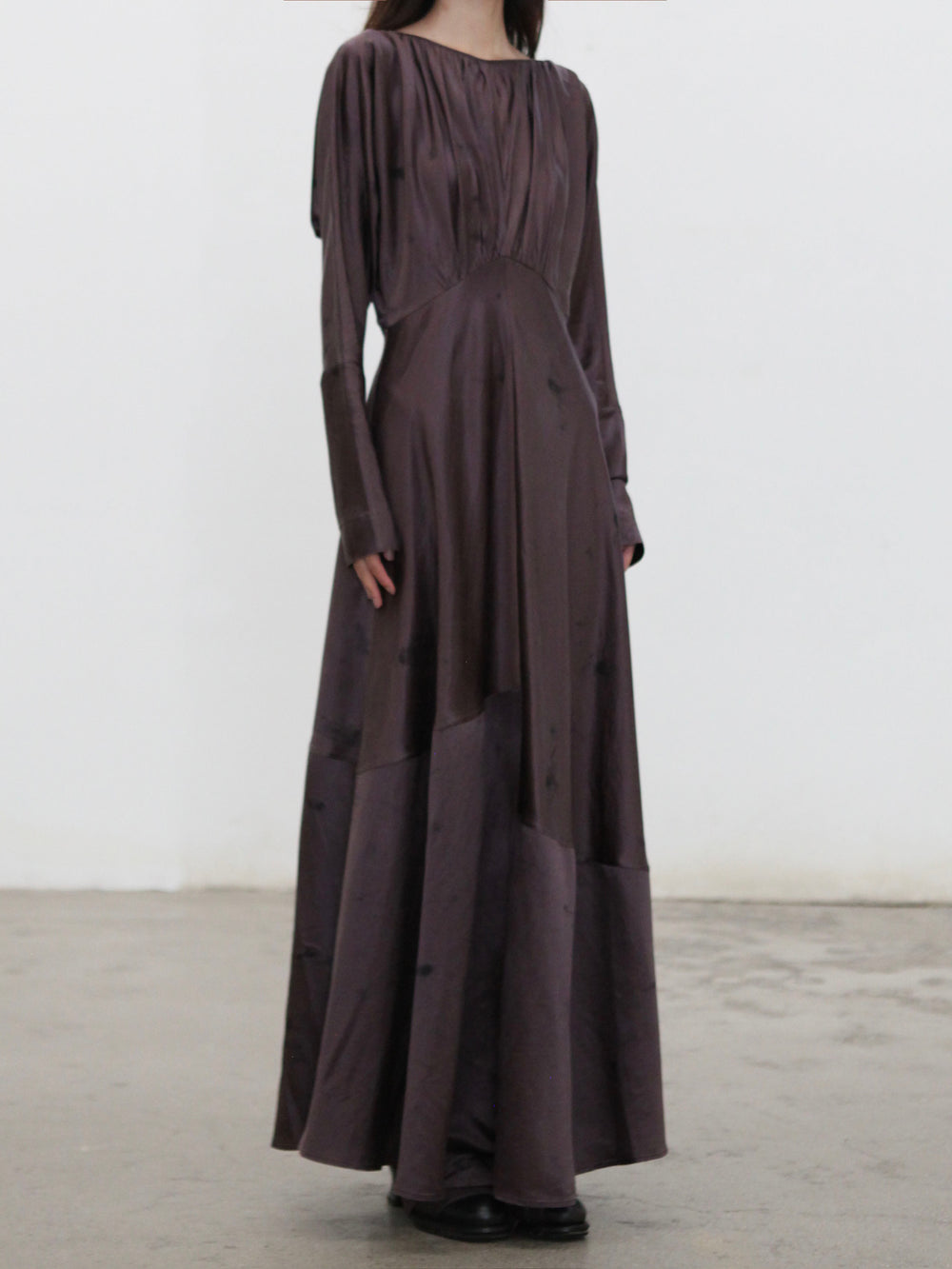 Mutedance 25 Autumn and Winter Waist Round Neck Splicing Dress MD-MD25FW58-purple