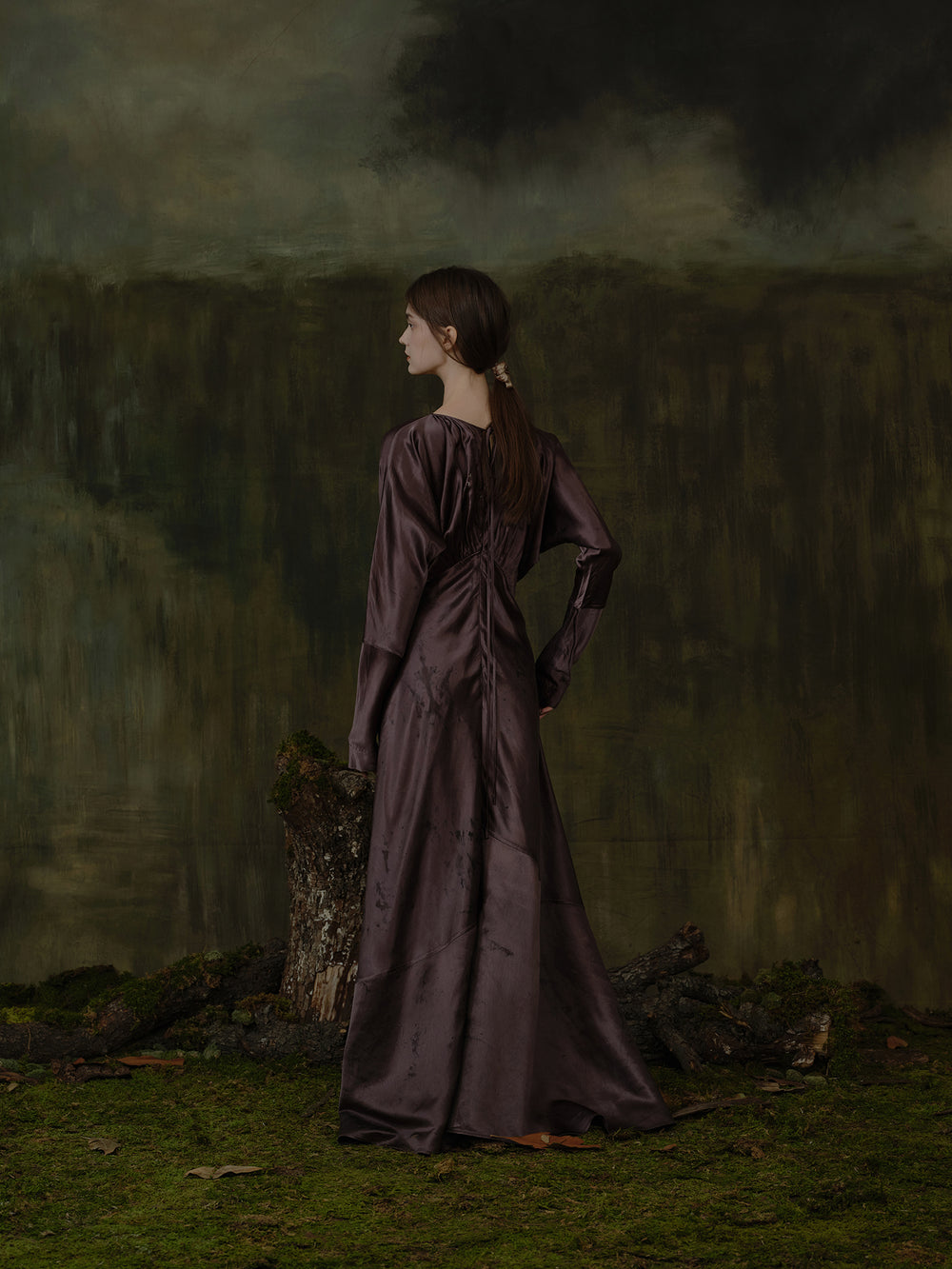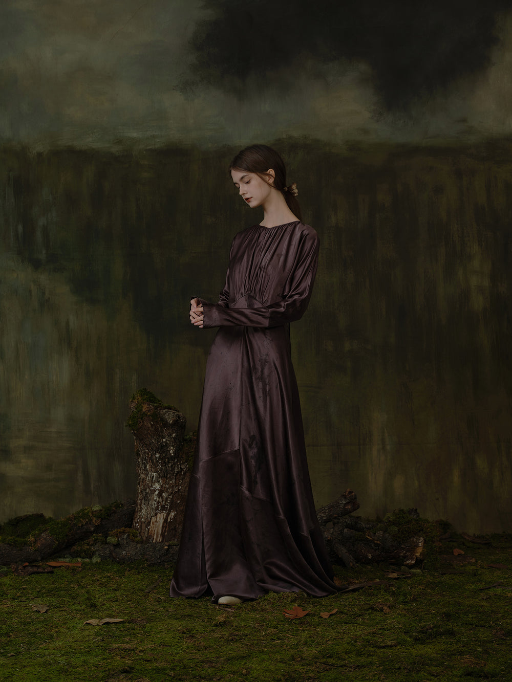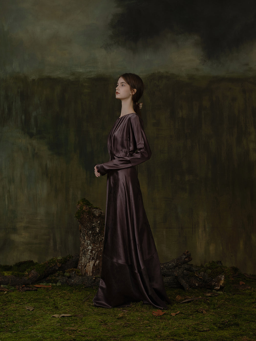 Mutedance 25 Autumn and Winter Waist Round Neck Splicing Dress MD-MD25FW58-purple