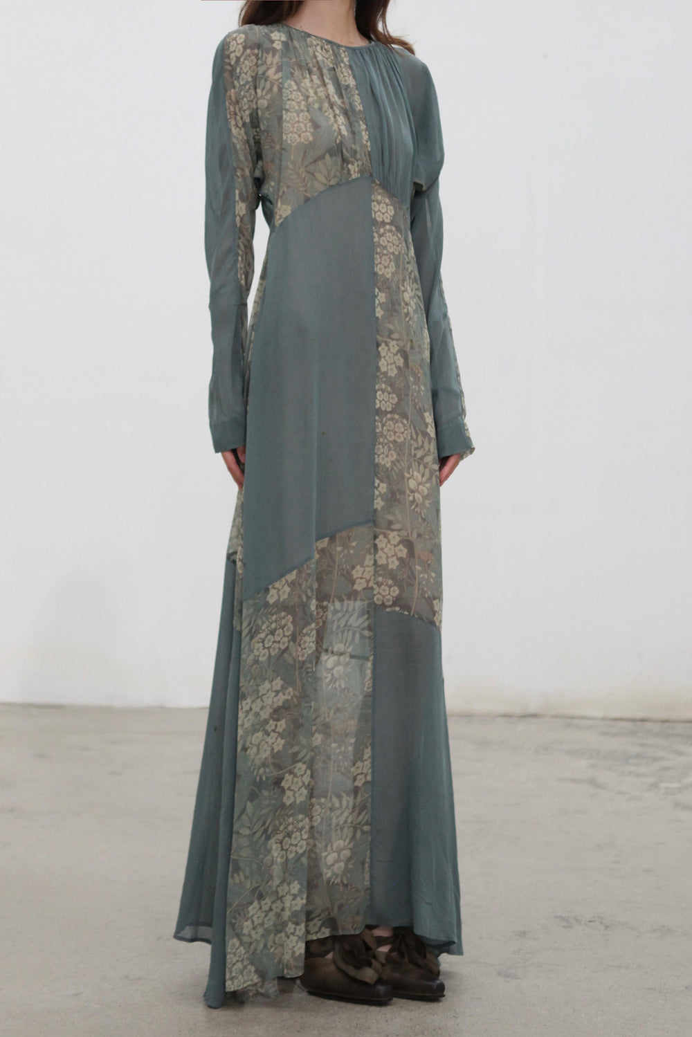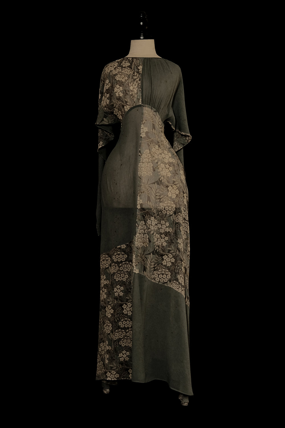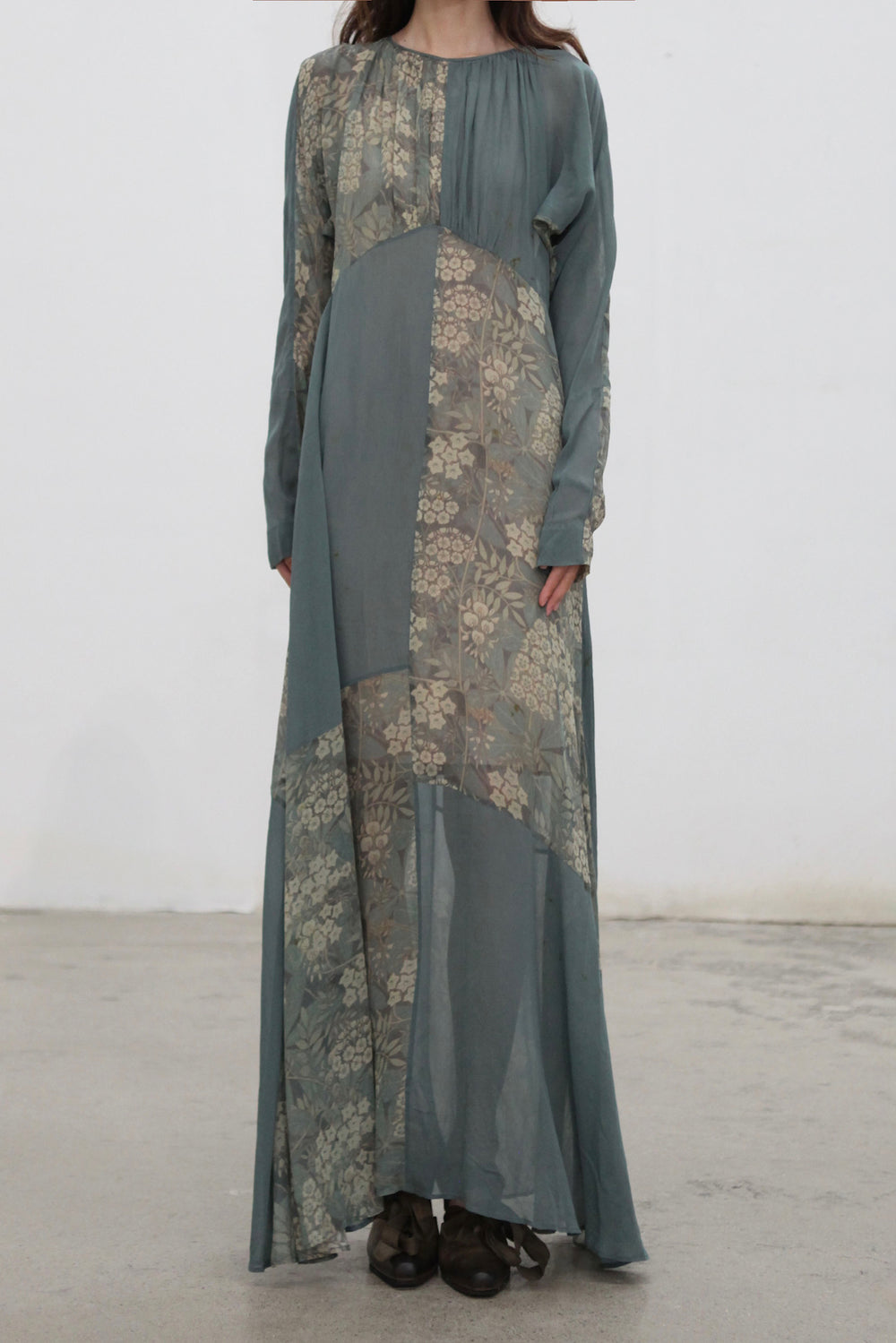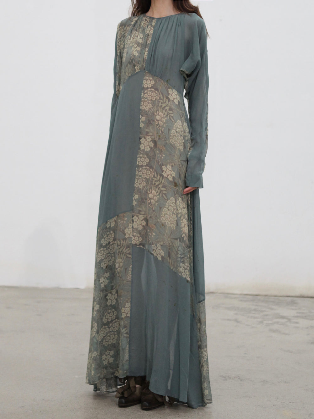 Mutedance 25 Autumn and Winter Waist Round Neck Splicing Dress MD-MD25FW60-green (MD25FW58)