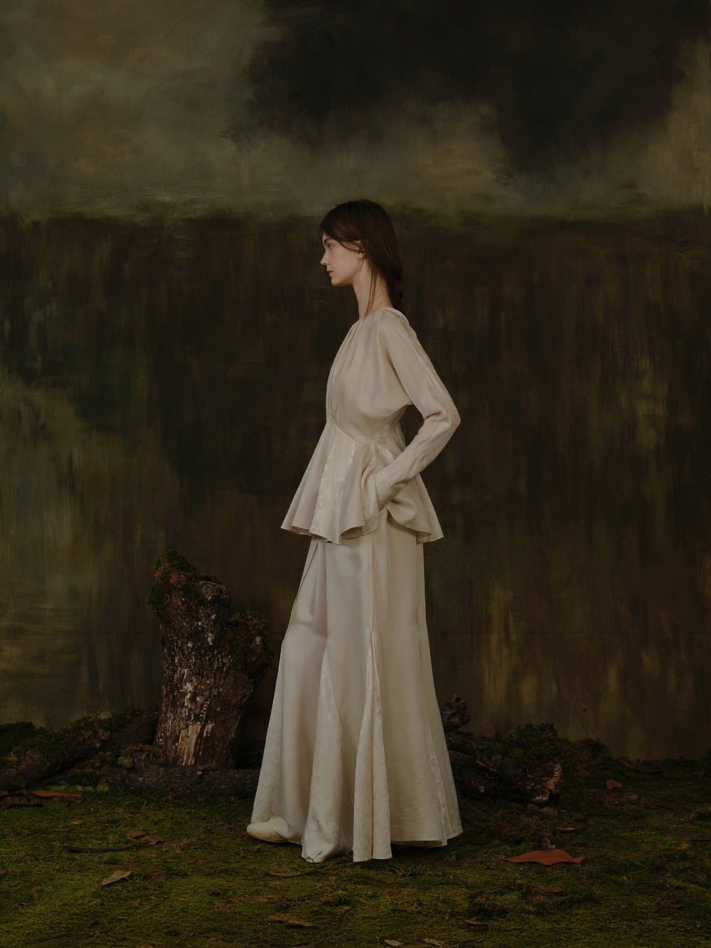 Mutedance 25 Autumn/Winter Round Neck Tunic Shirt Flower Dye MD-MD25FW56-beige (MD25FW53)