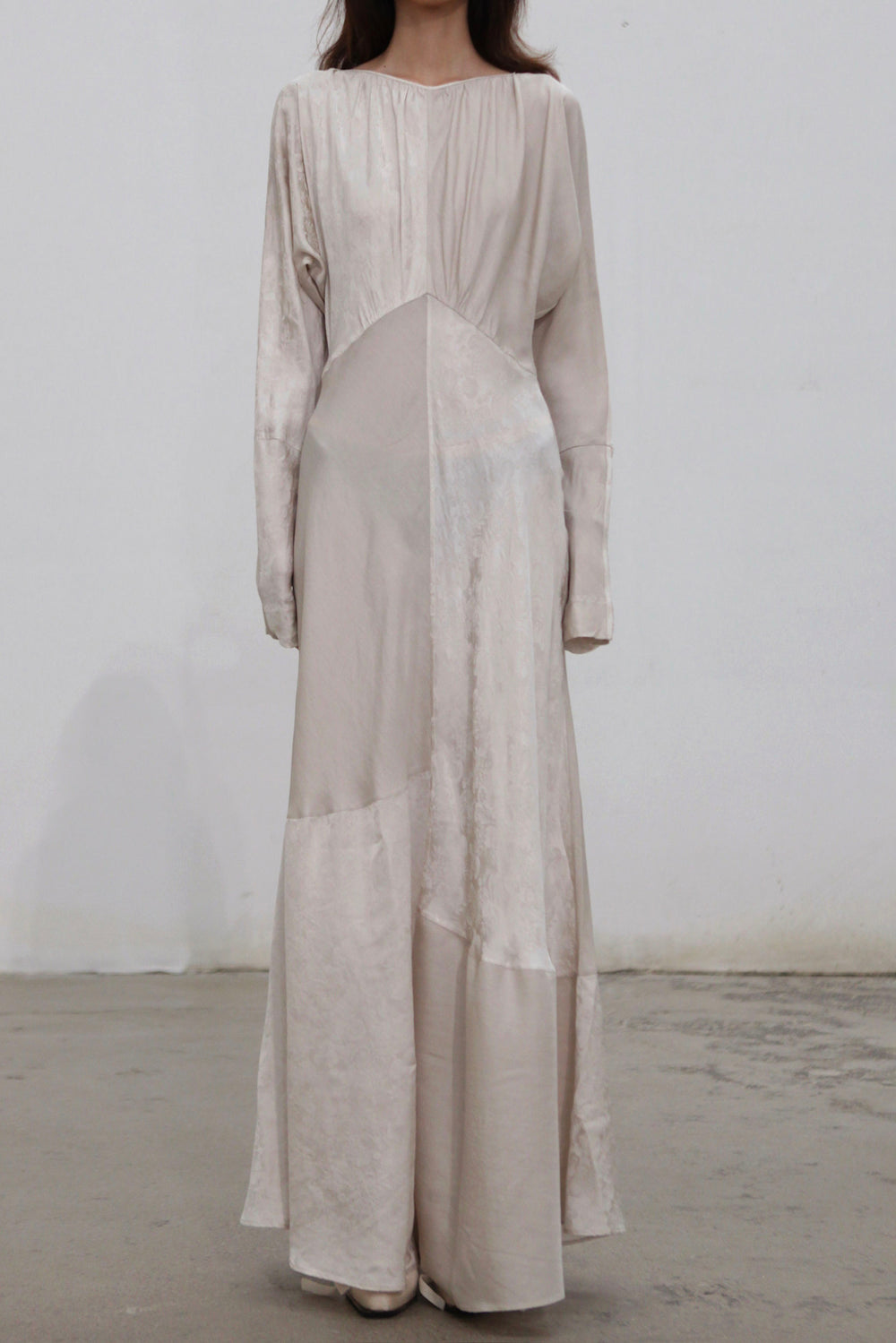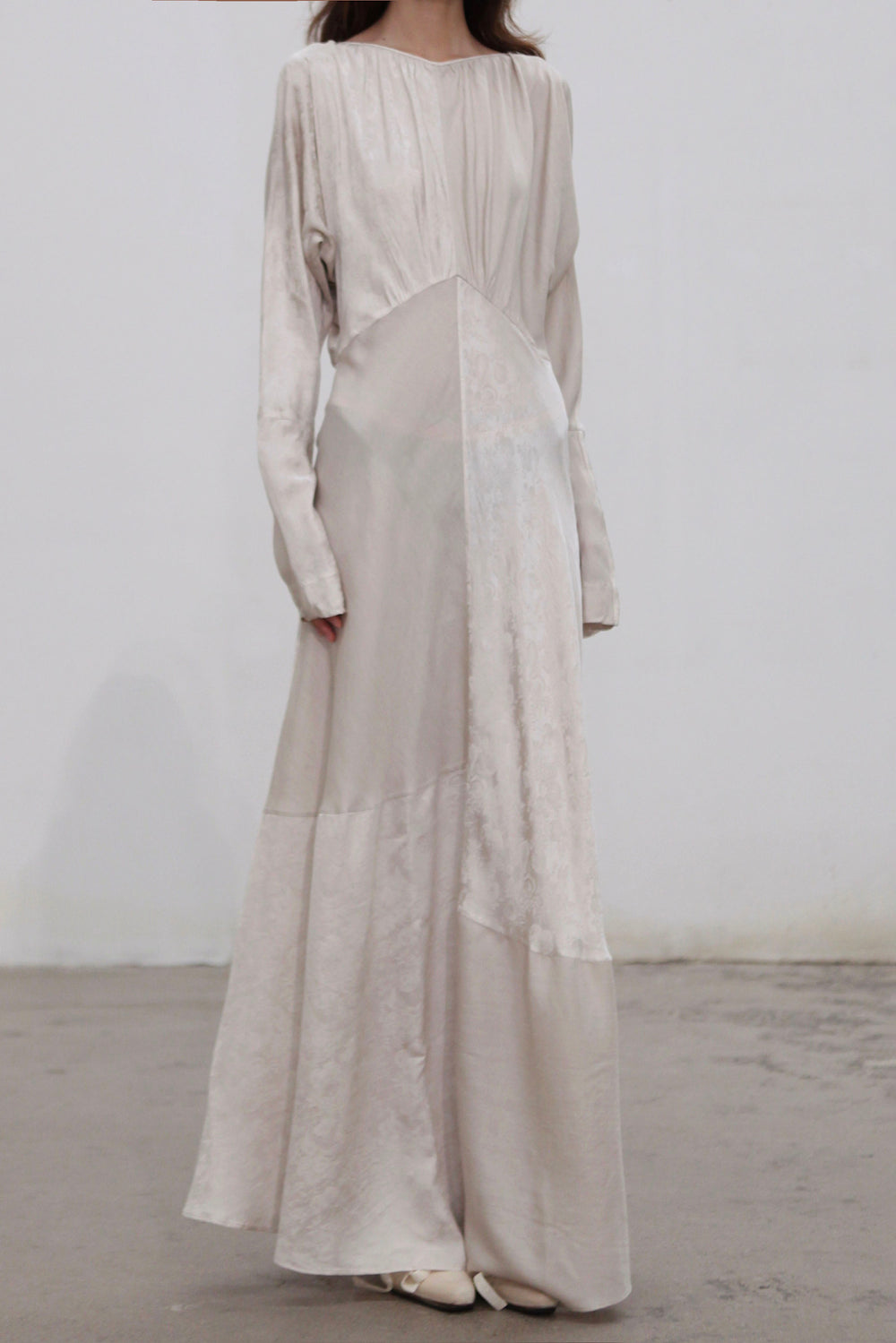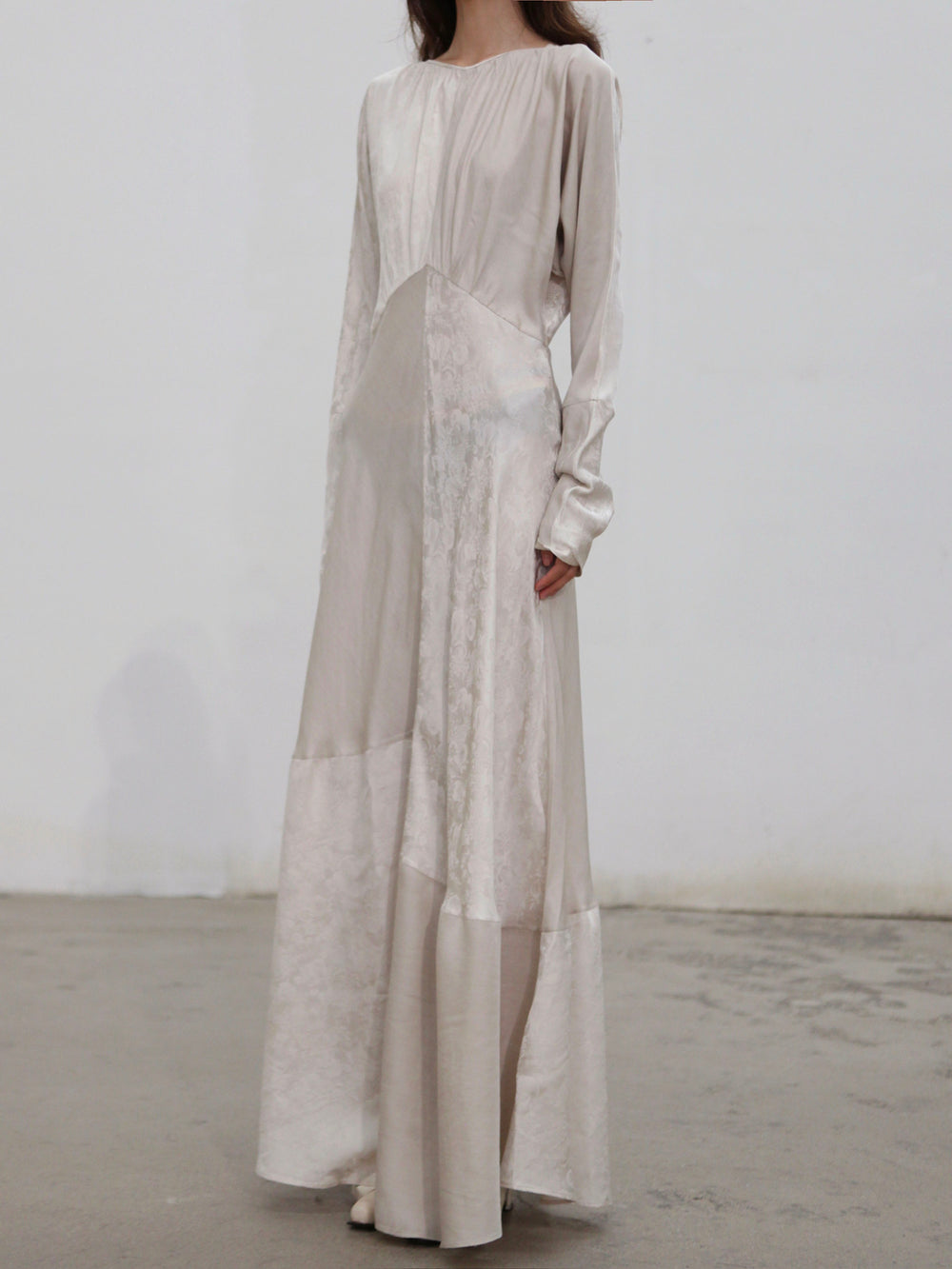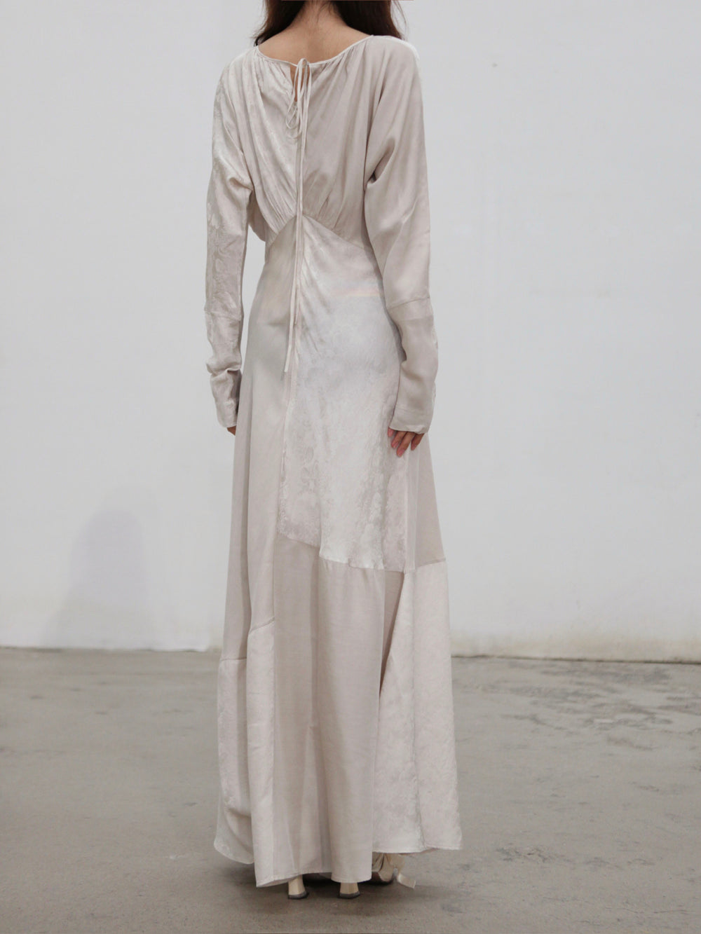 Mutedance 25 Autumn/Winter Waist Round Neck Splicing Dress MD-MD25FW59-beige (MD25FW58)