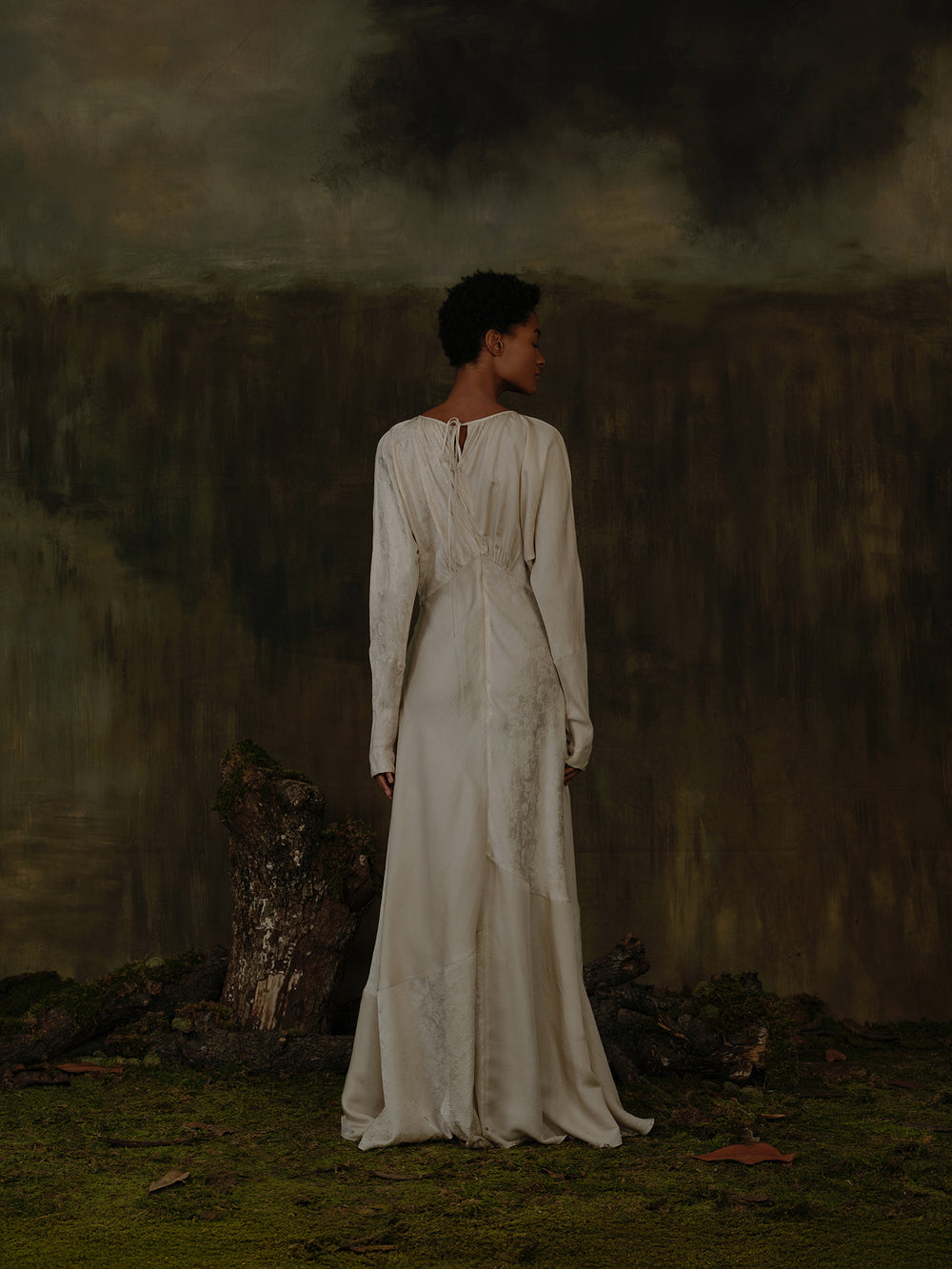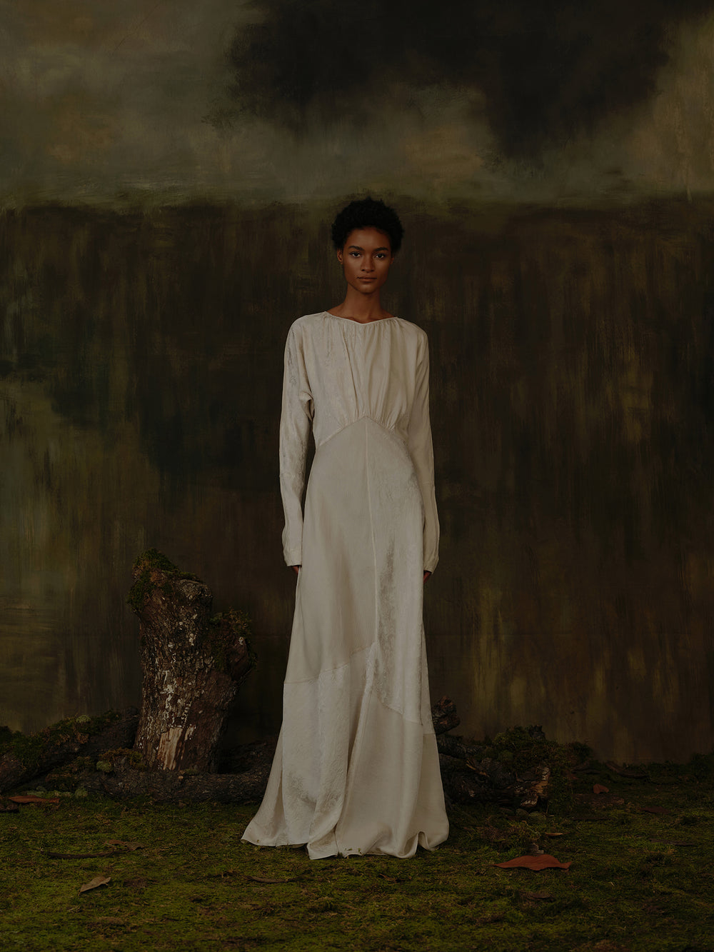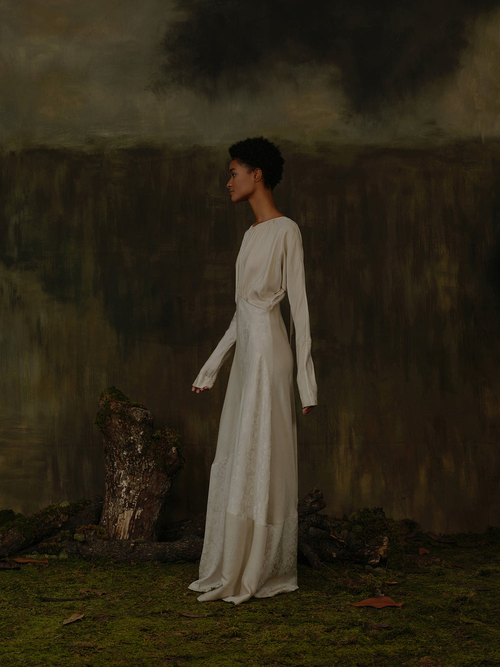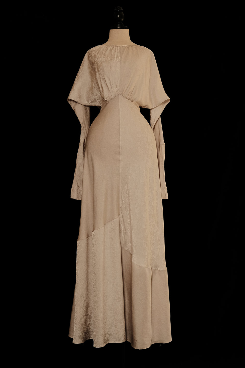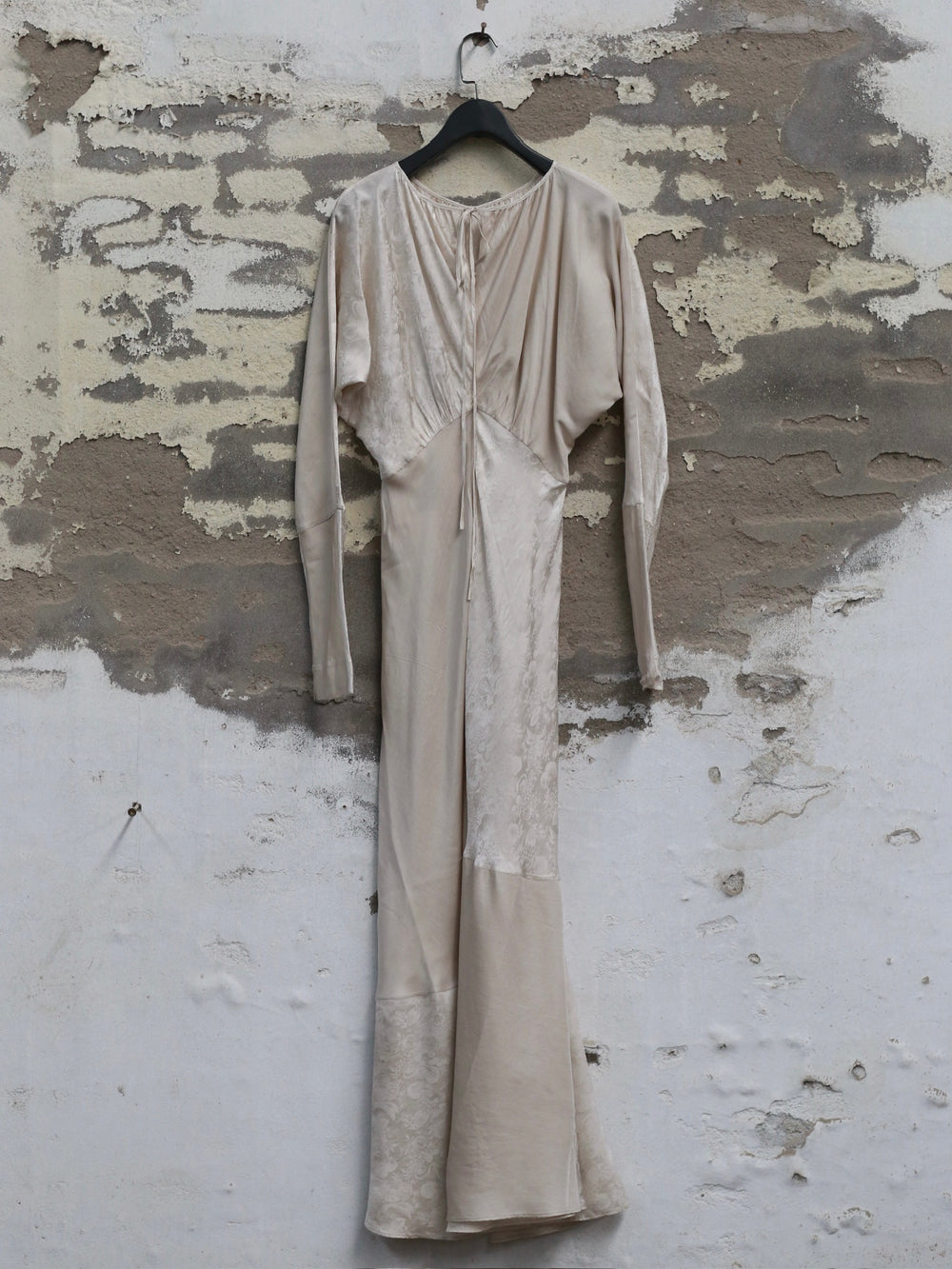 Mutedance 25 Autumn/Winter Waist Round Neck Splicing Dress MD-MD25FW59-beige (MD25FW58)