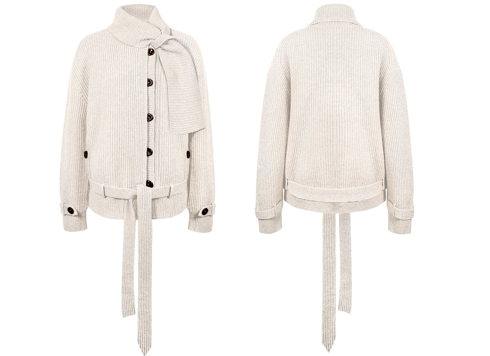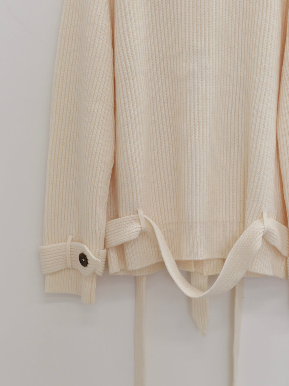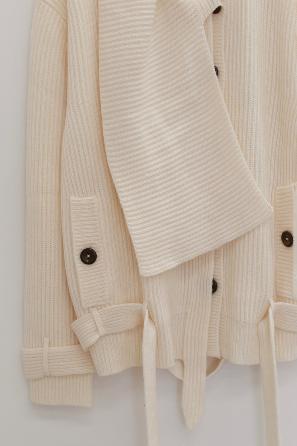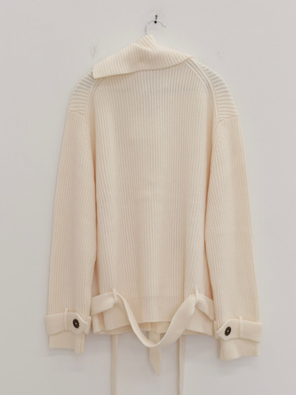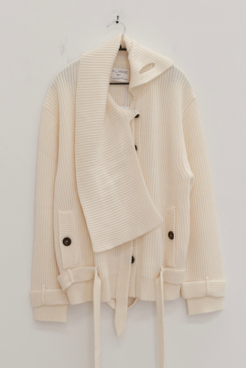 NAN KNITS 25 Autumn and Winter Ribbon Collar Slant-Breasted Jacket NAN-N25AWCOA07WHI-BAI White