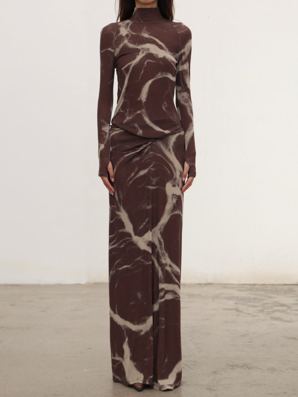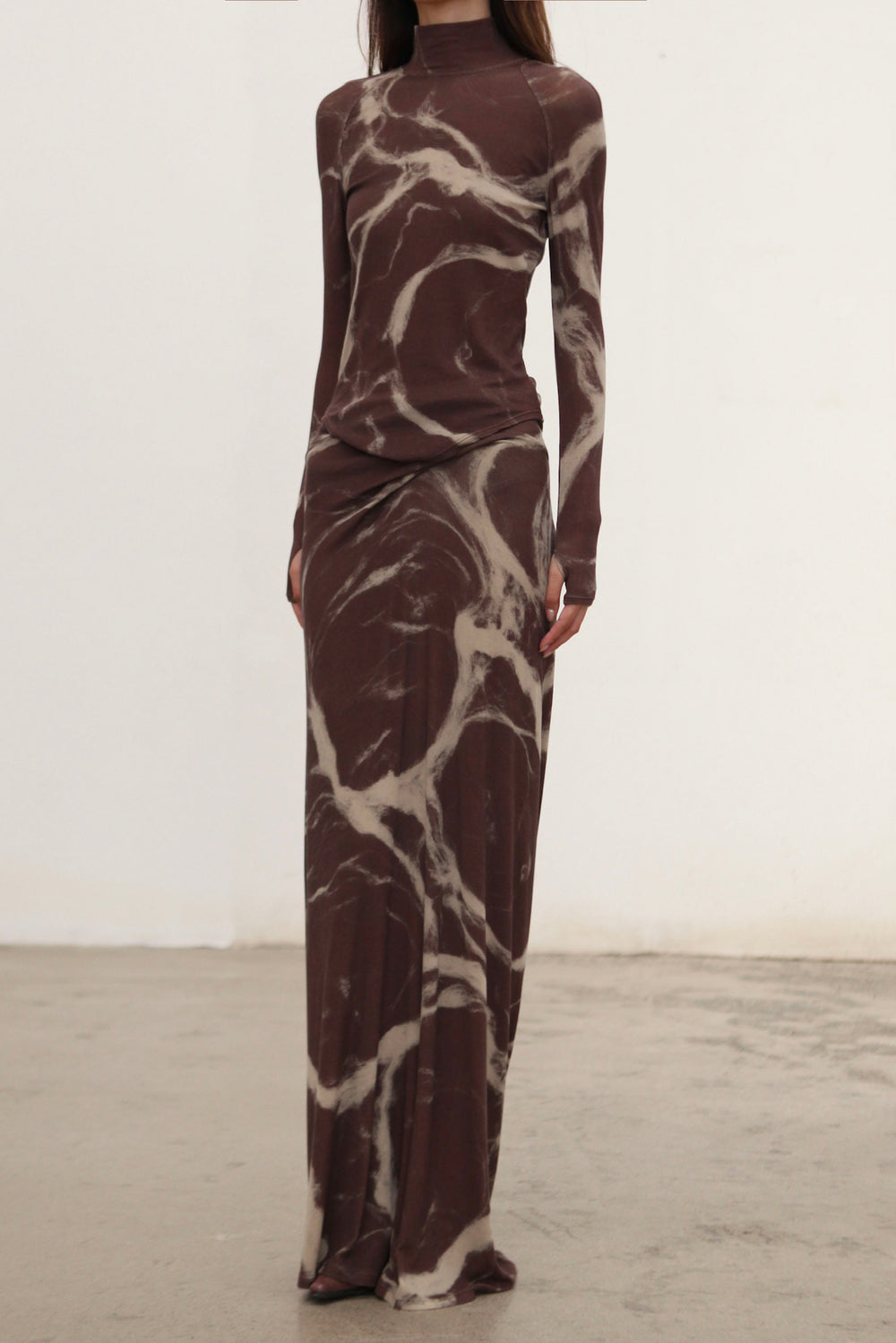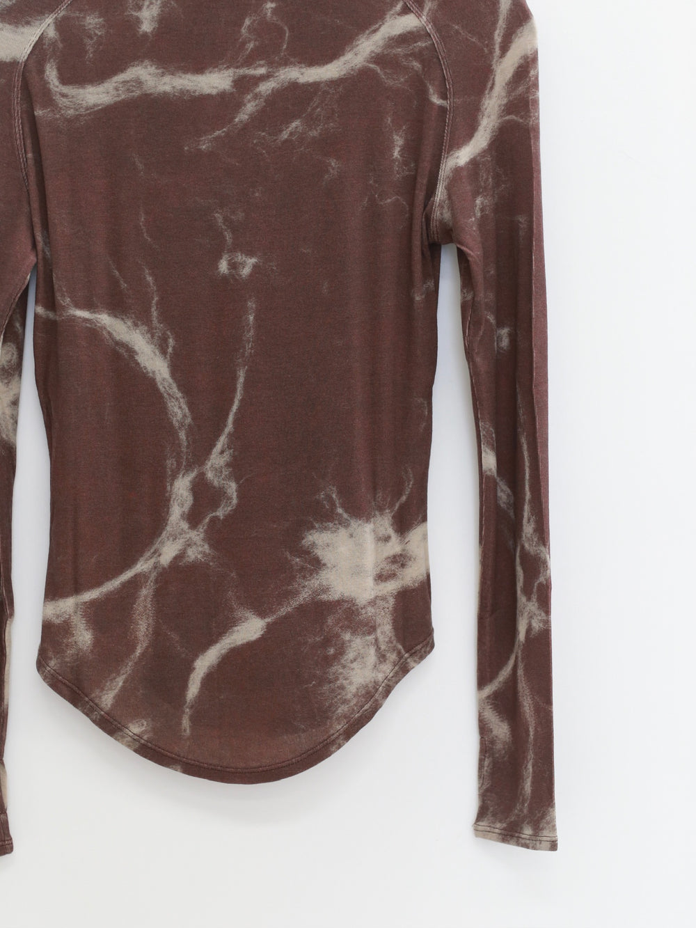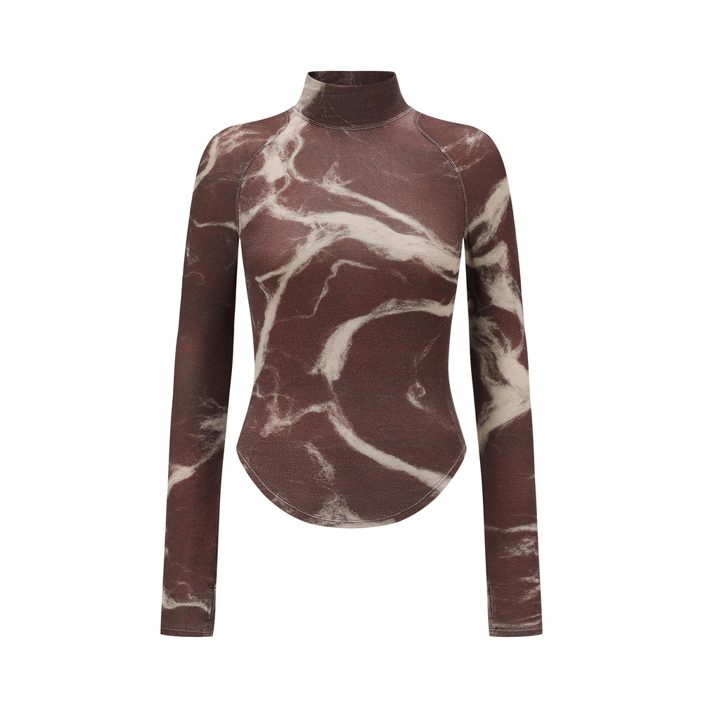 OUDE WAAG 25 Autumn and Winter Raglan Sleeve Ribbed Top OW-OW-25AW-TP07-ZHYH Brown and Gray Print