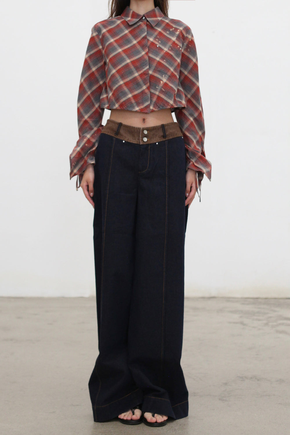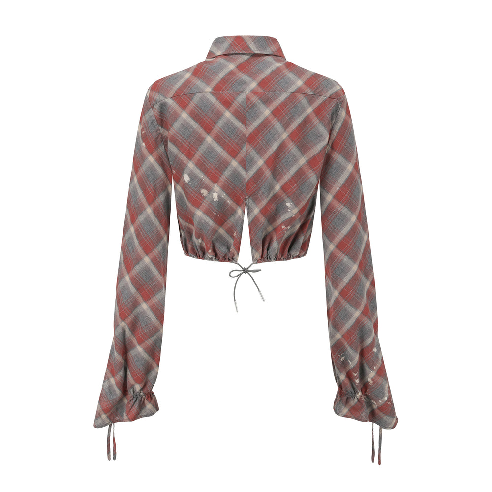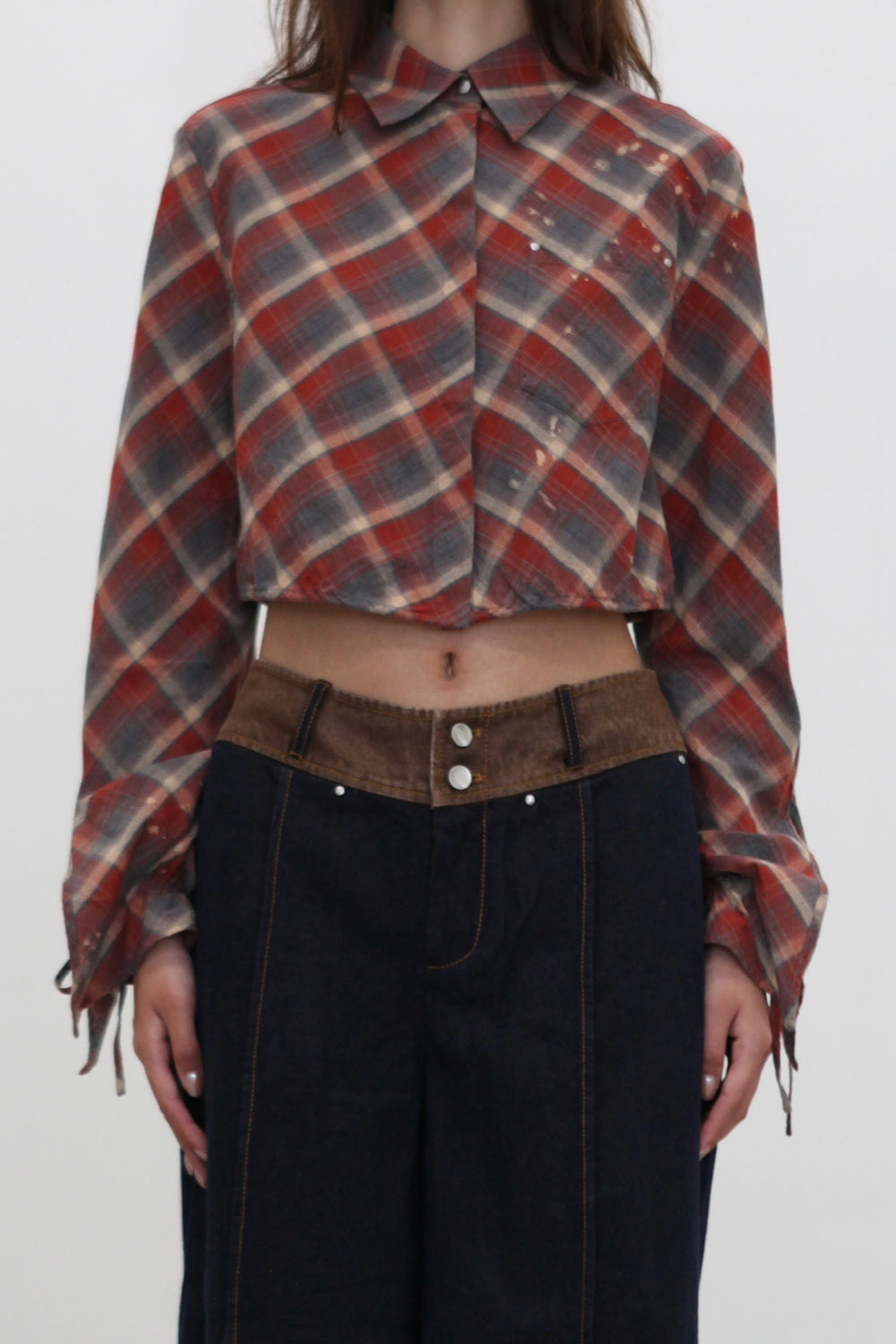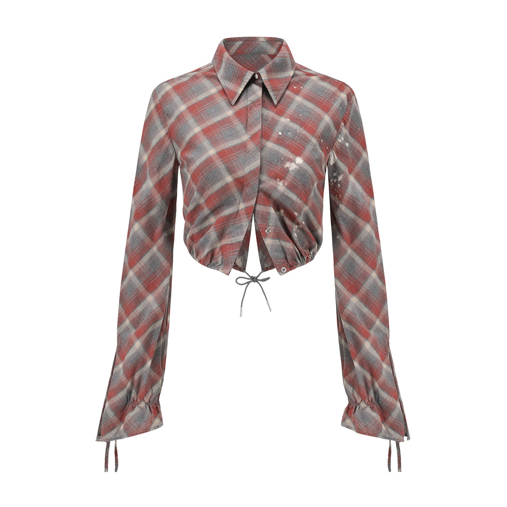 OUDE WAAG 25 Early Autumn Plaid Short Shirt OW-OW-25PF-ST01C1BU062-LHGW (BU062 Blue and Red Plaid)