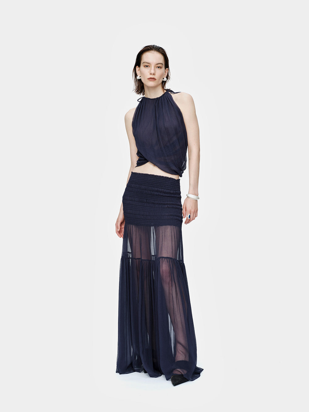 OUDE WAAG 26 Early Spring Floral Bud Silk Vest OW-26RS-TP01S1-BU690 Dark Blue