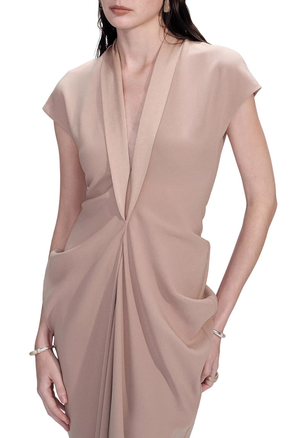 OUDE WAAG Spring/Summer 2026 V-neck draped dress OW-OW-26SS-DS21-FM (PK230 PINK MIST)