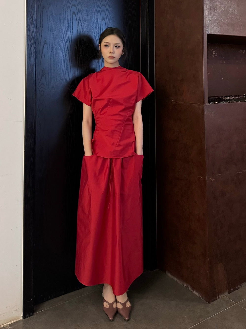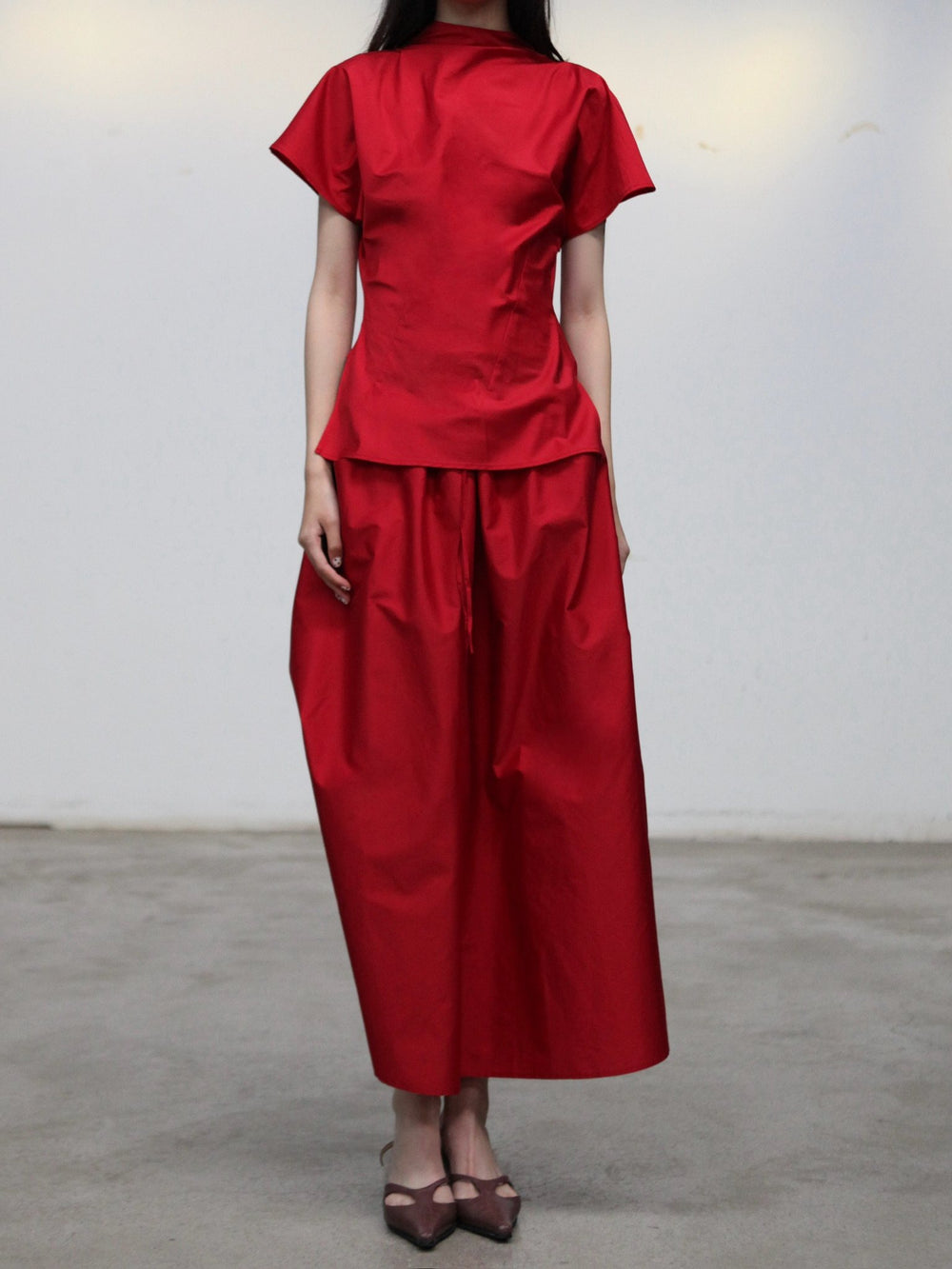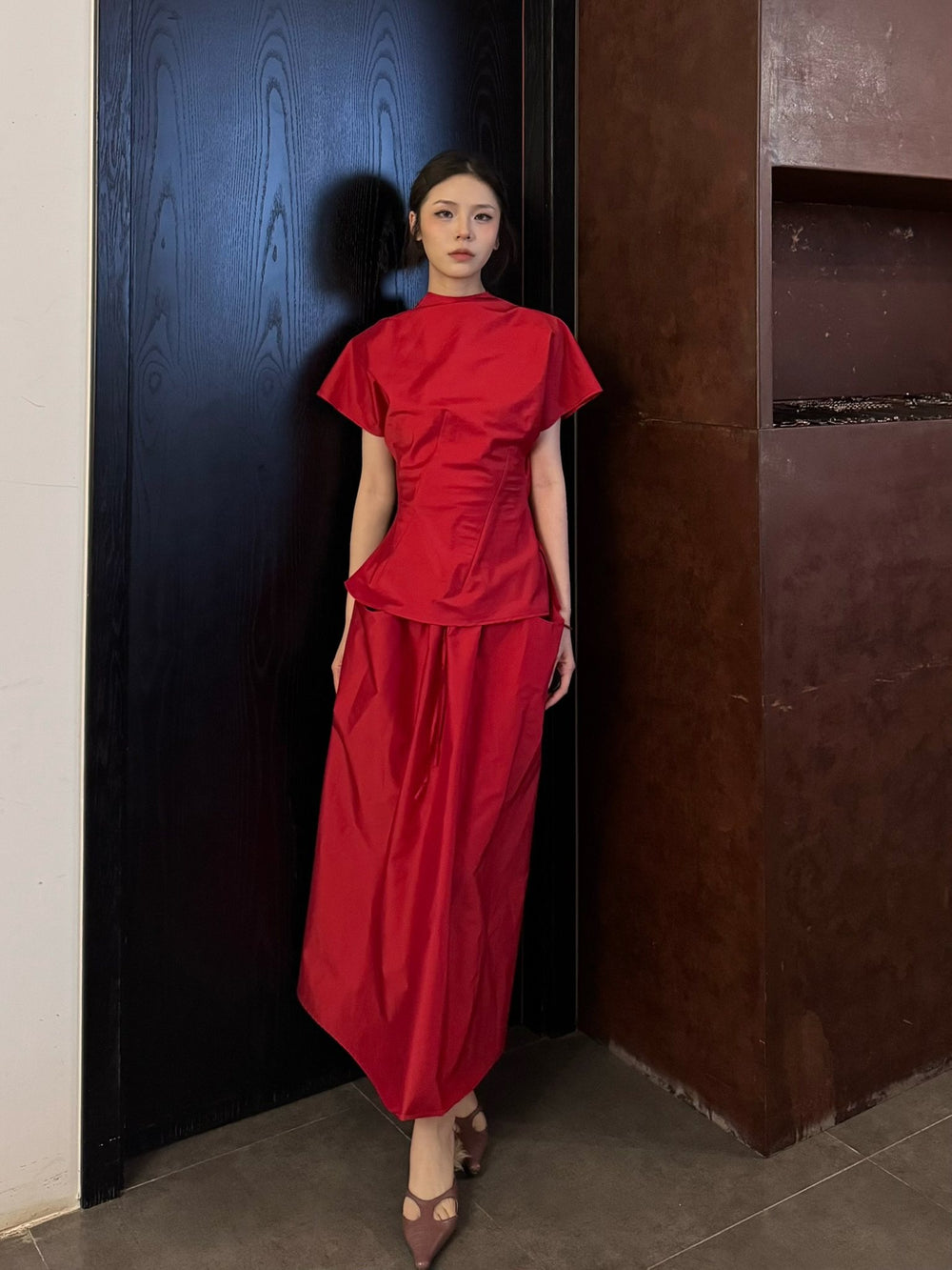 SAMUEL GUI YANG Spring/Summer 2026 SU Midi Skirt SGY-SS26CSK02-1-1-LIPSTICK RED
