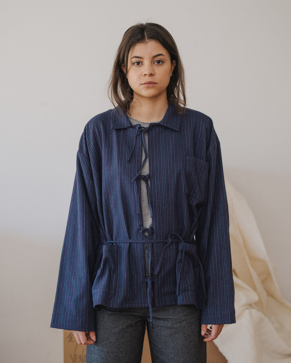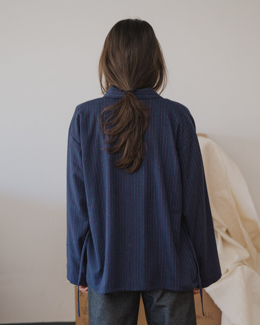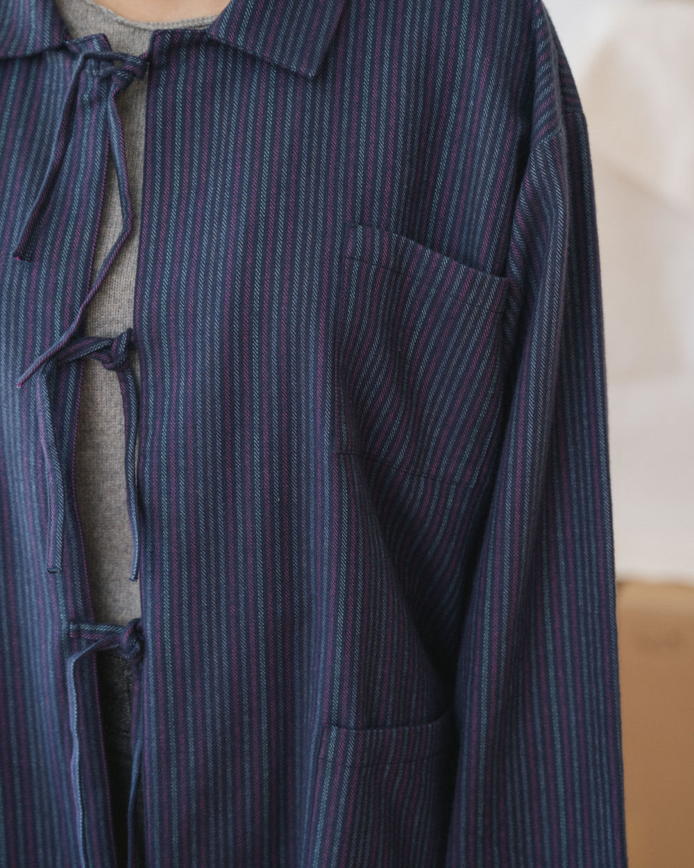 BASERANGE Fall/Winter 2025 Drawstring Shirt, France. (BAS-TSLI-FLP-WI25-PURPLE STRIPE)