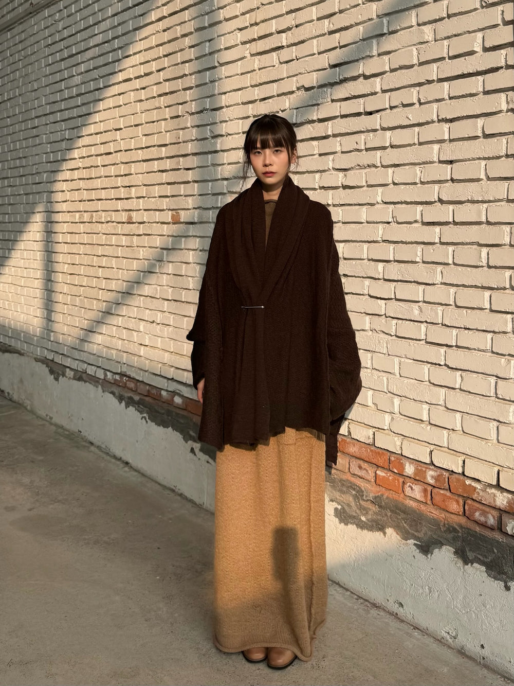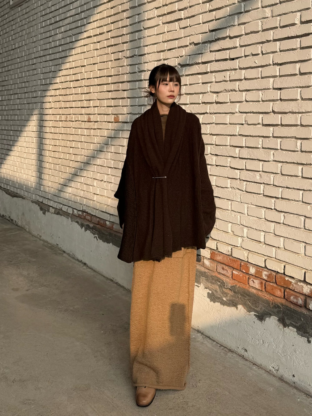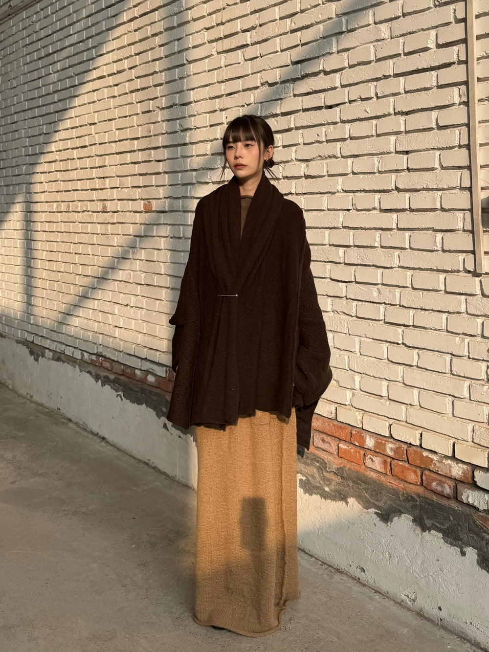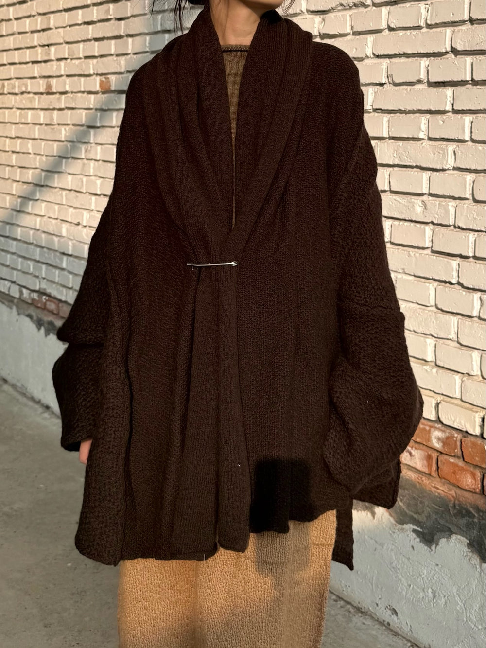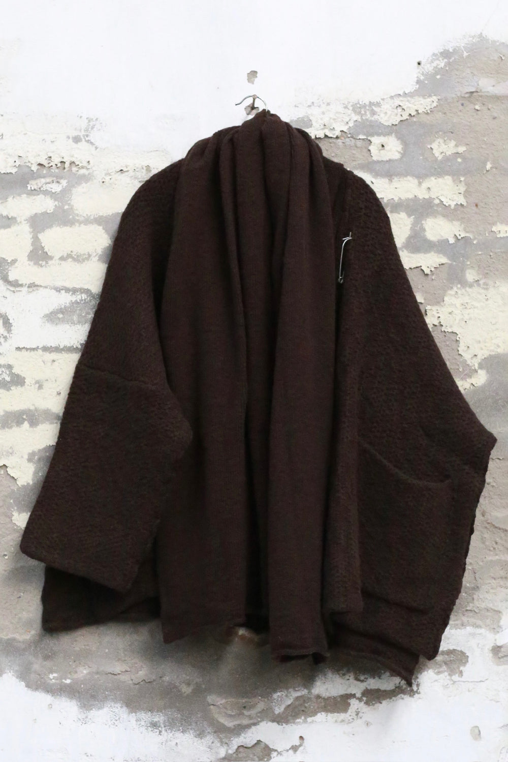 Daniel Andresen Fall/Winter 2025 Short Scarf-Shaped Thick Knit Cardigan Collection, Virgin Wool (DA-grass-chocolate)