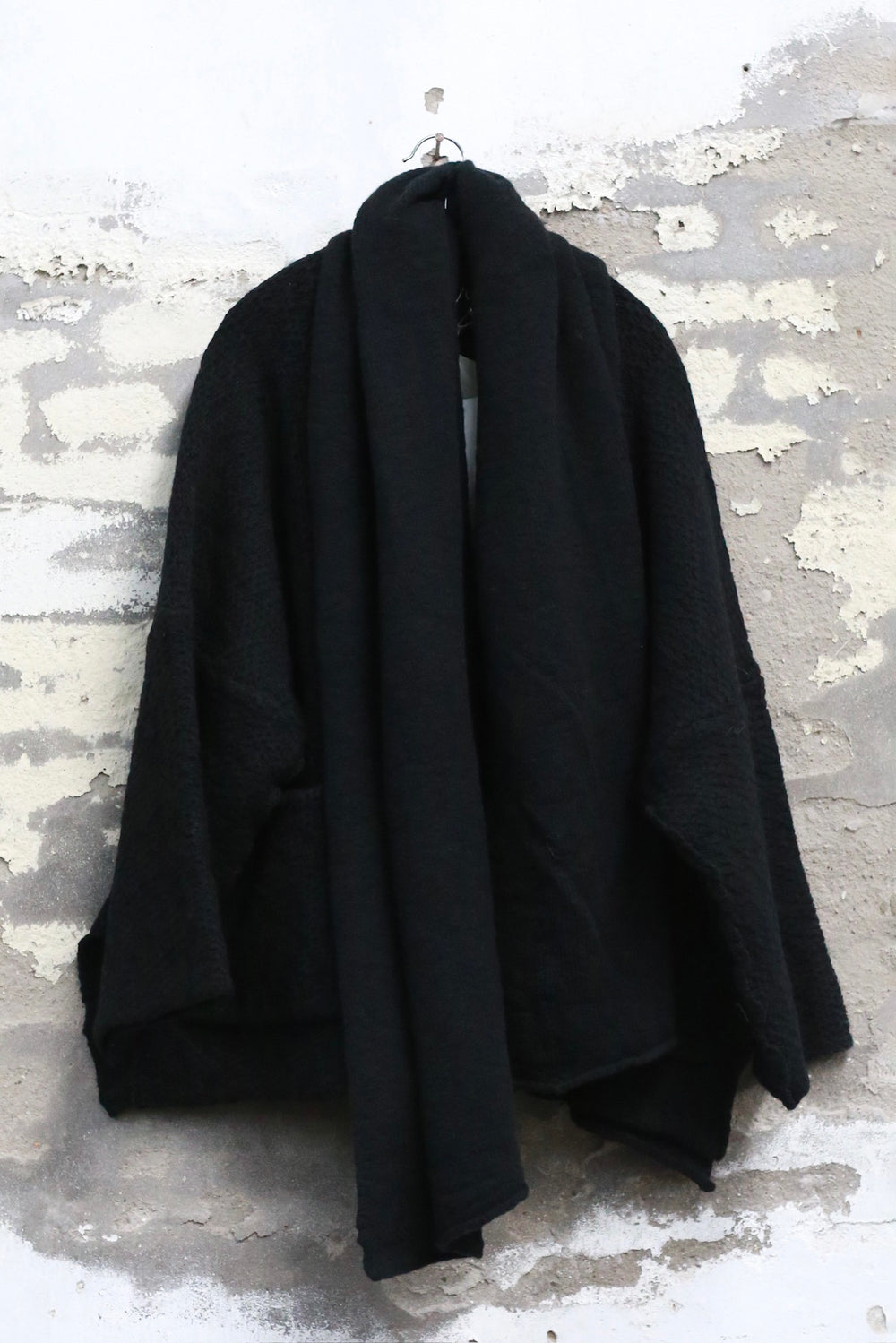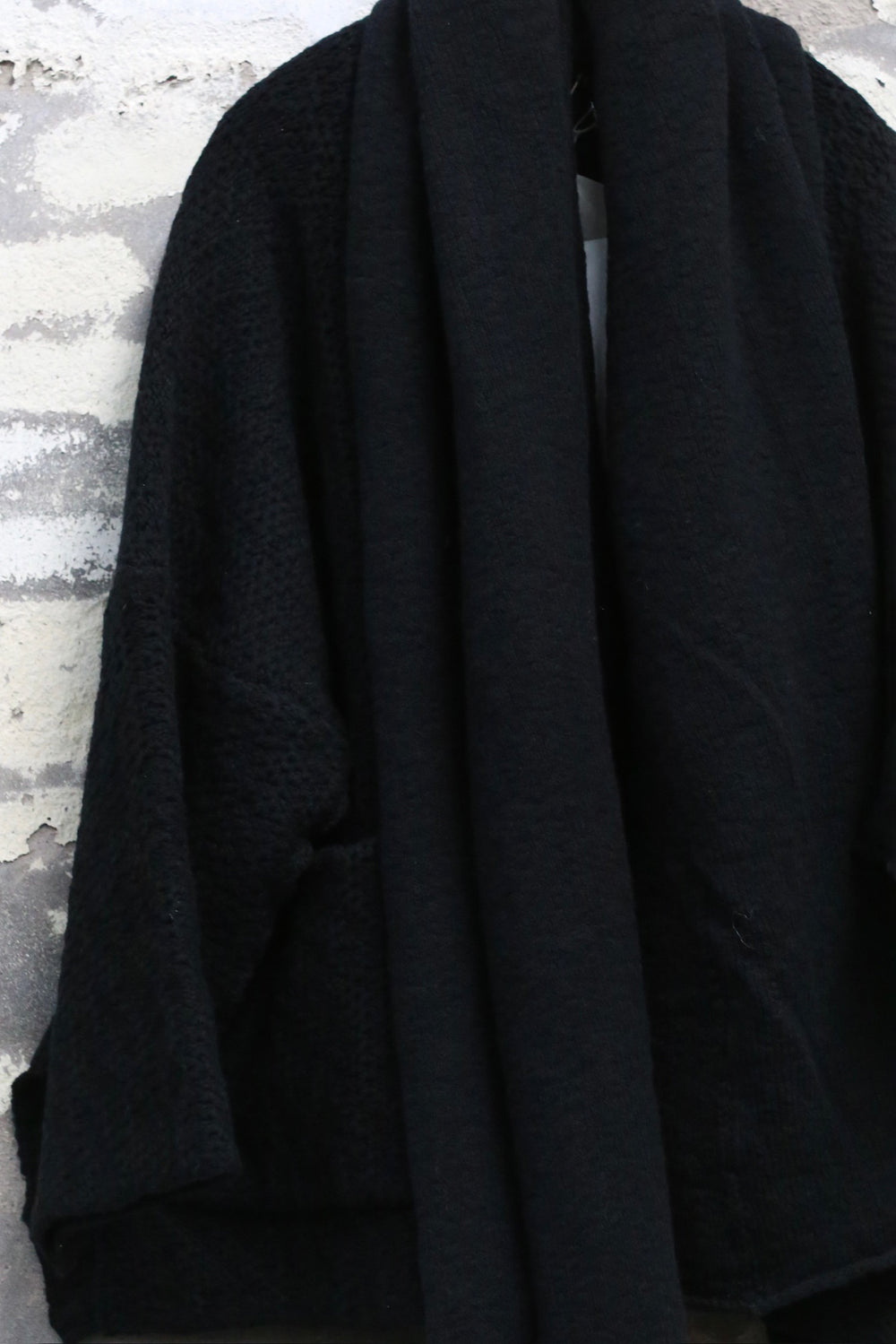 Daniel Andresen Fall/Winter 2025 Short Scarf-Style Thick Knit Cardigan Collection, Virgin Wool (DA-grass-black)