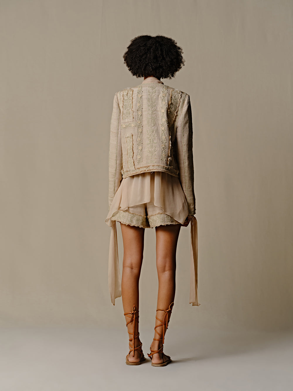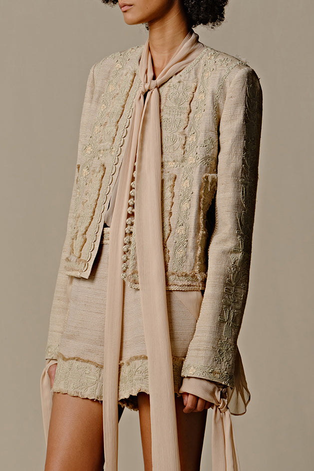 INTO THE EAST 25 Autumn/Winter Tussah Silk Embroidered Applique Buttoned Suit ITE-E1DGSS002SD22SU-SHA Sand
