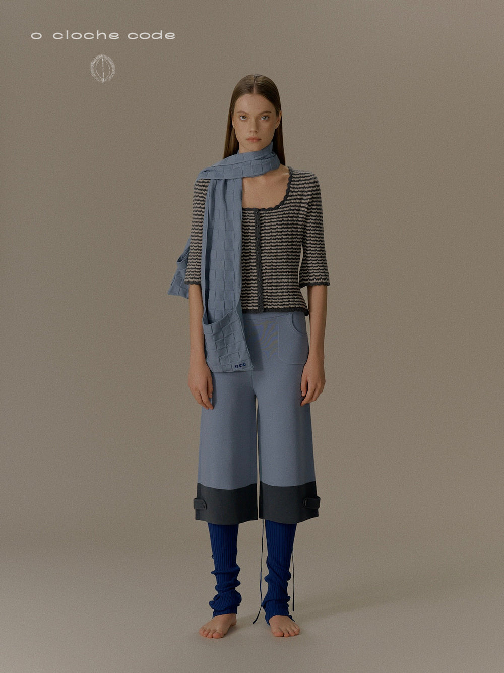 o cloche code 25 Fall/Winter checkered pocket scarf OCC-OH01S901-HL PASTEL grey-blue