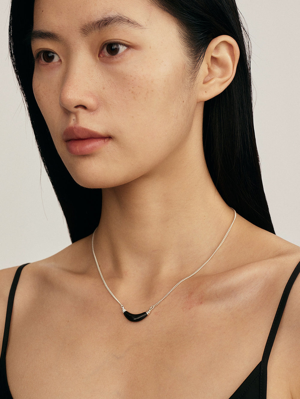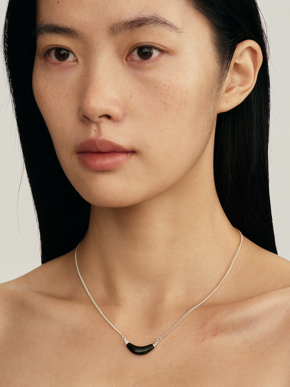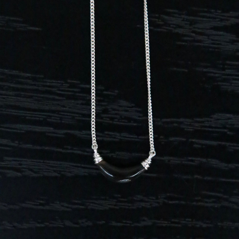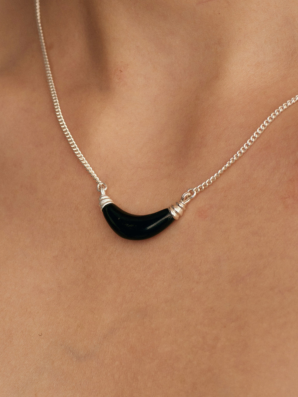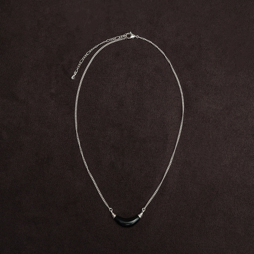 OLIO E ACETO Sterling Silver Black/White Ox Horn Crescent Pendant Necklace OLIO-OO-26SS-JN02H1BL900-HEI (BL900 Black)