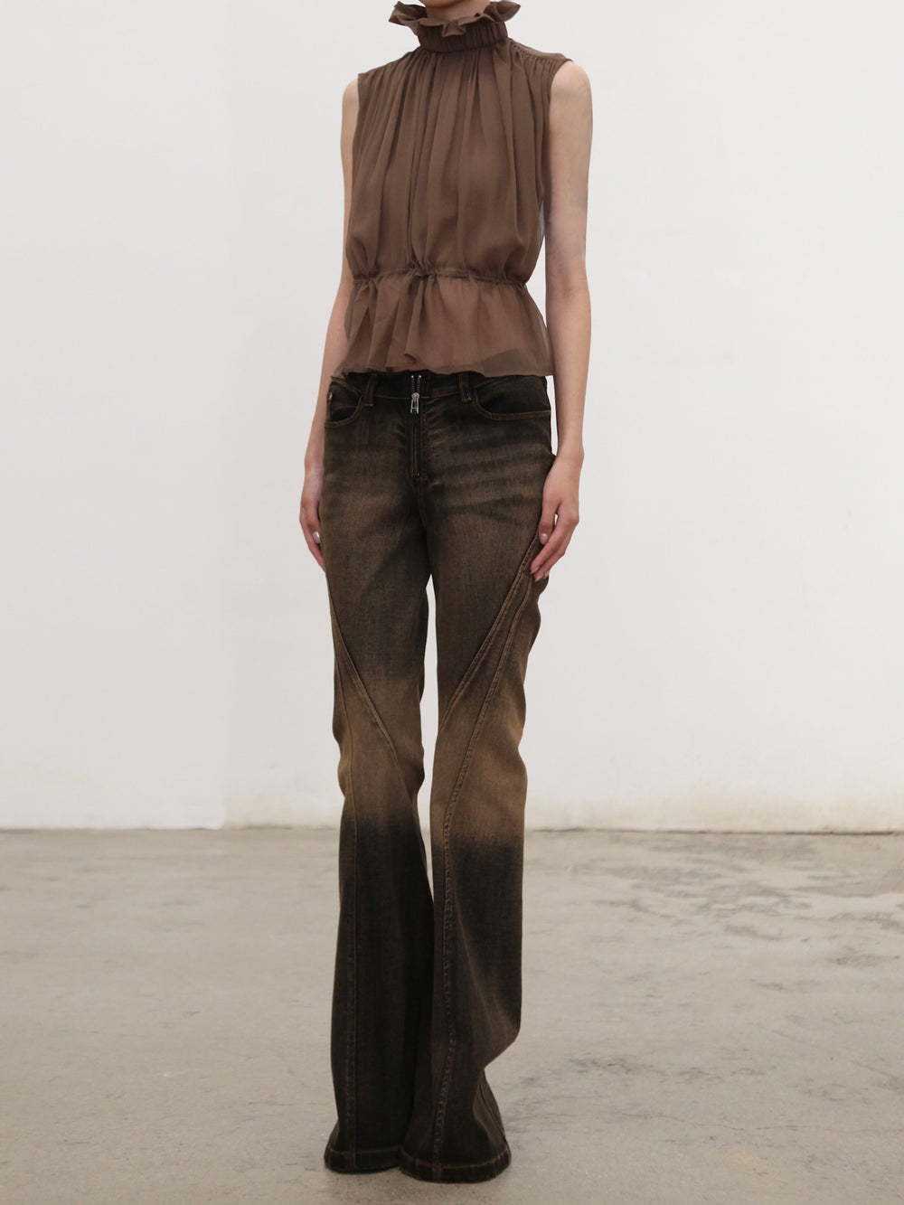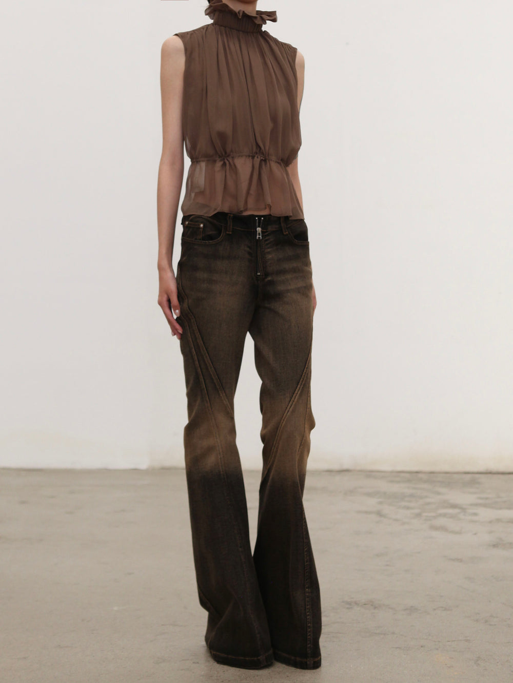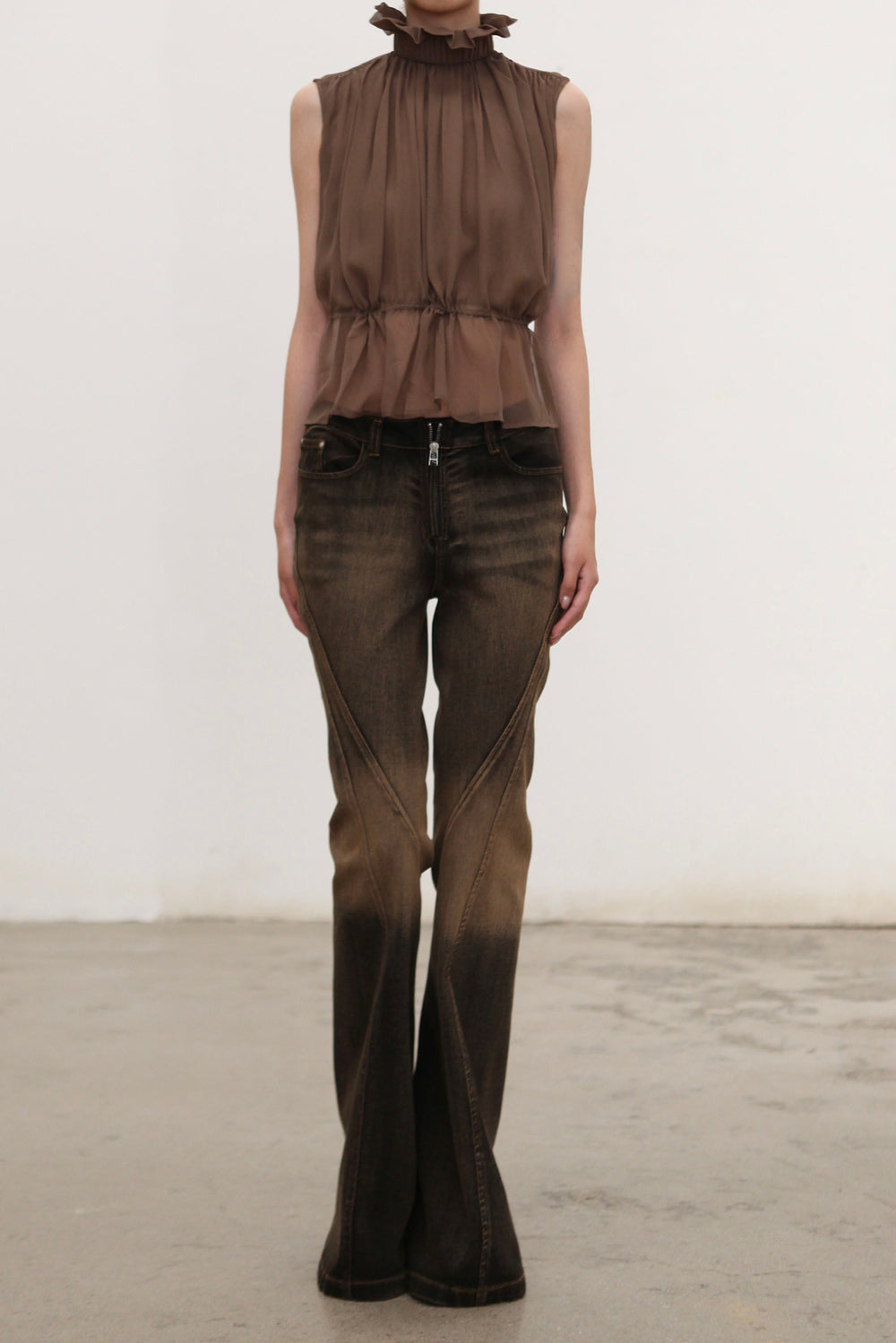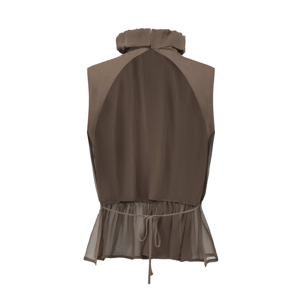 OUDE WAAG High-Neck Shirred Halter Vest OW-OW-25PF-TP03-HZ (BR430 Gray Brown) (OW-25SS-TP02 OW-25PF-TP03)