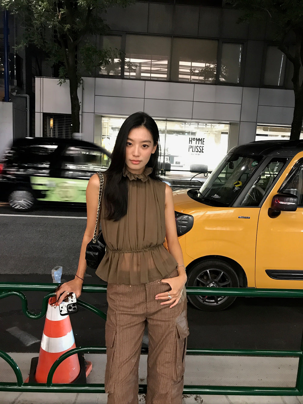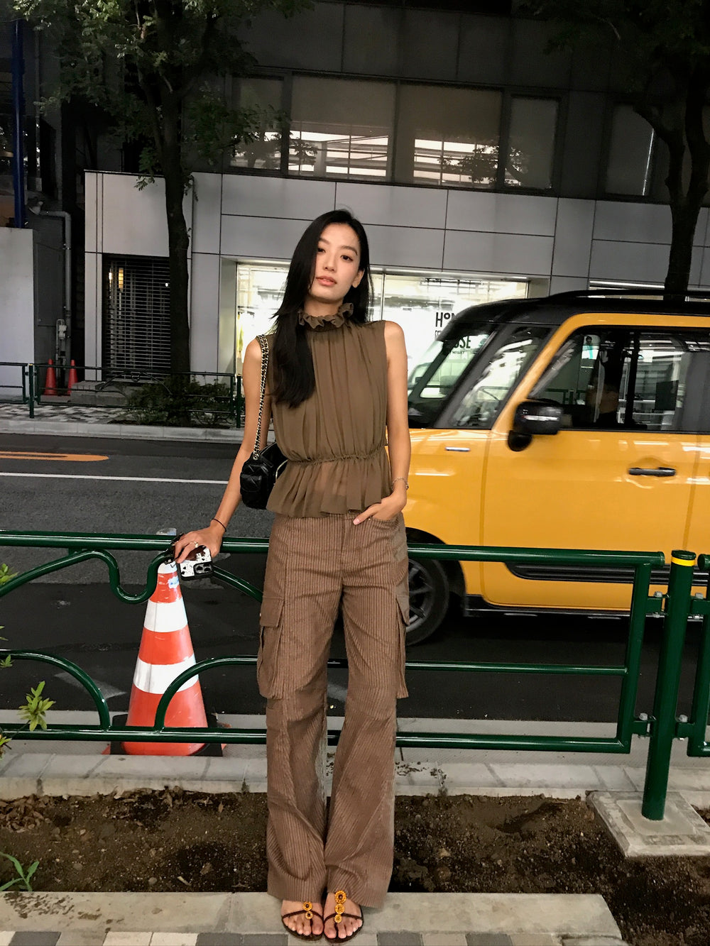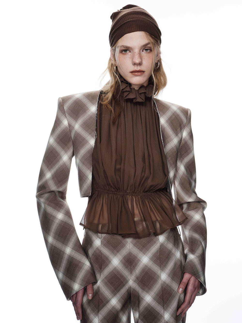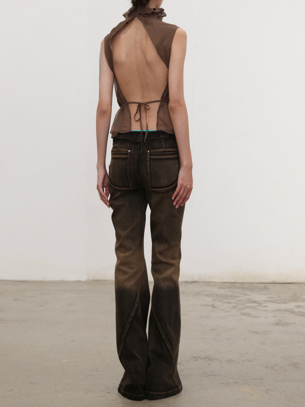 OUDE WAAG High-Neck Shirred Halter Vest OW-OW-25PF-TP03-HZ (BR430 Gray Brown) (OW-25SS-TP02 OW-25PF-TP03)